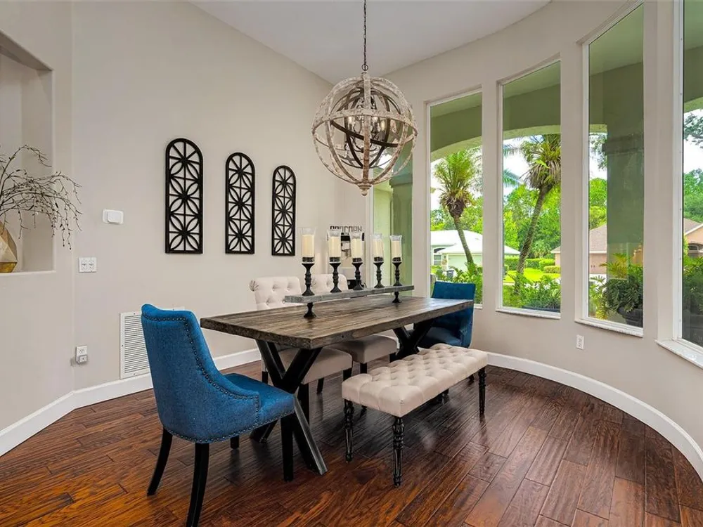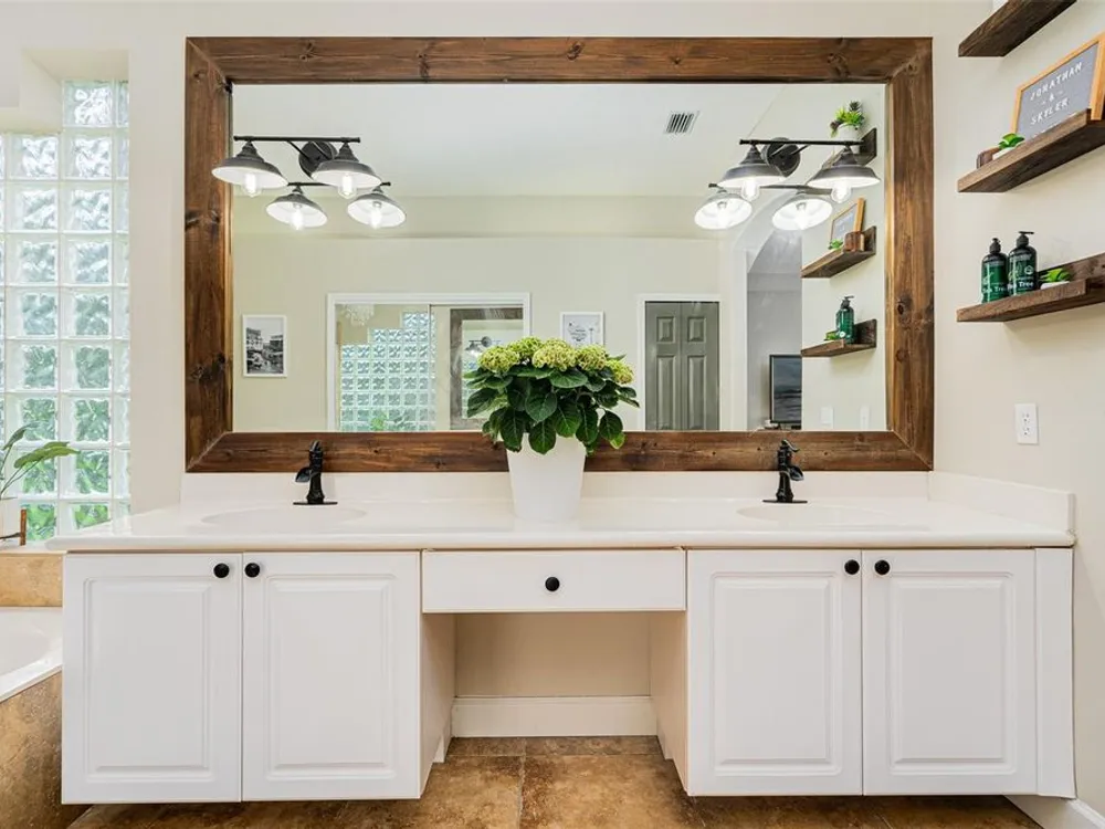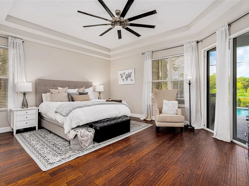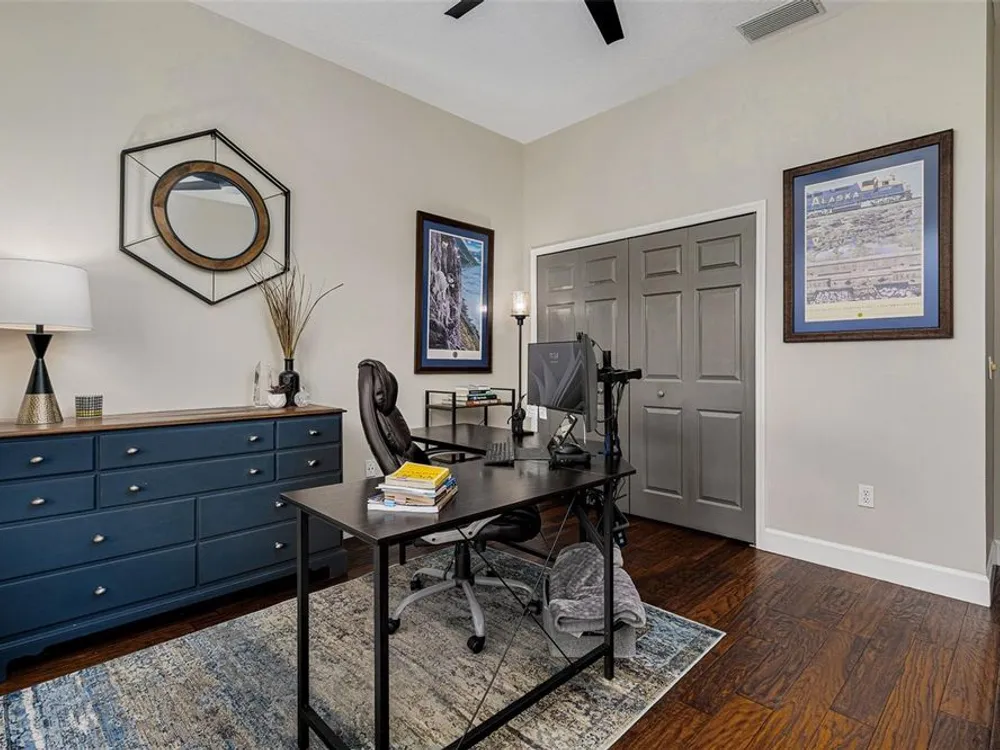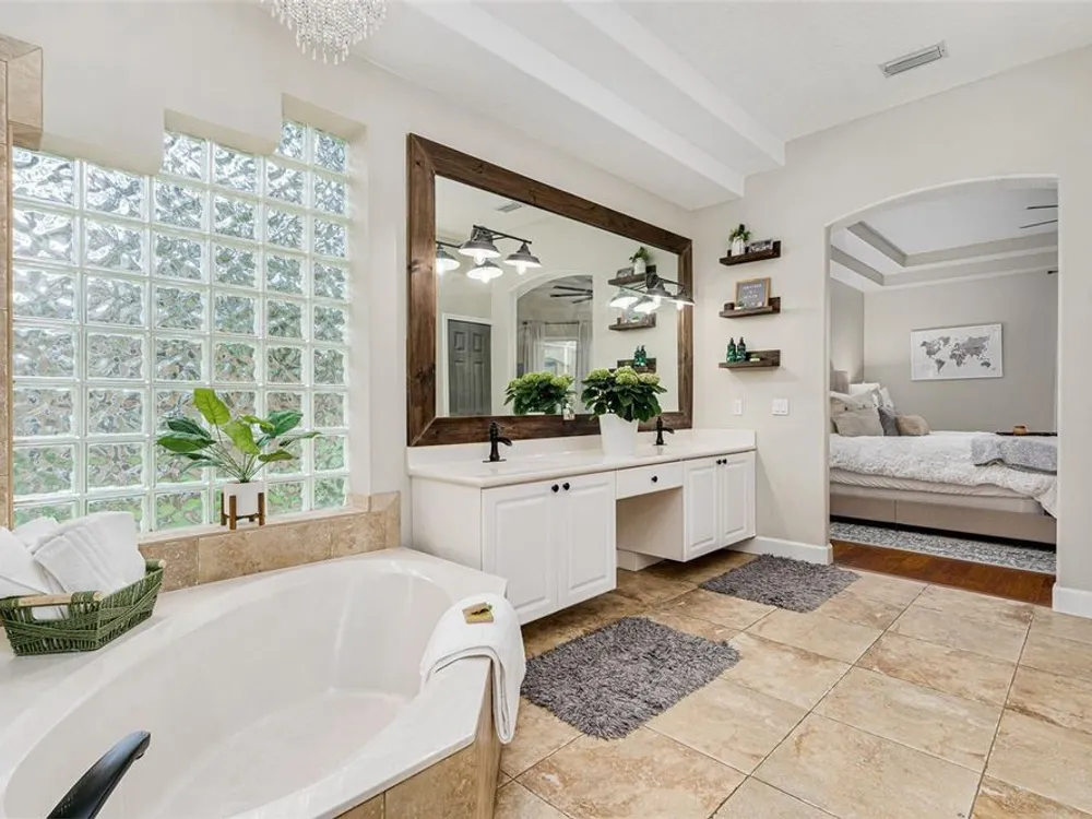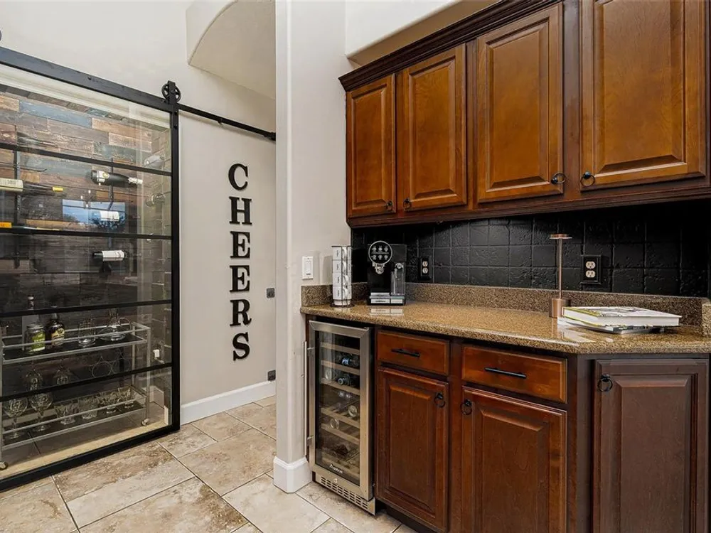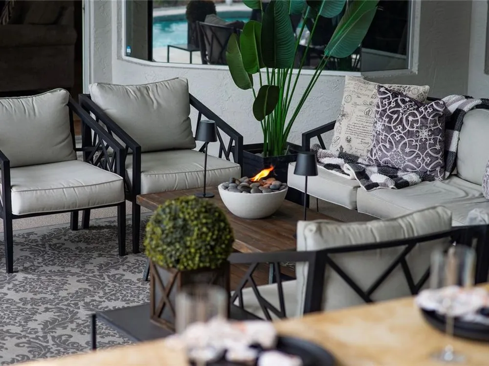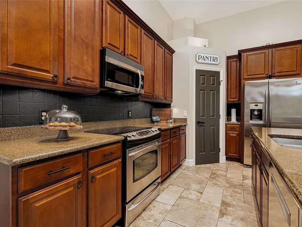 Welcome to 16 Circle Creek Way, a stunning 4-bedroom, 3-bath residence in Ormond Beach’s sought-after Breakaway Trails community. Crafted by ICI Homes, renowned for craftsmanship, this property blends timeless elegance with modern comforts in a setting surrounded by natural beauty. Overlooking a sparkling pond with a fountain and framed by oak and magnolia trees, the home invites a lifestyle where every detail is thoughtfully considered. As you arrive, you’re greeted by manicured landscaping and two front-entry water features that set a tranquil tone. The freshly painted exterior and modern lighting elevate curb appeal, while a new 2020 roof adds peace of mind. Through the elegant glass double doors, the journey begins. Inside, oversized windows draw your gaze across the formal sitting area to the pool and pond beyond. A dramatic wood globe chandelier anchors the entryway, while wainscoting, travertine tile, and walnut hardwood floors hint at thoughtful upgrades. From the formal areas, the heart of the home unfolds. The living room centers on a striking custom stone fireplace wall with oversized tile, a wood mantel, and a new electric insert. Expansive sliders open to the patio, flooding the room with light and framing views of the fountain-lit pond. The adjacent gourmet kitchen blends style and function: a large island, granite countertops, and wood cabinetry with a bold black backsplash create a timeless aesthetic. Under- and above-cabinet lighting add warmth, while a Bosch dishwasher (2023), dual-zone wine fridge (2022), and a custom wine closet with glass barn door make hosting effortless. A coffee bar completes the space—perfect for mornings at home. This four-bedroom, three-bath layout is thoughtfully split to enhance privacy and functionality. On one side, the primary suite pairs with a secondary bedroom—ideal as a nursery, guest room, or private office near the owner’s retreat. The primary suite opens to the pool with water views through sliding glass doors, creating a serene escape. A sunken tub, travertine walk-in shower, glass-block feature, and double vanity create a spa-like bath. On the opposite wing, two additional bedrooms add flexibility for guests, offices, or creative space. One bedroom features a clever “cloffice”—a built-in desk and tile-accent workspace—ideal for today’s lifestyle. The other is styled as an office, with a bold dark-washed accent wall and illuminated plant display. Baths and utility spaces show the same attention to detail. The guest bath offers a German schmear brick accent wall and modern fixtures; the laundry is fresh and functional with a new GE washer and dryer. The outdoor living space feels like a private resort. The pool, resurfaced and retiled in 2021, gleams, complemented by a Hayward heat/cool pump (2023) and spa heater (2021) for year-round comfort. A new color-changing pool light adds evening magic, reflecting off the pond and fountain beyond. Host gatherings with ease at the outdoor bar and built-in dining area, or enjoy casual evenings grilling on the JennAir BBQ. Oversized fans keep the patio comfortable, while a wood privacy wall and modern exterior lighting create both seclusion and ambiance. With oak and magnolia trees framing unobstructed water views, every sunset feels like a painting. Breakaway Trails itself offers an unparalleled lifestyle, complete with a 24-hour guarded gate, community pool, tennis and pickleball courts, playgrounds, and scenic walking and biking trails.
