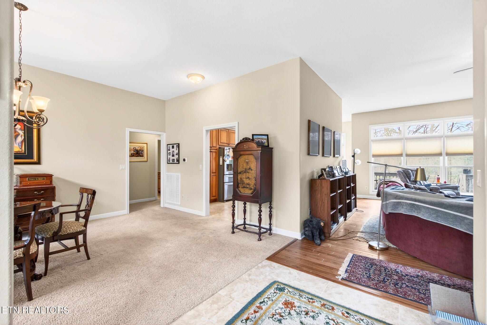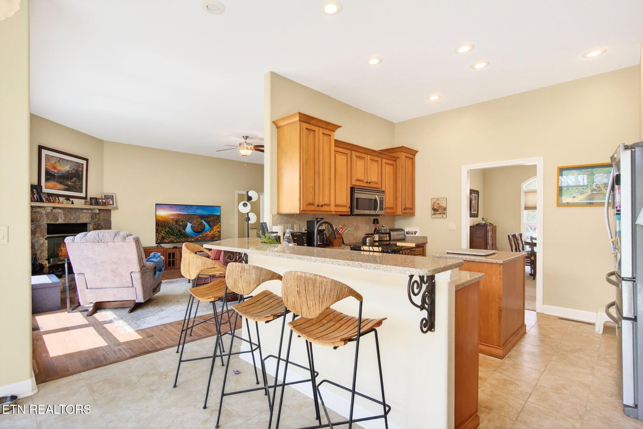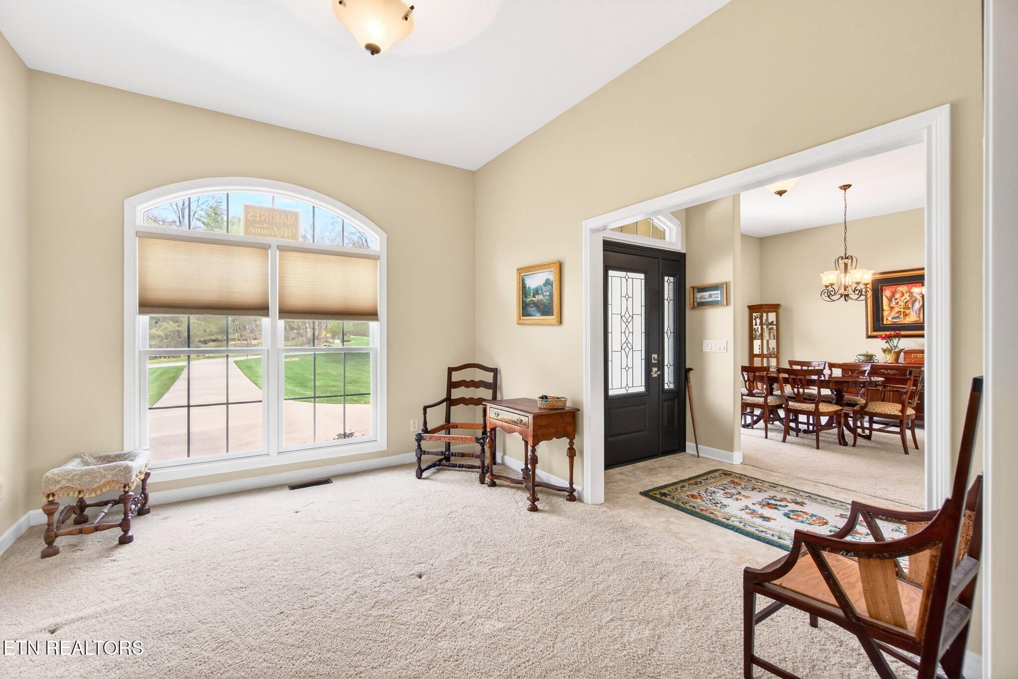Welcome to this beautifully maintained golf-course home perfectly positioned on the 1st hole of the Dorchester Golf Course in the highly desirable Fairfield Glade community. Offering 3 bedrooms and 2 full baths, this property combines comfort, style, and an unbeatable location for golf enthusiasts and nature lovers alike. Step inside to an inviting open floor plan where the kitchen flows seamlessly into the great room, creating an ideal space for entertaining or relaxing. Large windows bring in natural light and frame peaceful views of the fairway. The split-bedroom design ensures privacy for guests, while the primary suite serves as a true retreat with elegant trey ceilings, a spacious walk-in tile shower, and generous closet space. Enjoy your morning coffee or unwind in the evening from the bright sunroom, offering year-round enjoyment and stunning views overlooking the golf course. The home sits on an oversized golf-course lot, giving you extra outdoor space and a sense of openness rarely found in similar properties. Additional features include underground utilities, natural gas available at the street, and the convenience of being located in one of Fairfield Glade's most picturesque neighborhoods. Whether you're seeking a full-time residence or a serene getaway, this home delivers the perfect blend of comfort, beauty, and golf-course living.