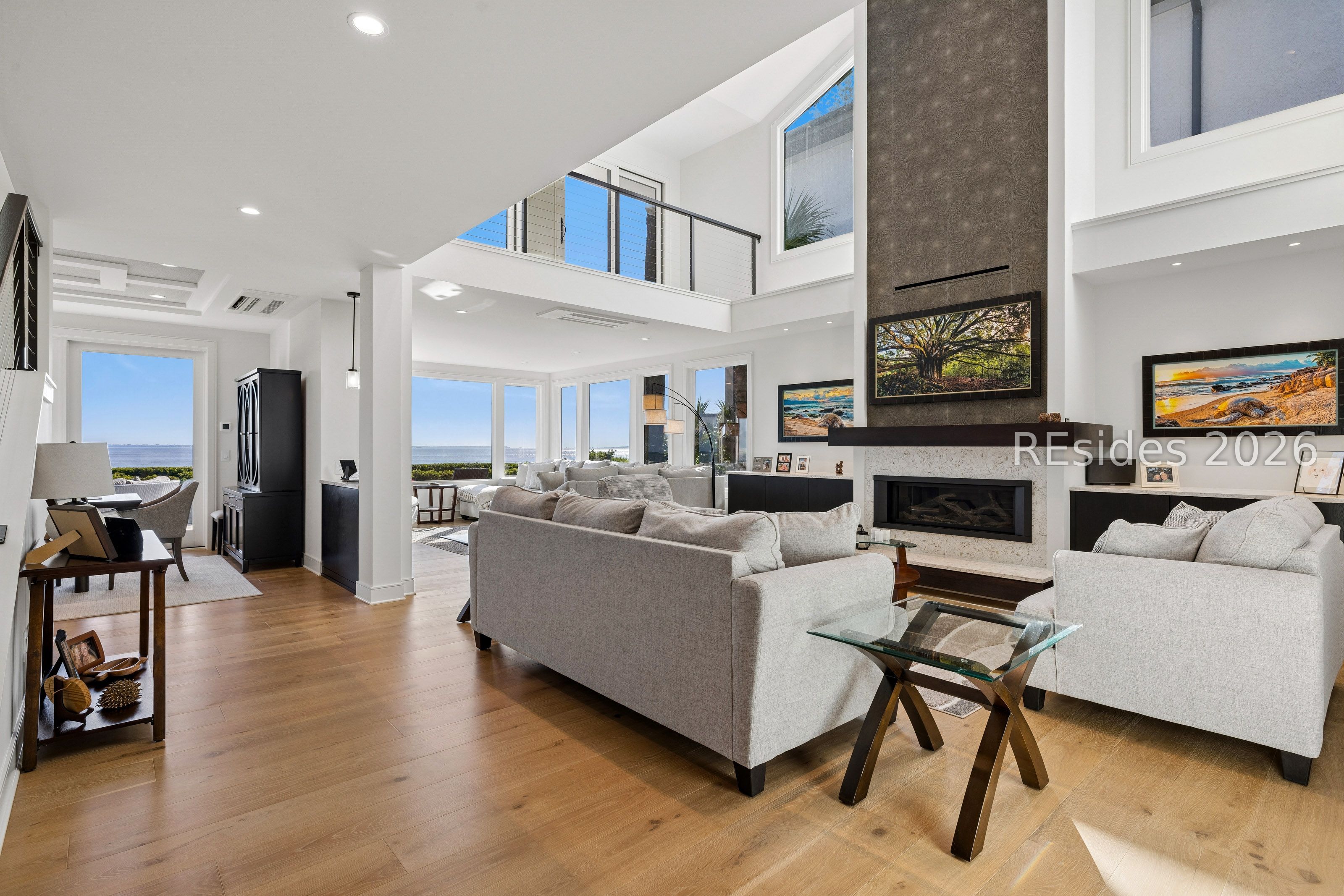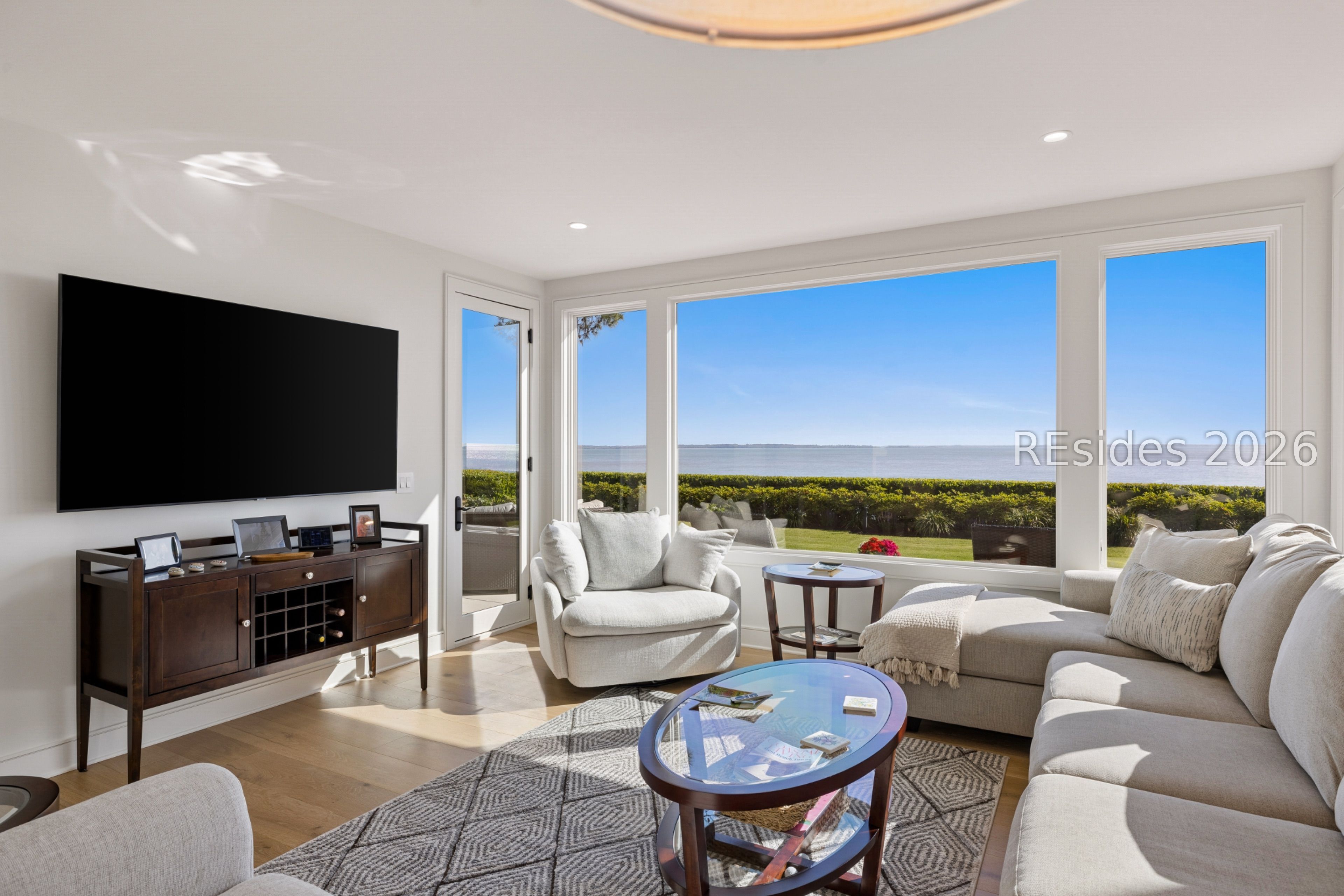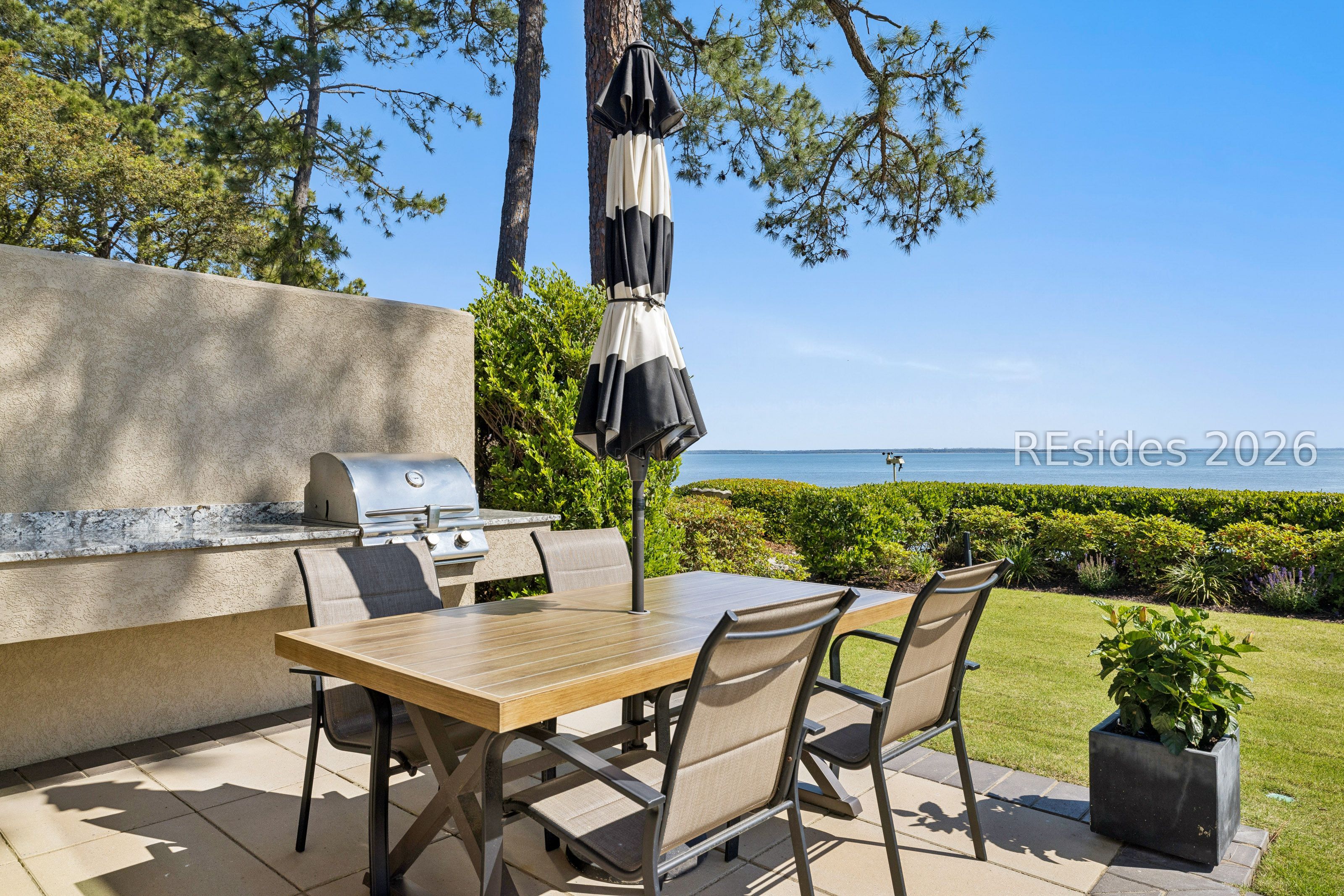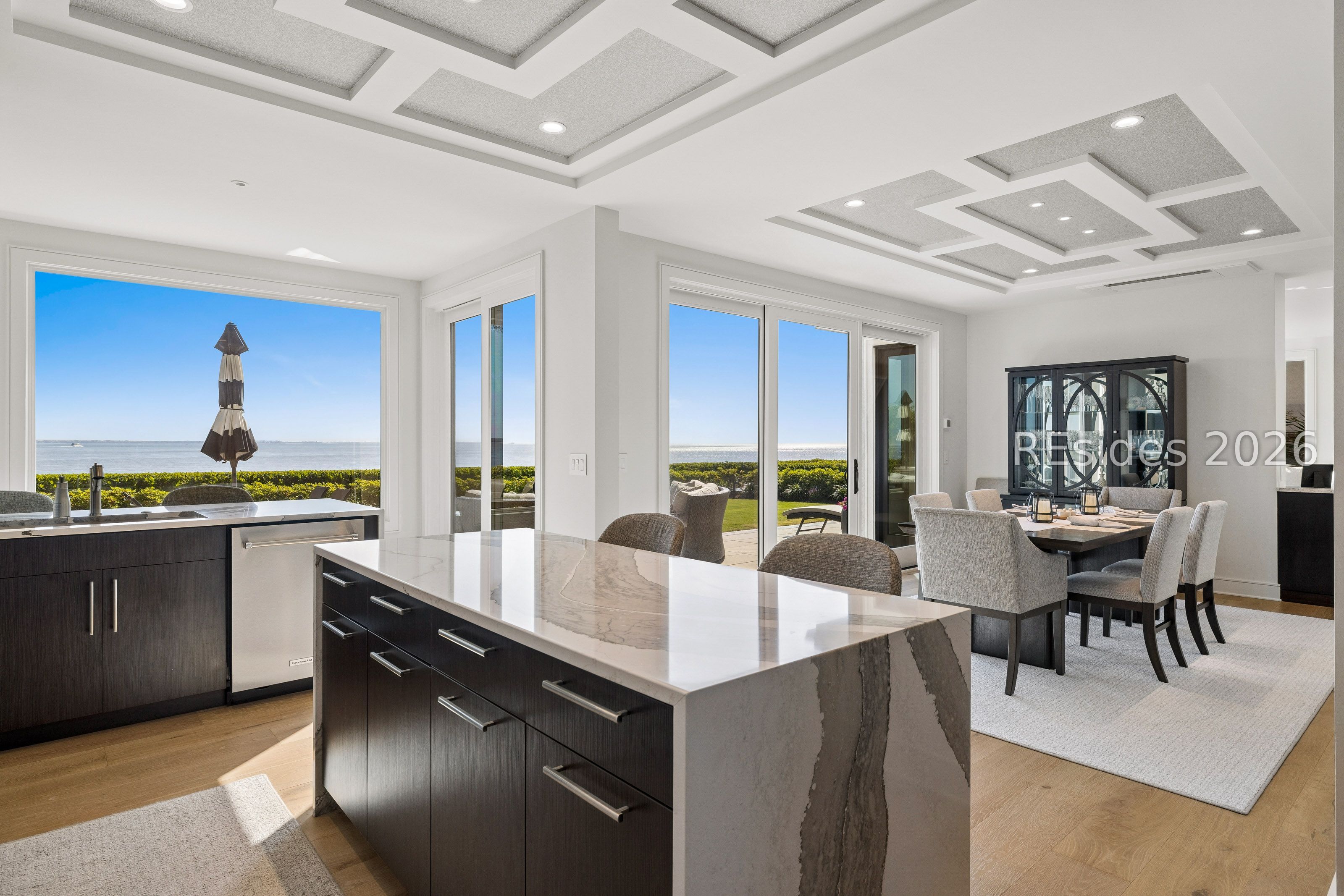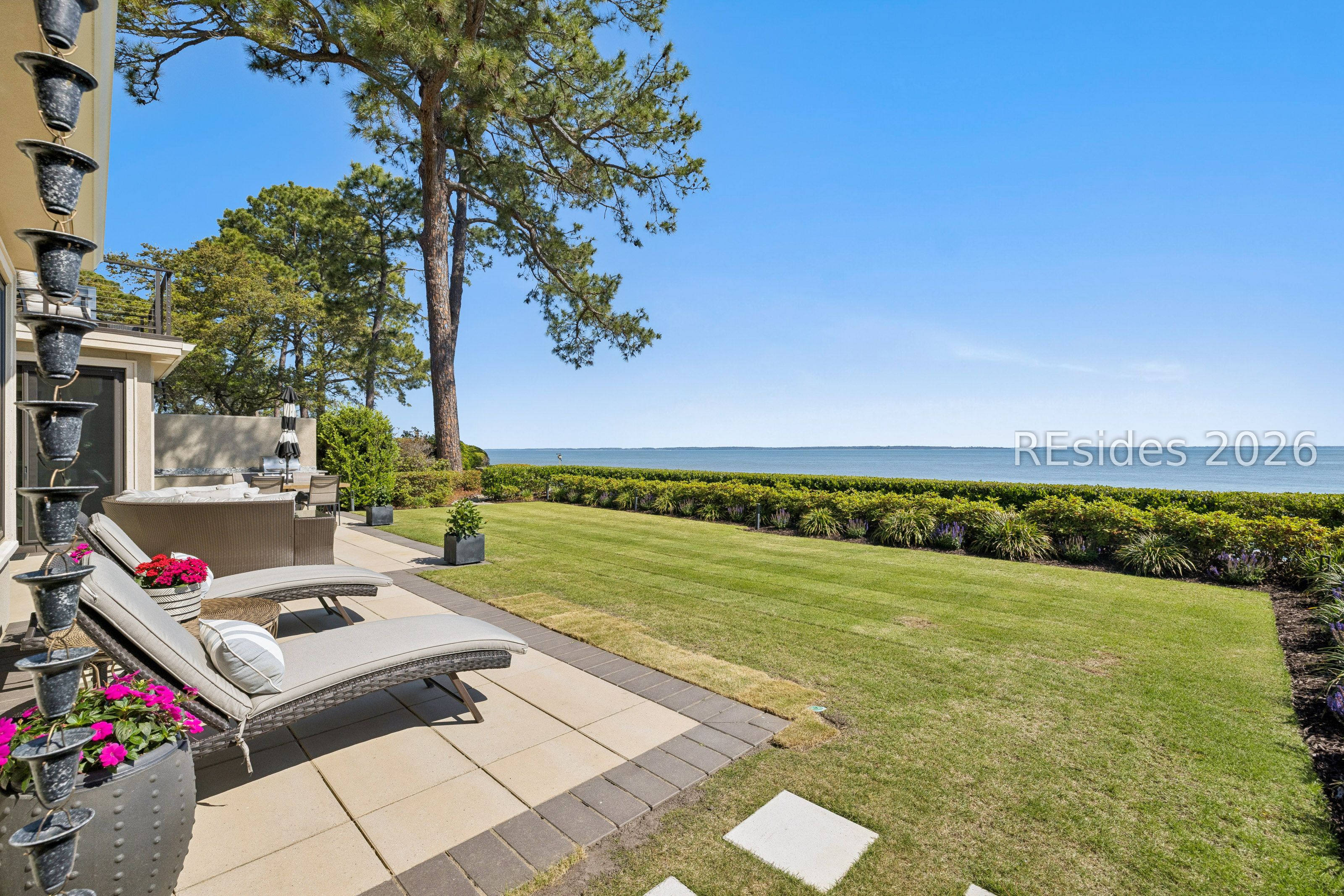 Experience an extraordinary, sweeping panorama of water-one of the most breathtaking views on Hilton Head Island. With over 180 degrees stretching from the Port Royal Sound to the Atlantic Ocean, this wide-angle coastal setting delivers stunning sunrises, light afternoon breezes, and ever-changing tides. Dolphins play just offshore, osprey dive with precision, and shrimp boats head out for their daily catch-an authentic showcase of Lowcountry coastal life.This completely renovated, classic contemporary home shows like new and offers just over 3,400 square feet with 3 bedrooms and 3.5 baths. Clean lines and an open layout maximize the views from nearly every room, while custom cabinetry, quartz countertops, and a sleek linear gas fireplace elevate the interiors.Outdoor living is equally inviting, with a spacious patio featuring a gas fire bowl, built-in grill, and multiple areas to relax. Upstairs, two decks extend the experience-one off the primary bedroom for morning coffee, and a larger deck for evening "sundowners" overlooking the water.A two-car garage adds convenience, while the Dolphin Head location places you just a short stroll from Pine Island. Just steps away, the private Dolphin Point Club pool overlooking the sound-reserved exclusively for residents of the street-offers a rare blend of convenience, privacy, and community.Wide water, endless horizon, coastal breezes-the epitome of Lowcountry living. Owner is SCREA.