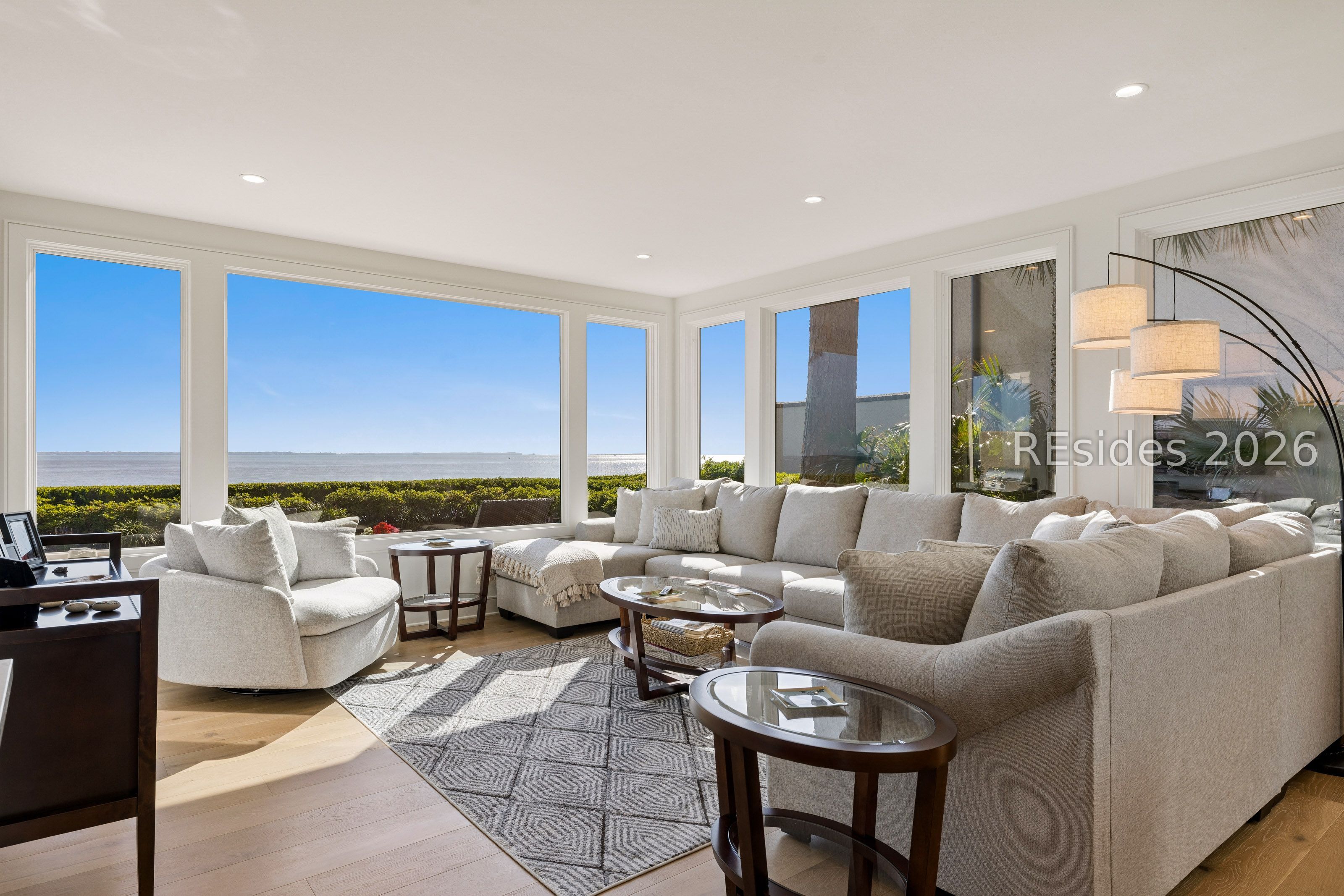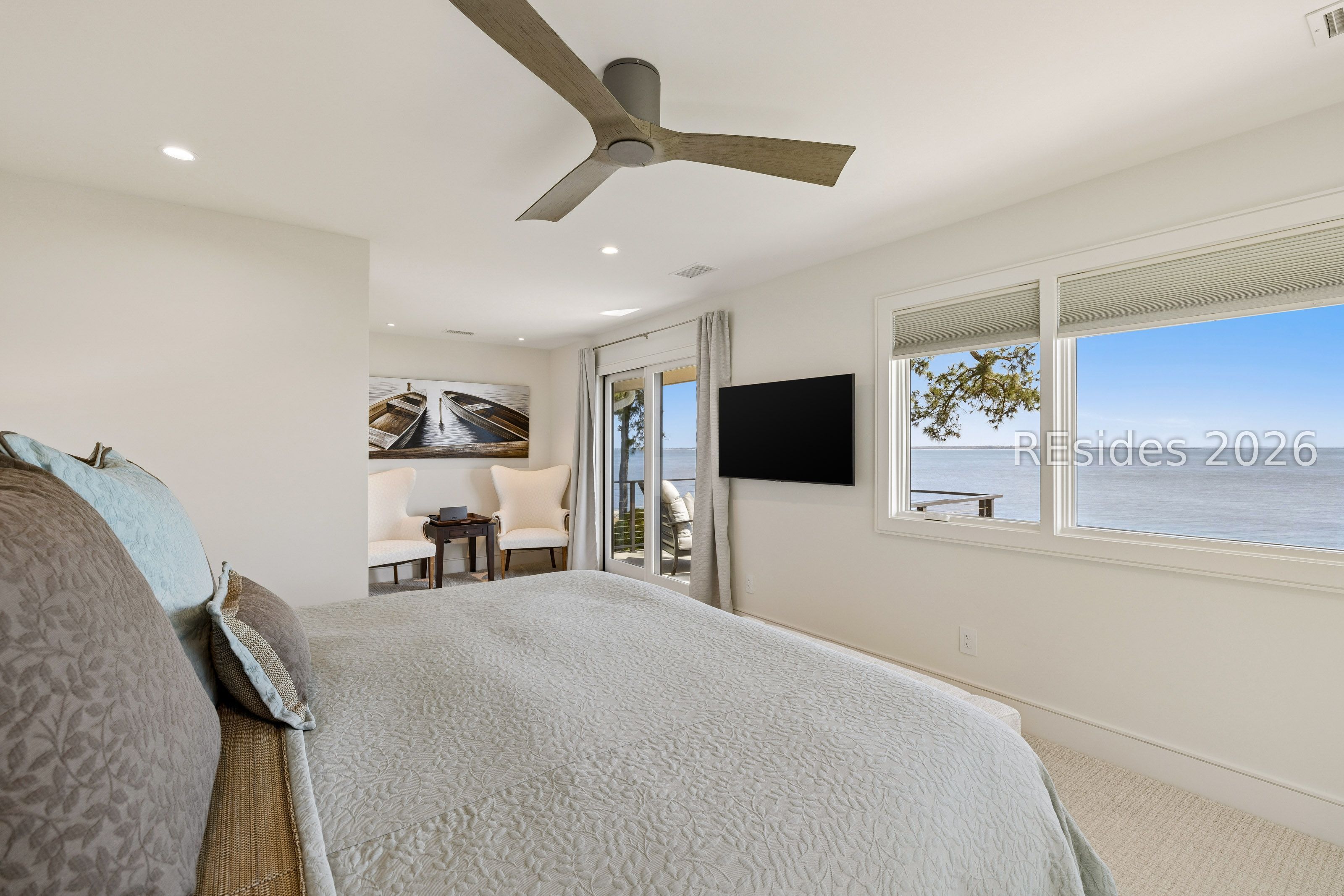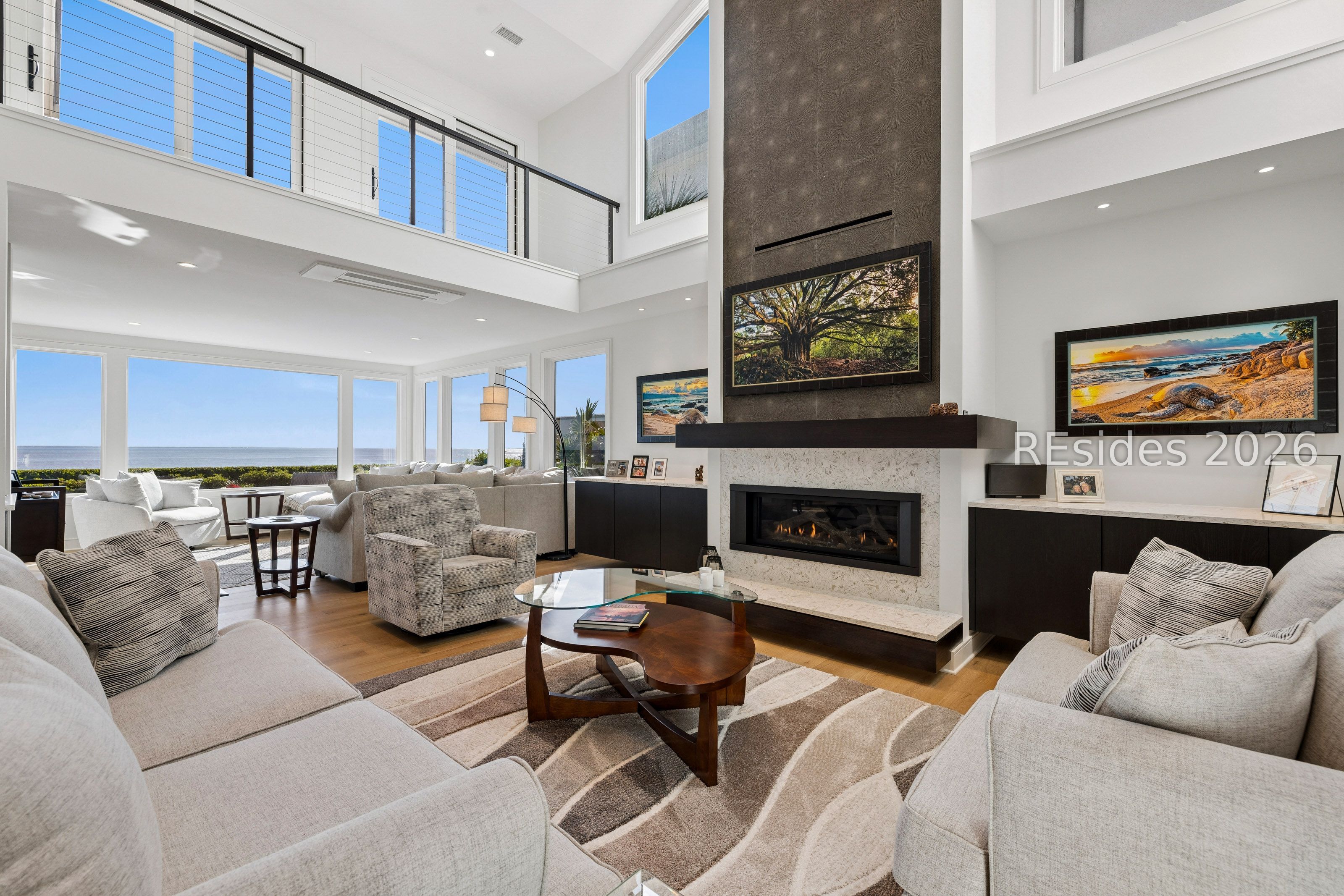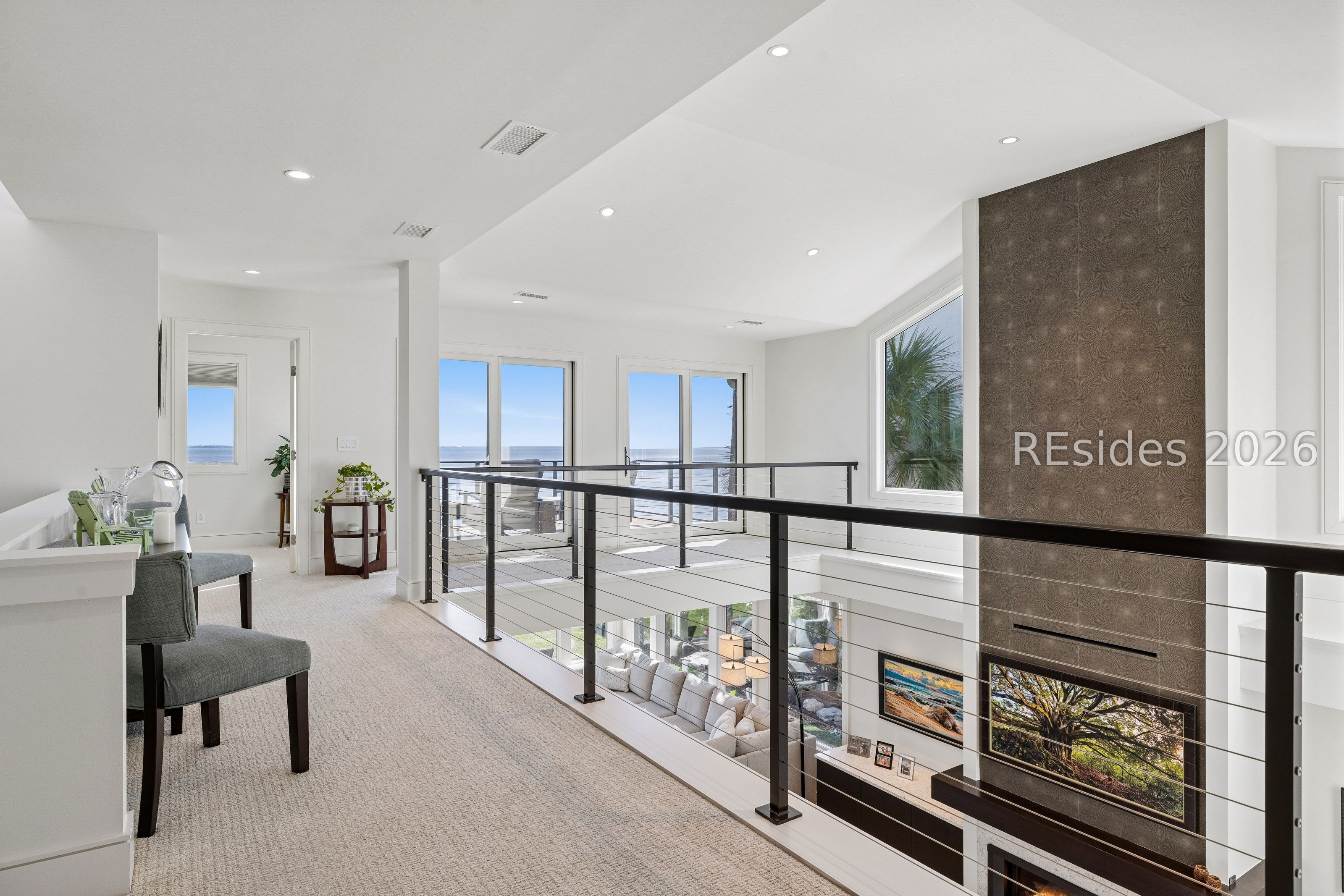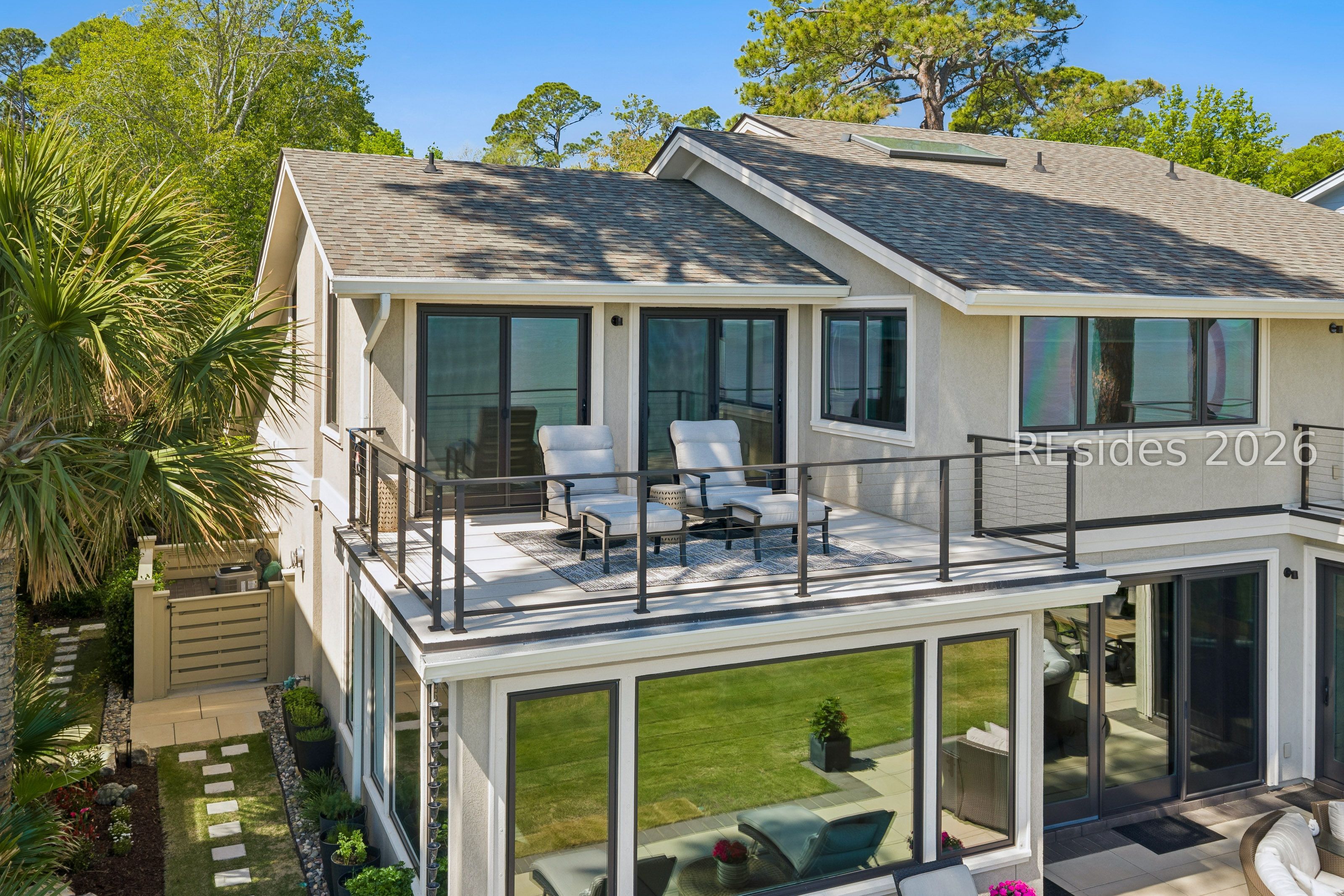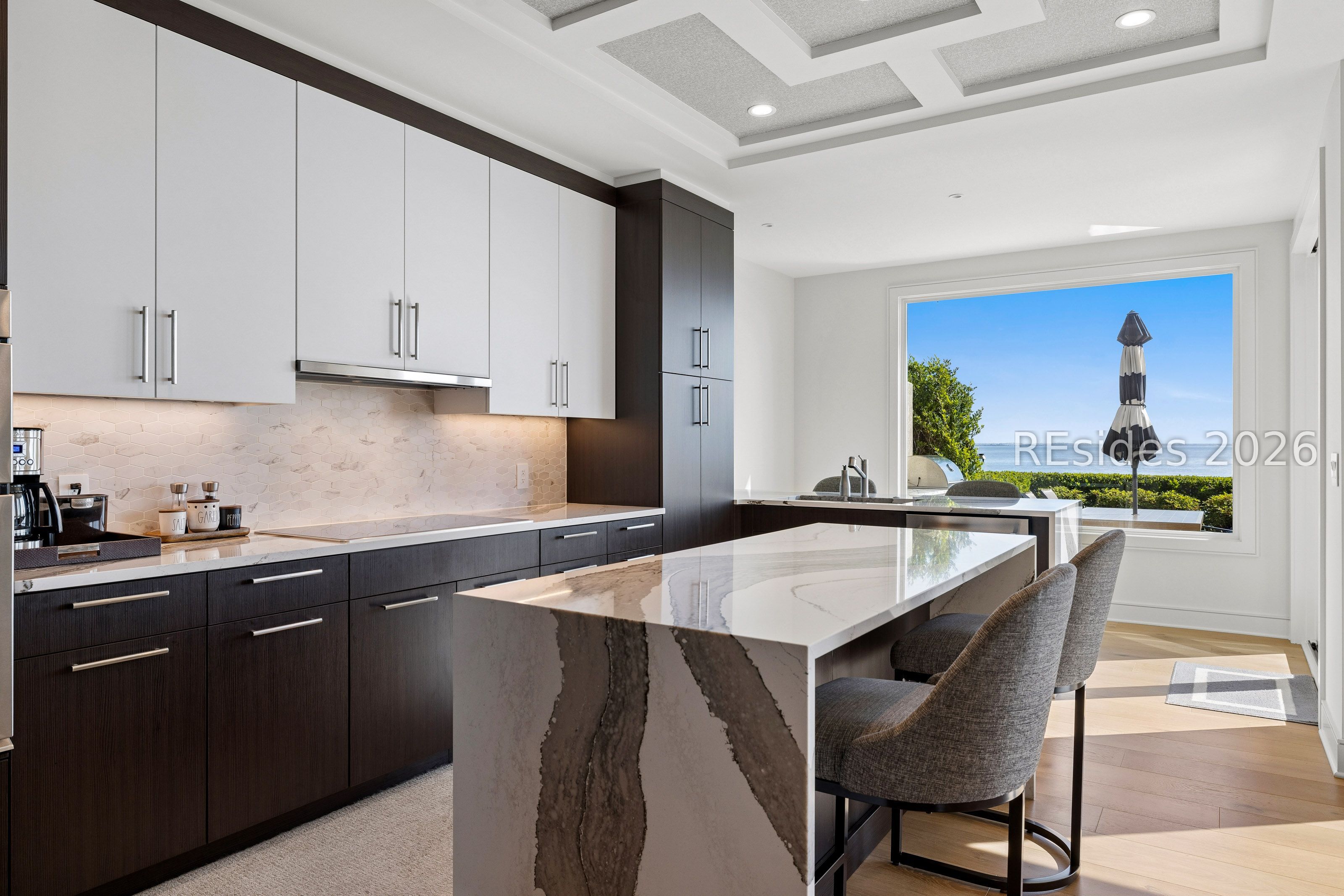 Experience an extraordinary, sweeping panorama of water-one of the most breathtaking views on Hilton Head Island. With over 180 degrees stretching from the Port Royal Sound to the Atlantic Ocean, this wide-angle coastal setting delivers stunning sunrises, light afternoon breezes, and ever-changing tides. Dolphins play just offshore, osprey dive with precision, and shrimp boats head out for their daily catch-an authentic showcase of Lowcountry coastal life.This completely renovated, classic contemporary home shows like new and offers just over 3,400 square feet with 3 bedrooms and 3.5 baths. Clean lines and an open layout maximize the views from nearly every room, while custom cabinetry, quartz countertops, and a sleek linear gas fireplace elevate the interiors.Outdoor living is equally inviting, with a spacious patio featuring a gas fire bowl, built-in grill, and multiple areas to relax. Upstairs, two decks extend the experience-one off the primary bedroom for morning coffee, and a larger deck for evening "sundowners" overlooking the water.A two-car garage adds convenience, while the Dolphin Head location places you just a short stroll from Pine Island. Just steps away, the private Dolphin Point Club pool overlooking the sound-reserved exclusively for residents of the street-offers a rare blend of convenience, privacy, and community.Wide water, endless horizon, coastal breezes-the epitome of Lowcountry living. Owner is SCREA.