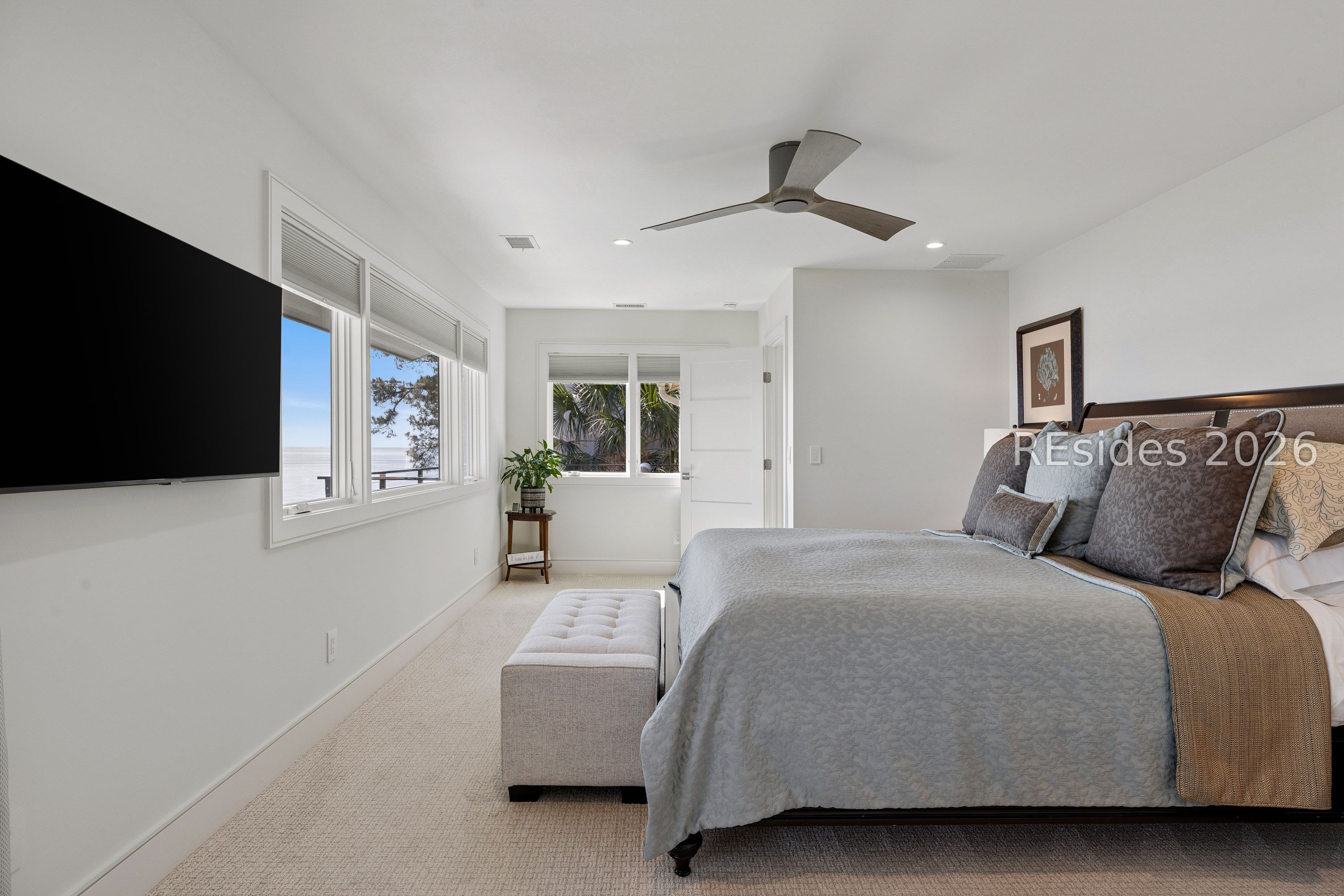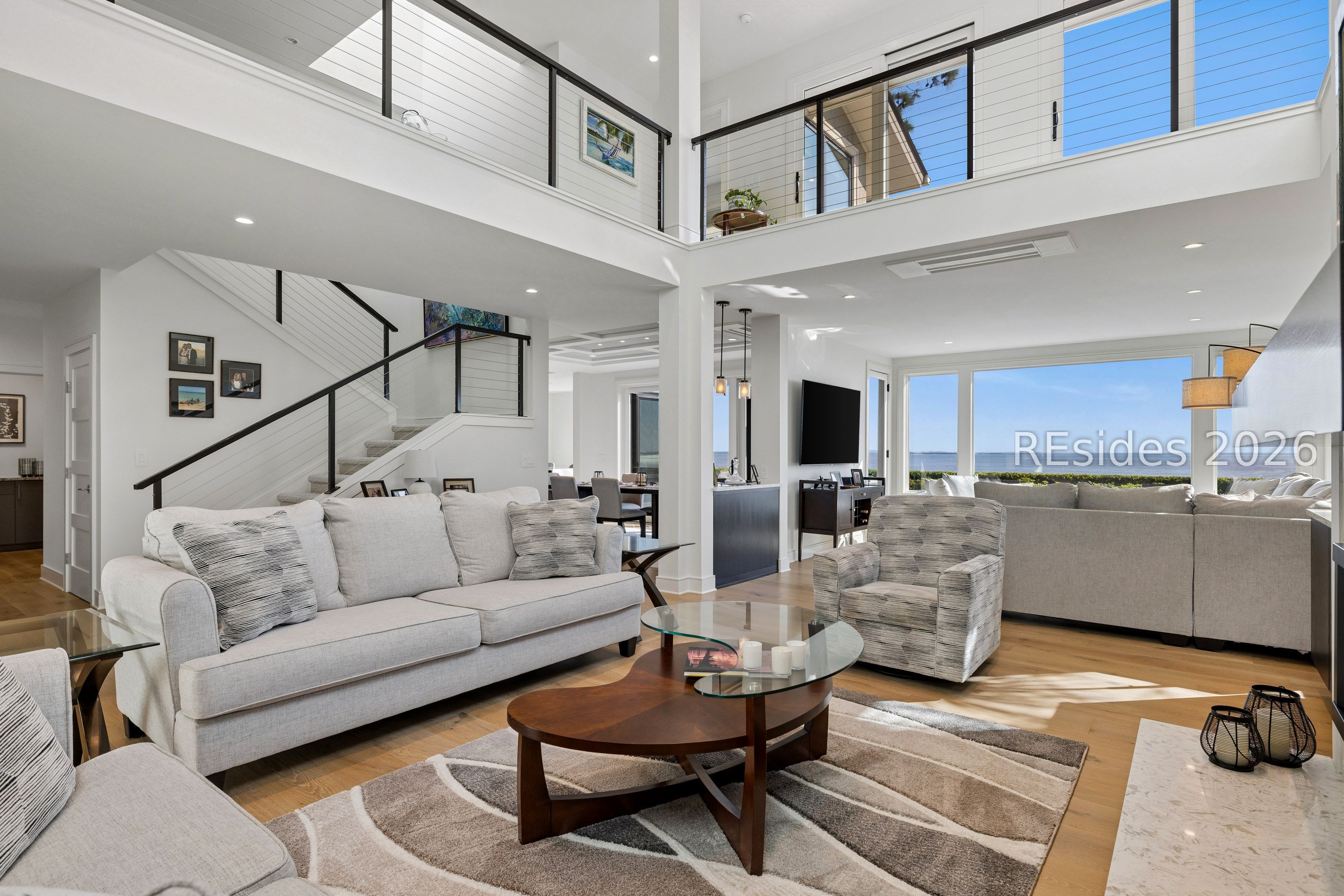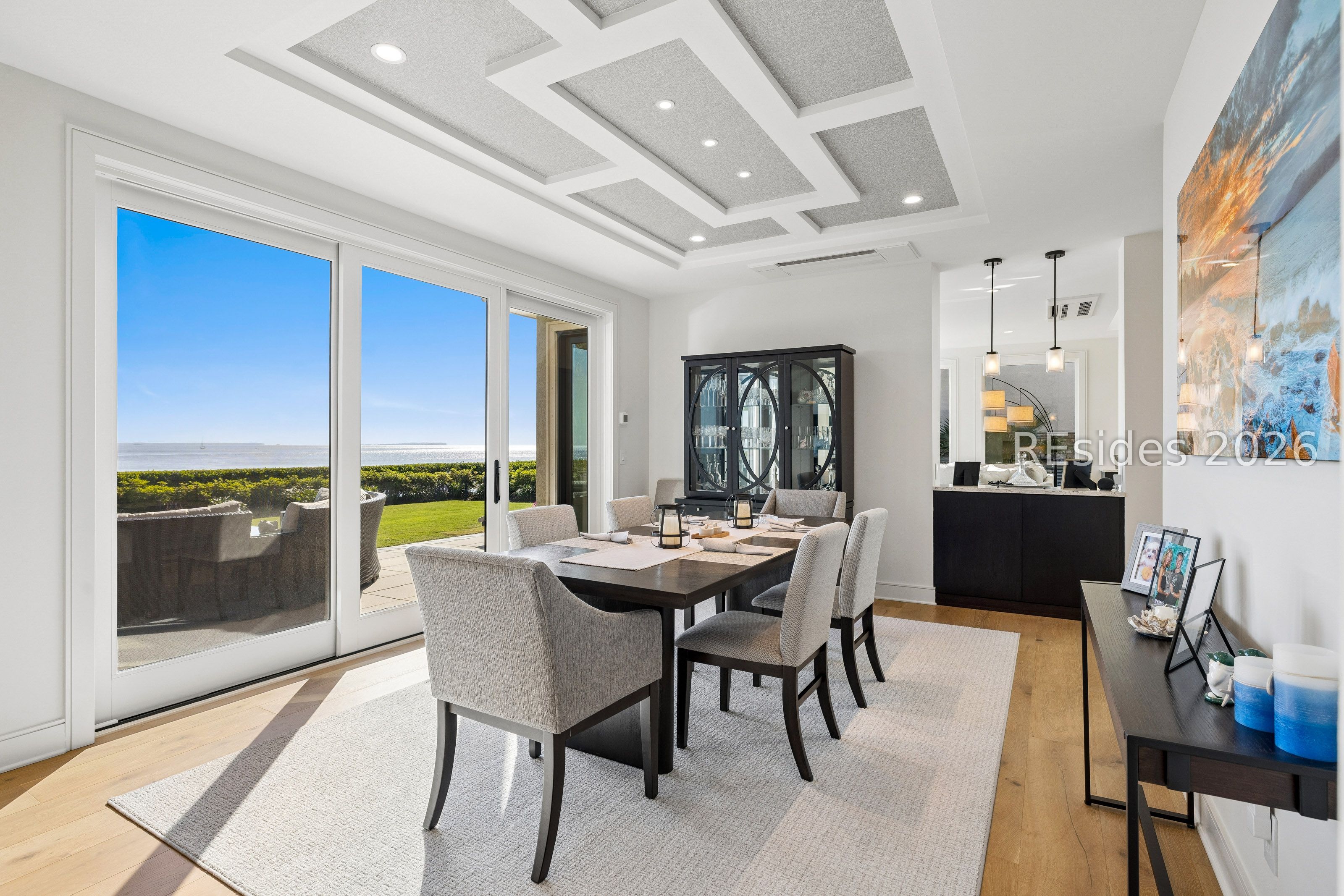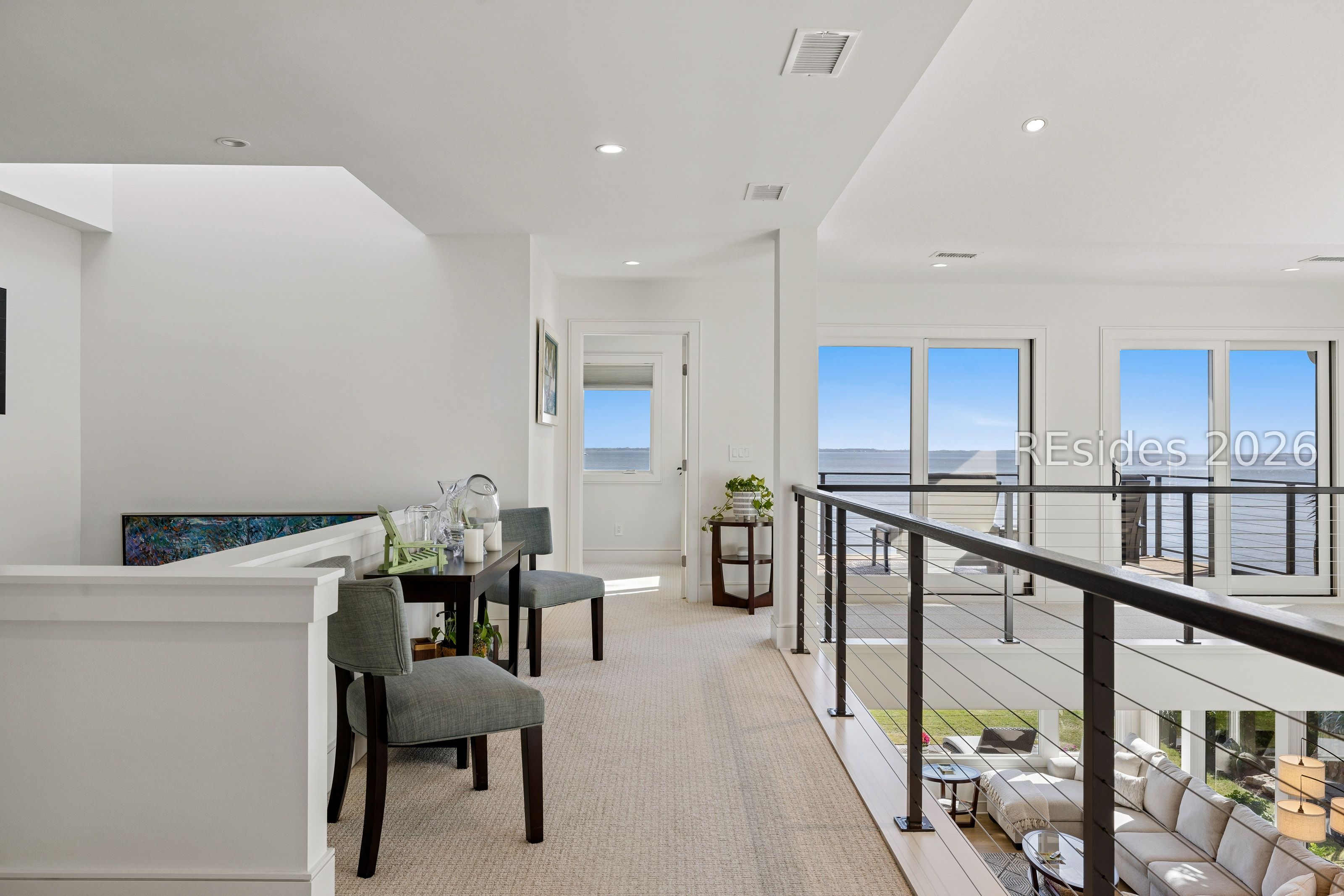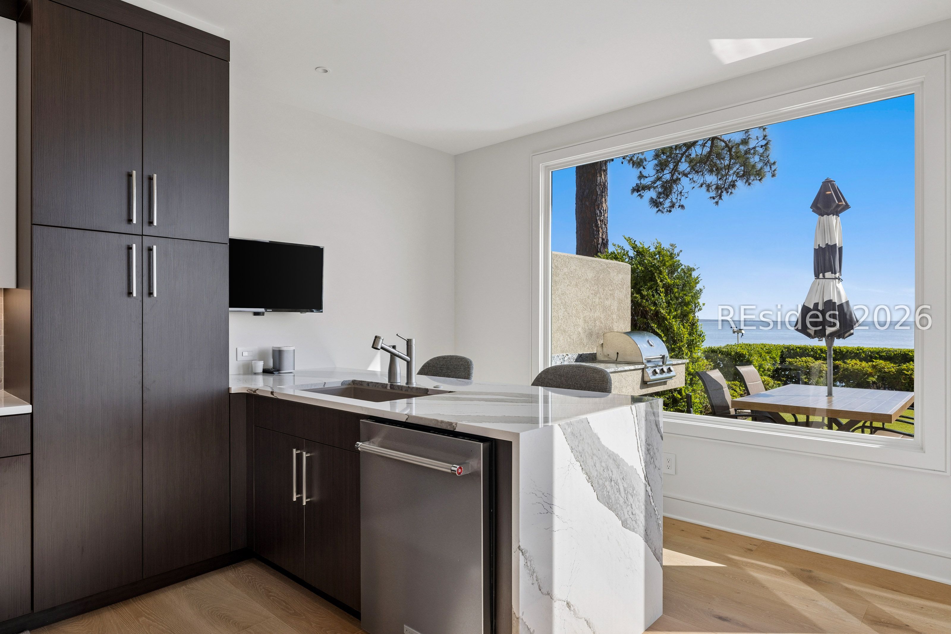 Experience an extraordinary, sweeping panorama of water-one of the most breathtaking views on Hilton Head Island. With over 180 degrees stretching from the Port Royal Sound to the Atlantic Ocean, this wide-angle coastal setting delivers stunning sunrises, light afternoon breezes, and ever-changing tides. Dolphins play just offshore, osprey dive with precision, and shrimp boats head out for their daily catch-an authentic showcase of Lowcountry coastal life.This completely renovated, classic contemporary home shows like new and offers just over 3,400 square feet with 3 bedrooms and 3.5 baths. Clean lines and an open layout maximize the views from nearly every room, while custom cabinetry, quartz countertops, and a sleek linear gas fireplace elevate the interiors.Outdoor living is equally inviting, with a spacious patio featuring a gas fire bowl, built-in grill, and multiple areas to relax. Upstairs, two decks extend the experience-one off the primary bedroom for morning coffee, and a larger deck for evening "sundowners" overlooking the water.A two-car garage adds convenience, while the Dolphin Head location places you just a short stroll from Pine Island. Just steps away, the private Dolphin Point Club pool overlooking the sound-reserved exclusively for residents of the street-offers a rare blend of convenience, privacy, and community.Wide water, endless horizon, coastal breezes-the epitome of Lowcountry living. Owner is SCREA.