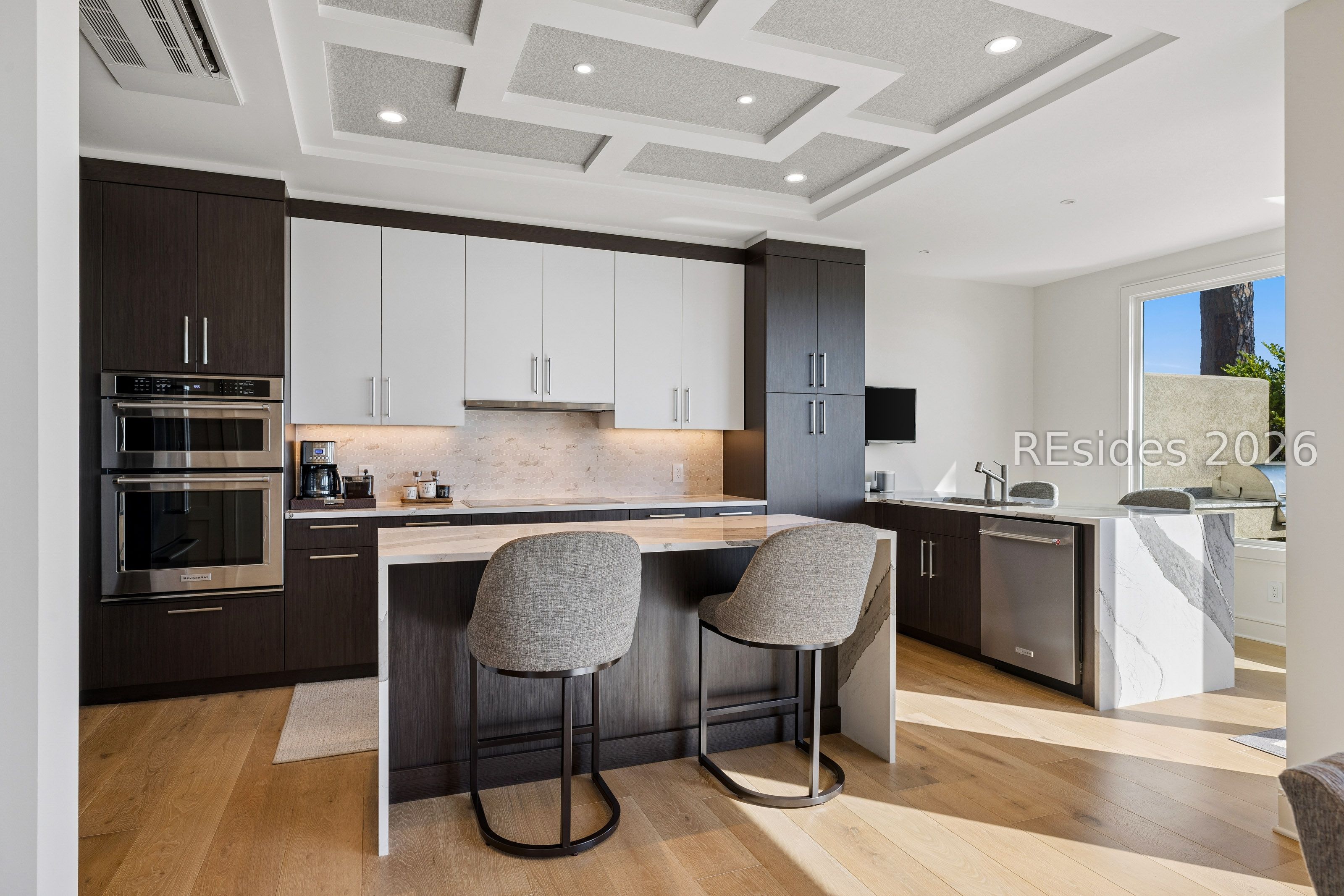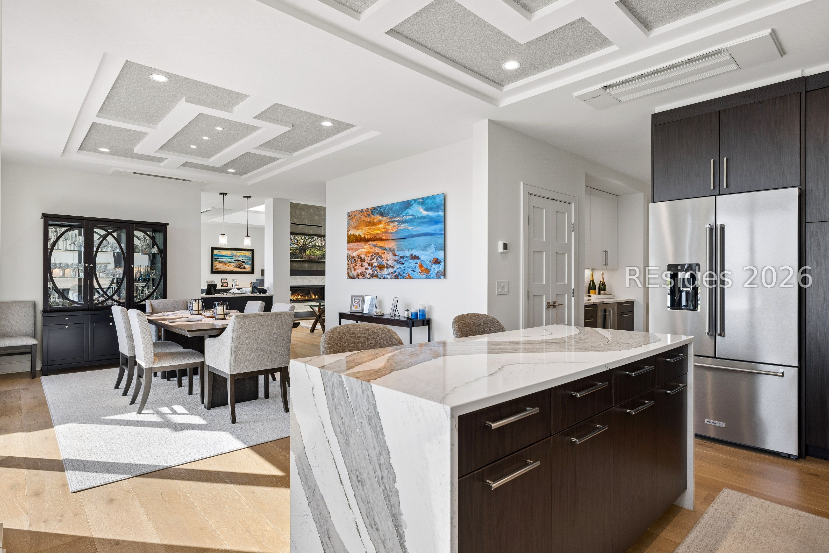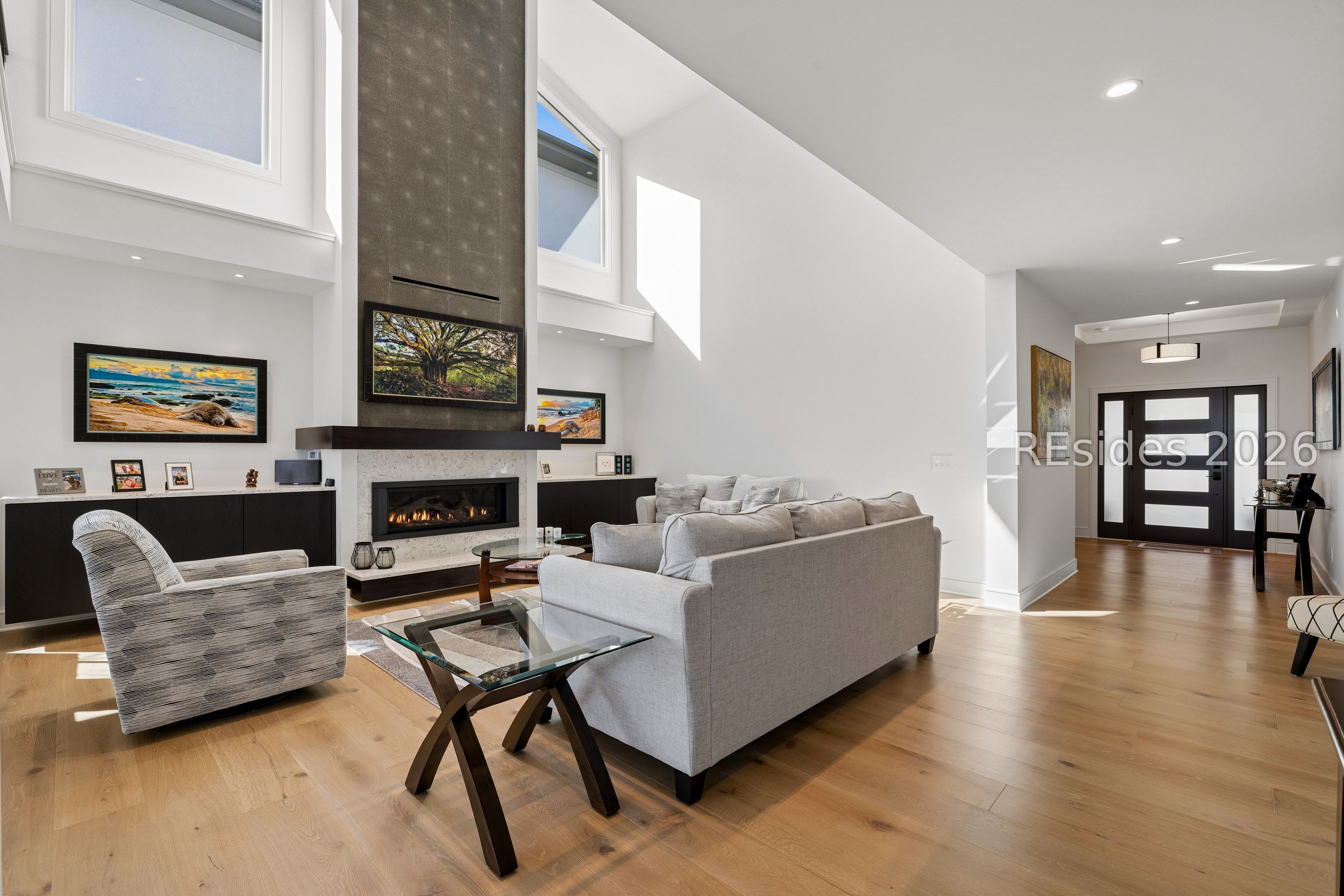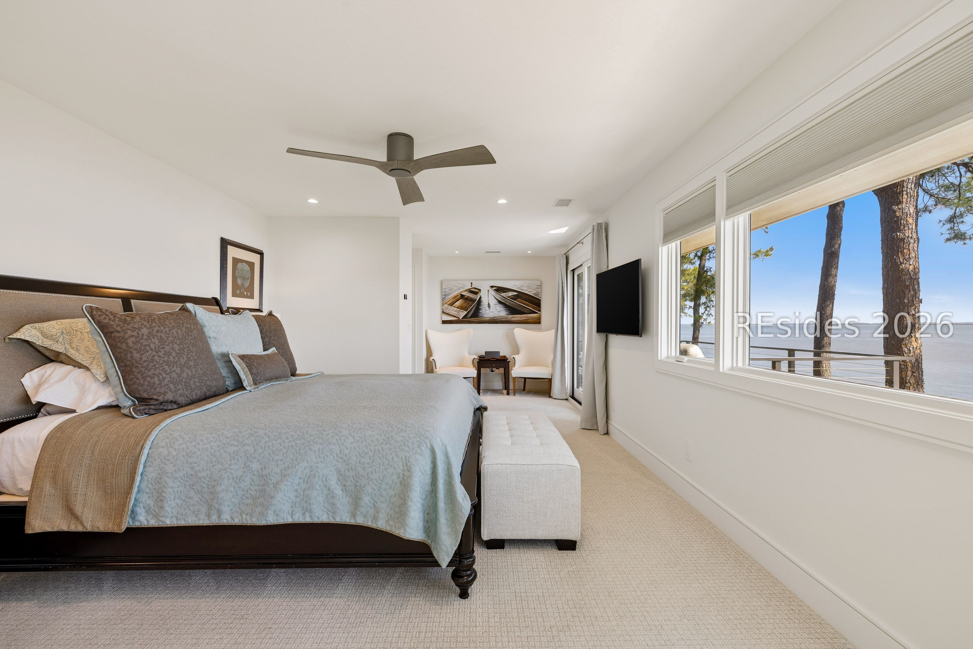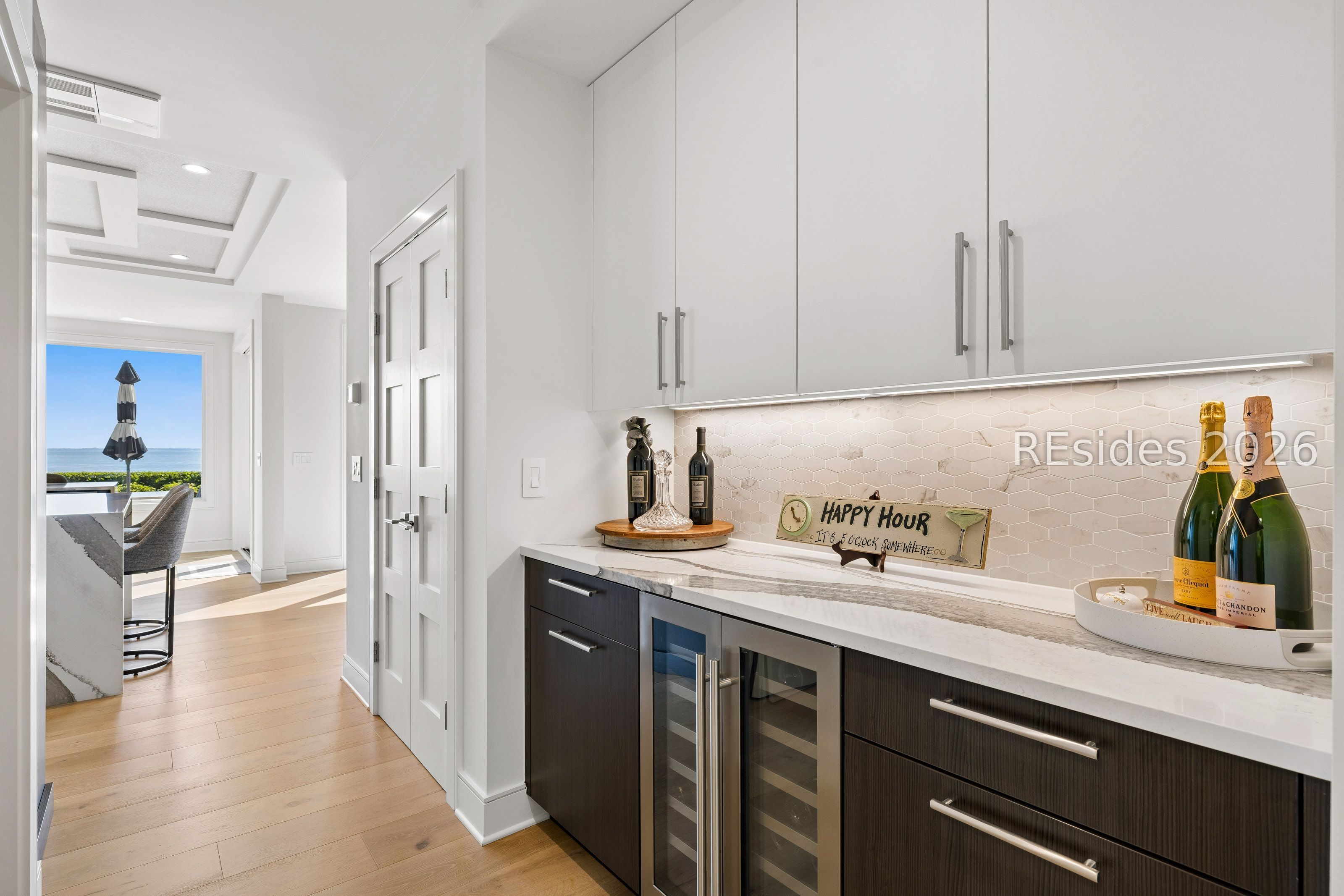 Experience an extraordinary, sweeping panorama of water-one of the most breathtaking views on Hilton Head Island. With over 180 degrees stretching from the Port Royal Sound to the Atlantic Ocean, this wide-angle coastal setting delivers stunning sunrises, light afternoon breezes, and ever-changing tides. Dolphins play just offshore, osprey dive with precision, and shrimp boats head out for their daily catch-an authentic showcase of Lowcountry coastal life.This completely renovated, classic contemporary home shows like new and offers just over 3,400 square feet with 3 bedrooms and 3.5 baths. Clean lines and an open layout maximize the views from nearly every room, while custom cabinetry, quartz countertops, and a sleek linear gas fireplace elevate the interiors.Outdoor living is equally inviting, with a spacious patio featuring a gas fire bowl, built-in grill, and multiple areas to relax. Upstairs, two decks extend the experience-one off the primary bedroom for morning coffee, and a larger deck for evening "sundowners" overlooking the water.A two-car garage adds convenience, while the Dolphin Head location places you just a short stroll from Pine Island. Just steps away, the private Dolphin Point Club pool overlooking the sound-reserved exclusively for residents of the street-offers a rare blend of convenience, privacy, and community.Wide water, endless horizon, coastal breezes-the epitome of Lowcountry living. Owner is SCREA.