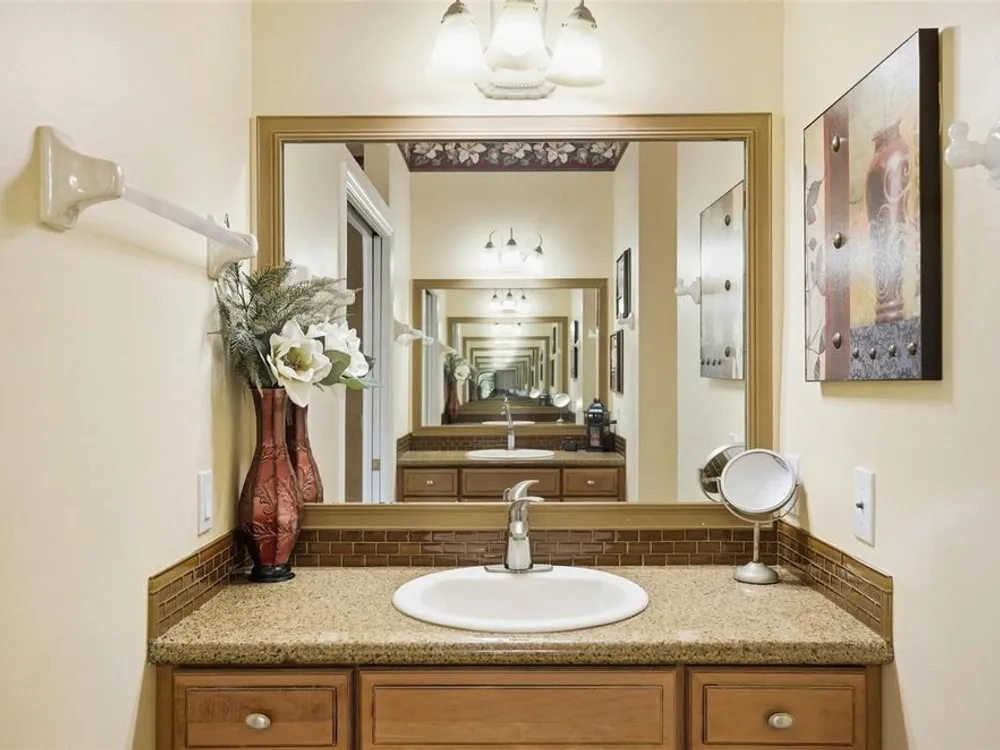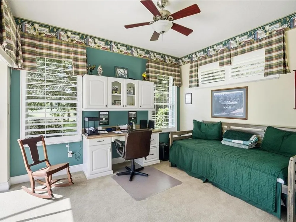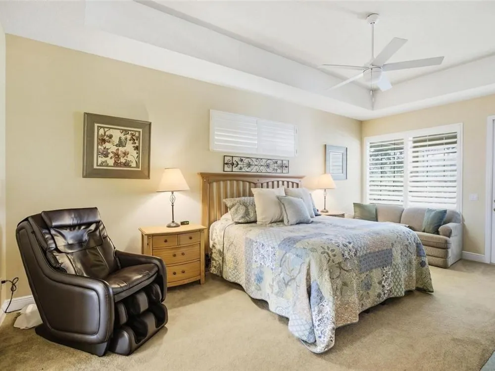 - Built-in Features, Ceiling Fan(s), Crown Molding, Eat-in Kitchen, Main Level Primary, Split Bedrooms, Stone Counters, Walk-In Closet(s), Window Treatments