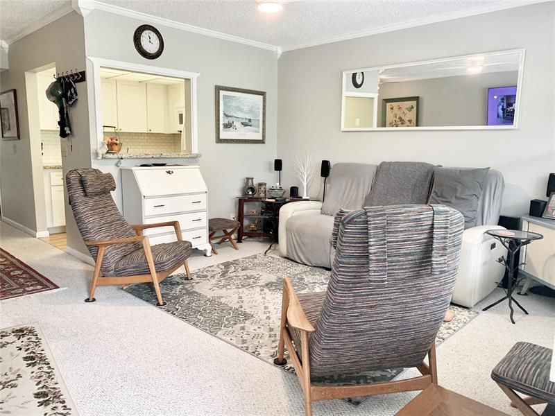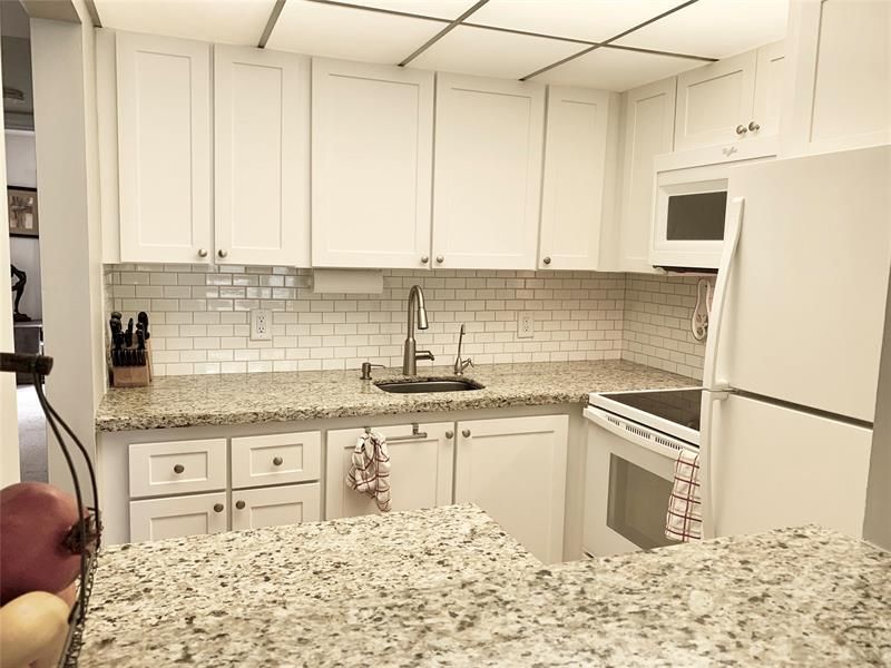 Welcome to your perfect getaway or primary residence! Second floor condo, 1 bedroom, 1 bath features modern amenities, a cozy ambiance and a host of community features, making it ideal for relaxation and entertainment. Bright and inviting, updated kitchen, granite countertops, subway tile backsplash, complemented by white appliances. Enjoy outdoor living with a screened porch featuring metal roll-down storm shutters for added privacy and protection. Newer Roof, A/C, Water Heater and Washer & Dryer that is conveniently located next door in the laundry room. Heated pools, theater, clubhouse, fitness center, pickleball and tennis to stay active all nestled in a desirable age restricted guard gated community. Easy access to nearby parks, beaches, shopping and dining options.