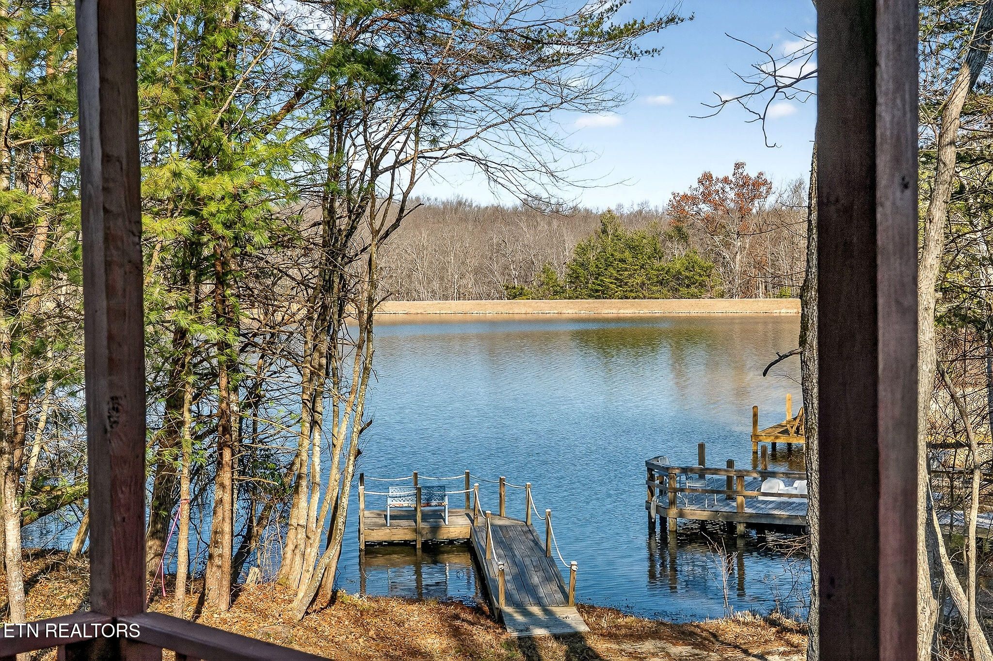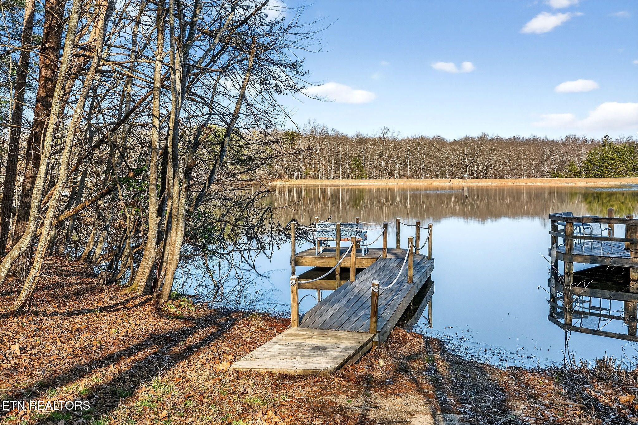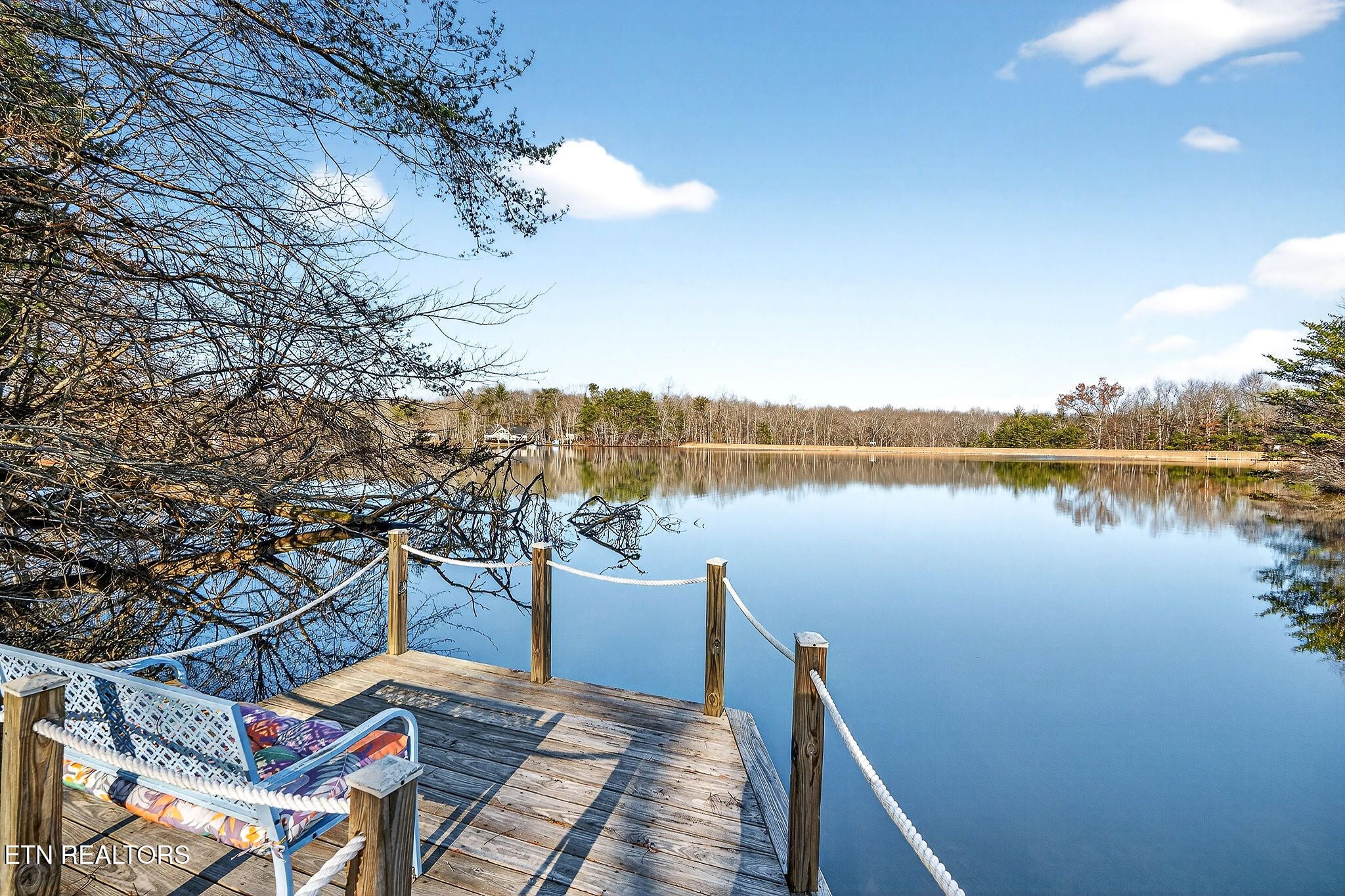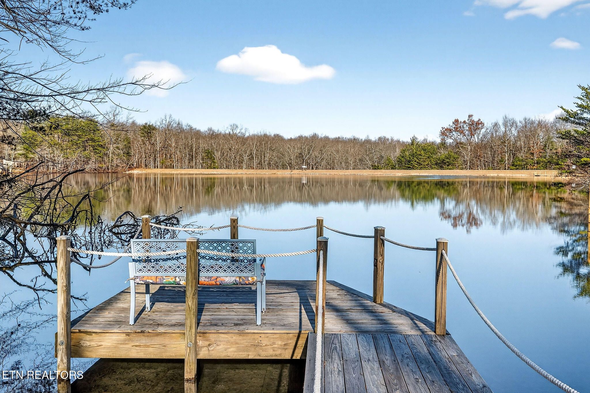 Lake Pomeroy home on serene lake setting with stocked fishing from your private dock, located in one of the South's premier golf and retirement communities. This stunning property with lake views from nearly every room has been completely remodeled from the studs out and reflects the sellers' high-end taste throughout. The modern and spacious living room features an electric fireplace, adding warmth and ambiance while maintaining a sleek, contemporary feel. The kitchen and baths showcase gorgeous black quartz countertops, classic white custom soft close shaker cabinets, easy-to-maintain luxury vinyl plank flooring, and fresh new paint throughout the home. Flex space and laundry room are also on this main level for your convenience just steps from master bedroom. Home completely remodeled in 2024 and has not been lived in since, pet free! The primary bedroom is conveniently located on the main level and offers a dream-worthy closet, double vanities, and a beautifully tiled walk-in shower. The second level includes two additional bedrooms with plenty of storage space along with a fabulous bonus area, perfect for a home office, TV room, or flexible living space. Step out onto the large covered back deck to enjoy peaceful lake views, or relax on the charming covered front porch—ideal for morning coffee or evening sunsets. The completely heated and cooled huge basement/2 car garage lower level features a bonus room with a half bath, perfect for crafting, a man cave, guest space, or area hobby room. Garage is also has work shop area and electric vehicle charger. An additional lot is included, and home has been hooked into the Fairfield Glade sewer system allowing this home to be officially classified as a three-bedroom residence—a rare and highly desirable feature in this neighborhood. Also a new concrete pad allowing easier access to front entrance. This is a rare opportunity to own a fully renovated lake home in a sought-after community. Come see it for yourself! Buyer to verify all information. Dues are for both home and extra lot.