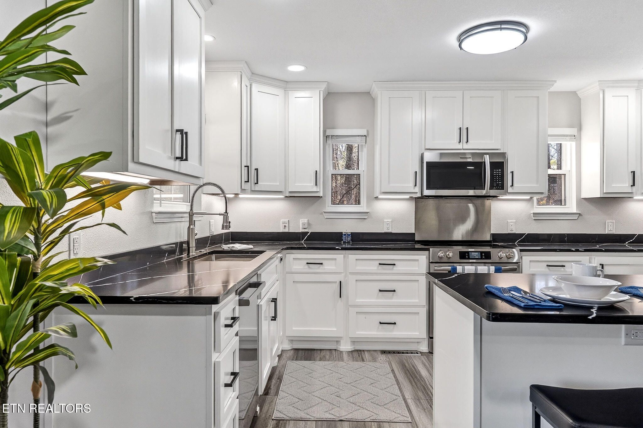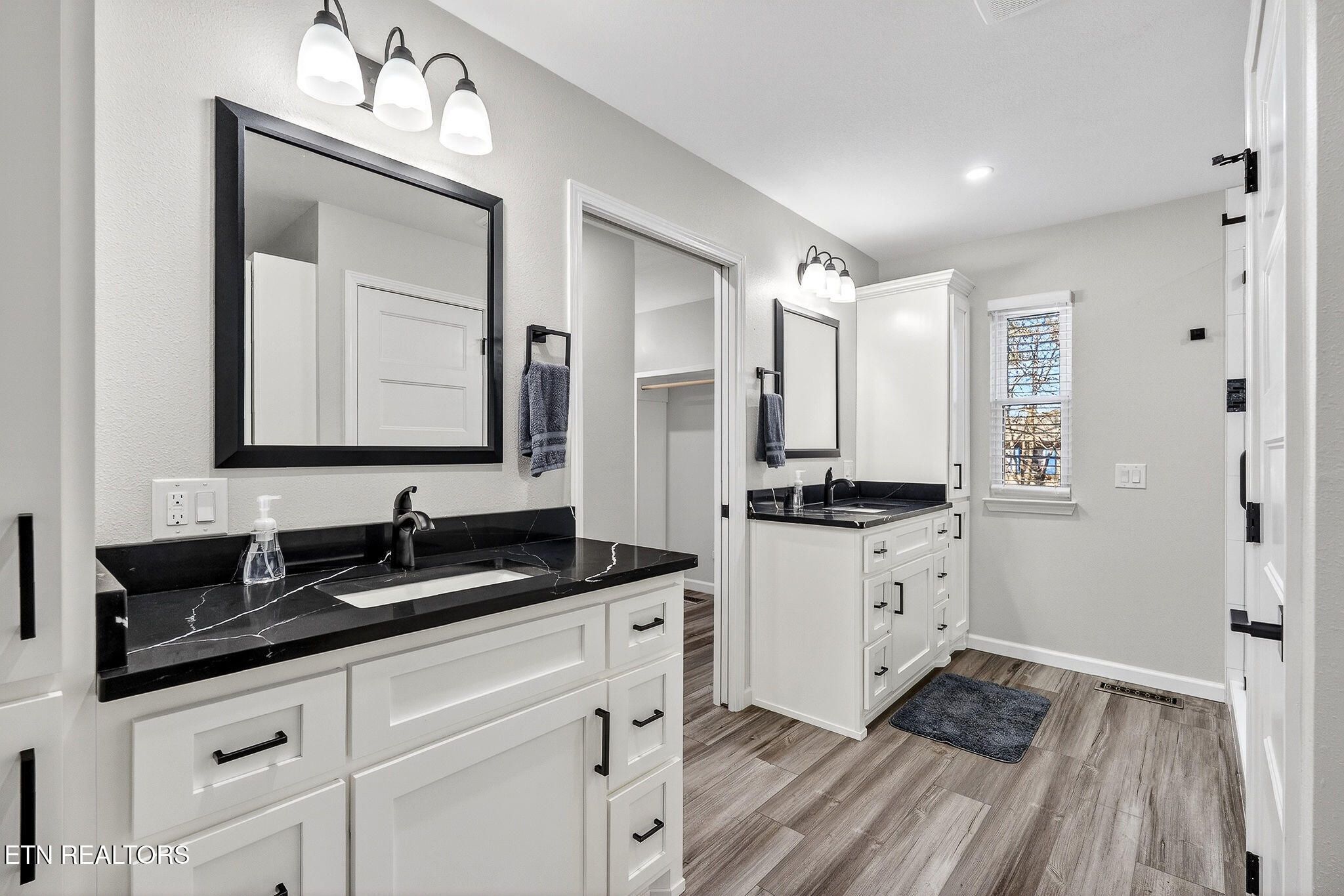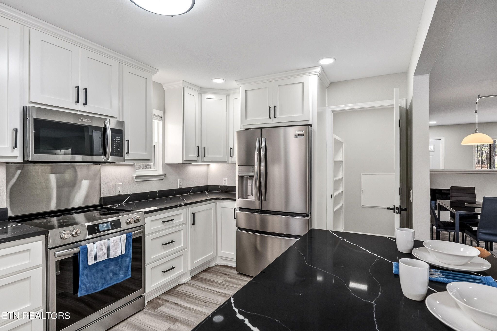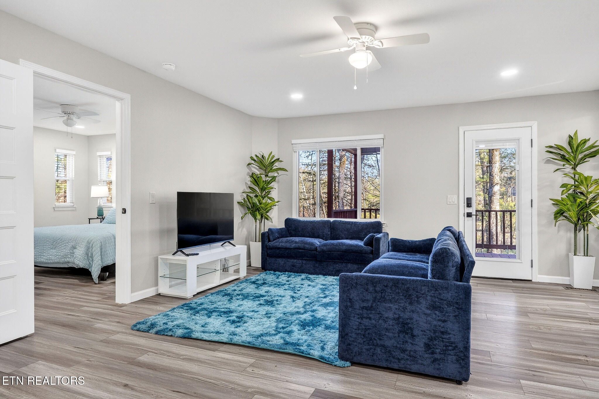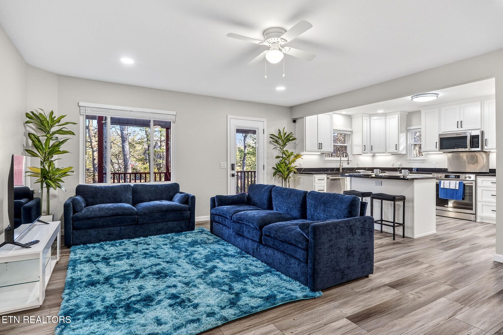 Lake Pomeroy home on serene lake setting with stocked fishing from your private dock, located in one of the South's premier golf and retirement communities. This stunning property with lake views from nearly every room has been completely remodeled from the studs out and reflects the sellers' high-end taste throughout. The modern and spacious living room features an electric fireplace, adding warmth and ambiance while maintaining a sleek, contemporary feel. The kitchen and baths showcase gorgeous black quartz countertops, classic white custom soft close shaker cabinets, easy-to-maintain luxury vinyl plank flooring, and fresh new paint throughout the home. Flex space and laundry room are also on this main level for your convenience just steps from master bedroom. Home completely remodeled in 2024 and has not been lived in since, pet free! The primary bedroom is conveniently located on the main level and offers a dream-worthy closet, double vanities, and a beautifully tiled walk-in shower. The second level includes two additional bedrooms with plenty of storage space along with a fabulous bonus area, perfect for a home office, TV room, or flexible living space. Step out onto the large covered back deck to enjoy peaceful lake views, or relax on the charming covered front porch—ideal for morning coffee or evening sunsets. The completely heated and cooled huge basement/2 car garage lower level features a bonus room with a half bath, perfect for crafting, a man cave, guest space, or area hobby room. Garage is also has work shop area and electric vehicle charger. An additional lot is included, and home has been hooked into the Fairfield Glade sewer system allowing this home to be officially classified as a three-bedroom residence—a rare and highly desirable feature in this neighborhood. Also a new concrete pad allowing easier access to front entrance. This is a rare opportunity to own a fully renovated lake home in a sought-after community. Come see it for yourself! Buyer to verify all information. Dues are for both home and extra lot.