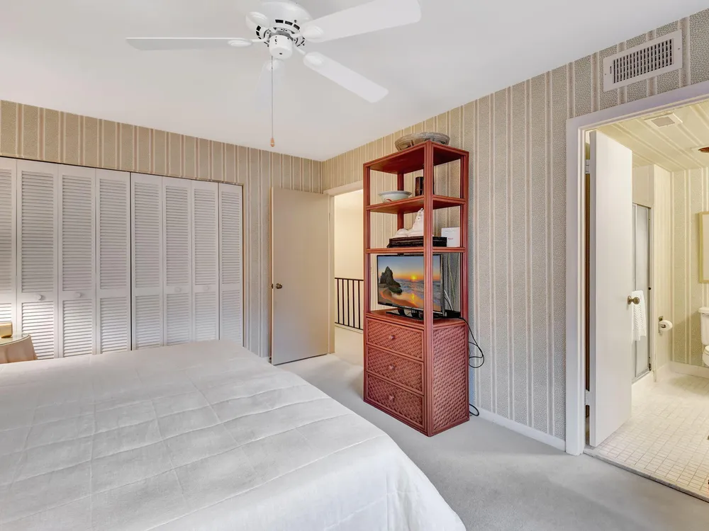 Welcome to this spacious and elegant 2-bedroom, 2.5-bathroom townhome located in the desirable Stratford East section of Hunters Run Country Club. Offering approximately 2,000 square feet of living space, this centrally located property is perfect for those seeking comfort, convenience, & stunning views.First Floor Features: . A large eat-in kitchen w/ sliding doors leading to a cozy front patio. An open-concept living & dining area, ideal for entertaining. A convenient half bath & a dedicated laundry room. An oversized screened patio w/skylights, providing breathtaking views of the tranquil lake.Second Floor Features: A luxurious master suite w/ ample closet space & a private bathroom. A spacious guest bedroom w/its own en suite bath
