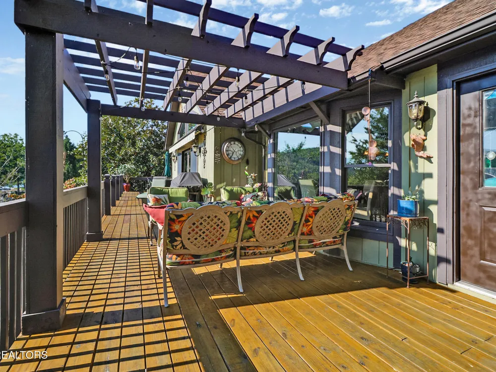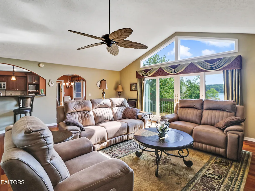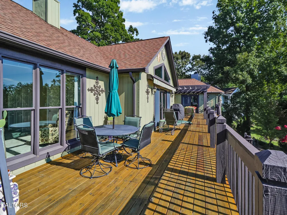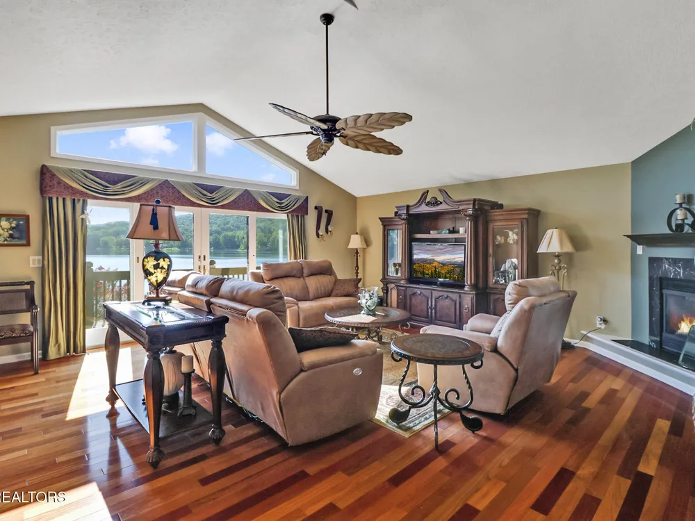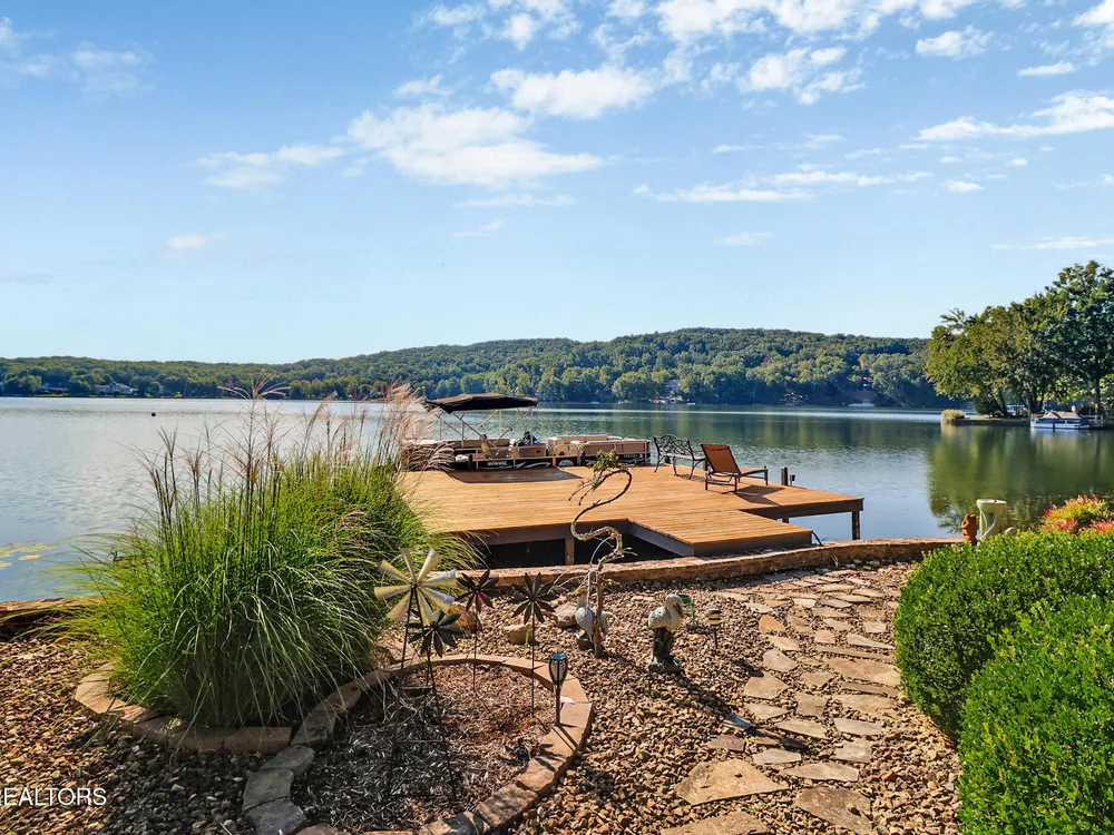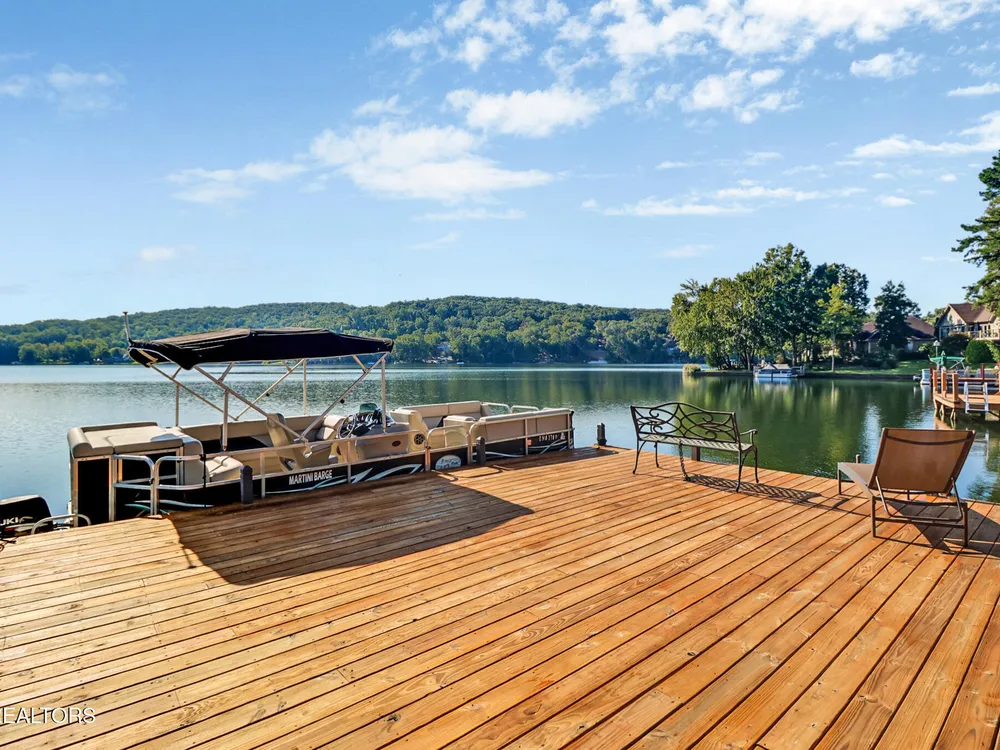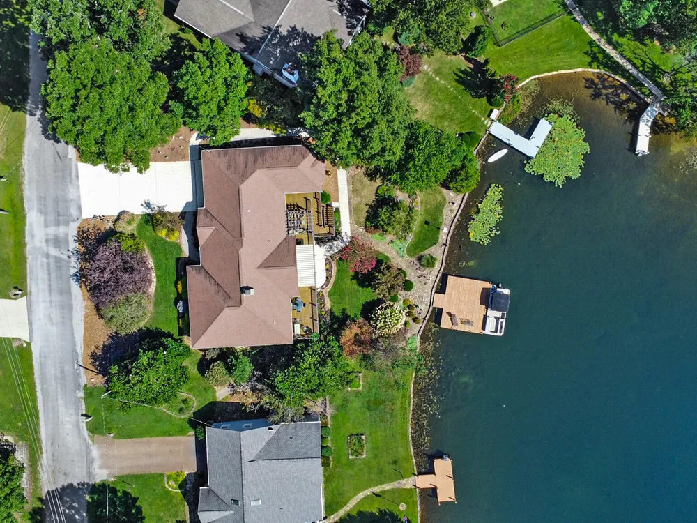 Exceptional Lakefront Home on Lake Dartmoor! Located on the largest part of Lake Dartmoor, this stunning 4-bedroom, 3.5-bath home offers some of the most expansive water views in the area. With mature landscaping that provides both beauty and privacy, this property is a nature lover's paradise where you'll enjoy breathtaking sunrises in the morning and the glow of the moon over the lake at night. Wildlife and natural beauty abound, creating a serene retreat. You'll find a spacious main living area with beautiful hardwood floors, gas fireplace, and abundant natural light from large windows showcasing lake views. The chef's kitchen has ample storage and counter space, opening to a breakfast nook with beautiful bay window for another stunning view of the lake. A formal dining room sits in the front of the home. The master suite includes a spa-like bath with a jacuzzi tub, tiled walk-in shower, and generous closet space. Bedrooms 2 & 3 are located on the main level with a guest bath in the hallway. The sunroom is currently serving as an office with more panoramic lake views. Convenient half bath, laundry and coffee bar area near the garage entry. In the lower level, you'll find a bedroom/office/flex space with a full bath, ideal for guests or multi-purpose use. Dedicated storm shelter for peace of mind. Enjoy abundant storage and a workshop area in the crawl space. A sewer ejection pump to service the lower level bath is also located in the crawl space. On the exterior, you'll find an expansive new deck with retractable awning perfect for entertaining and outdoor living. This home has the largest dock on Lake Dartmoor, complete with fountain, electric, and plenty of room for boats, lounging, and lakefront activities. The well maintained cedar siding was painted 5 years ago, the roof replaced 9 years ago, HVAC system only 1 year old, and has a new deck and dock. It also has a whole house attic fan. This property combines lakeside luxury with functional living, making it a rare find on Lake Dartmoor. Whether you're seeking a full-time residence or a retreat, this home delivers unmatched views, comfort, and upgrades.