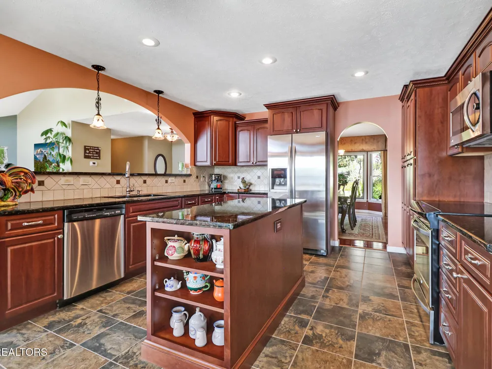 - Cathedral Ceiling(s), Kitchen Island, Pantry, Breakfast Bar