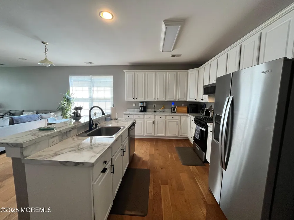 Located at the end of a private cul-de-sac in one of Jackson's premier active adult communities, this bright and spacious Bonaire model features a newly added study, hardwood floors, and an open-concept layout filled with natural light. Enjoy 42'' white cabinetry, brand-new stainless steel appliances, and tile flooring in the kitchen and breakfast area. The family room with fireplace opens to a sunny extended sunroom, creating the perfect space to relax or entertain. The primary suite is bumped out and includes his-and-hers closets. Both bathrooms offer clean white vanities. A 20x10 bonus room above the garage is accessed by a full staircase ideal for guests, hobbies, or storage. New A/C and furnace. A perfect home in a peaceful setting, don't miss this one!