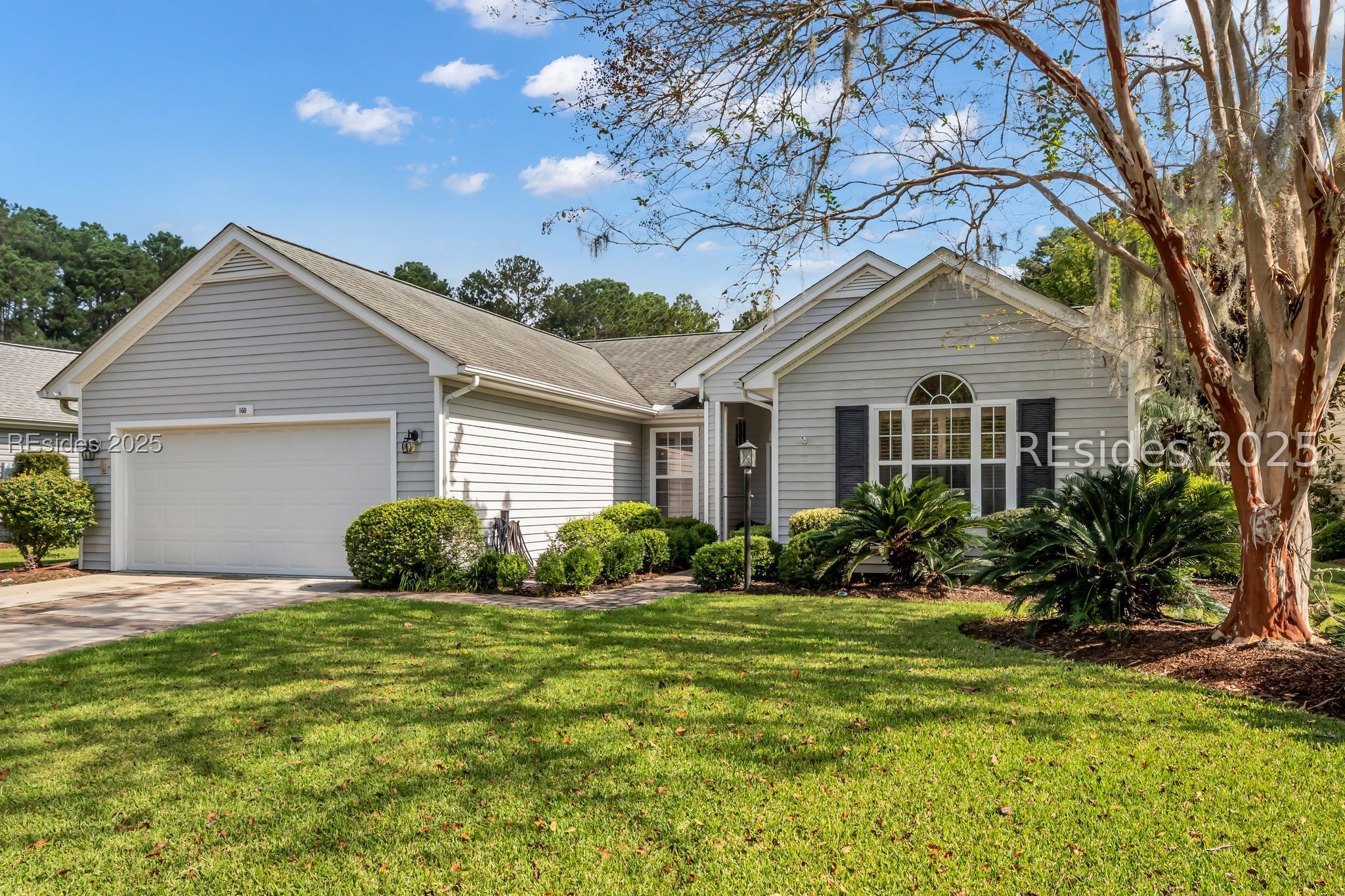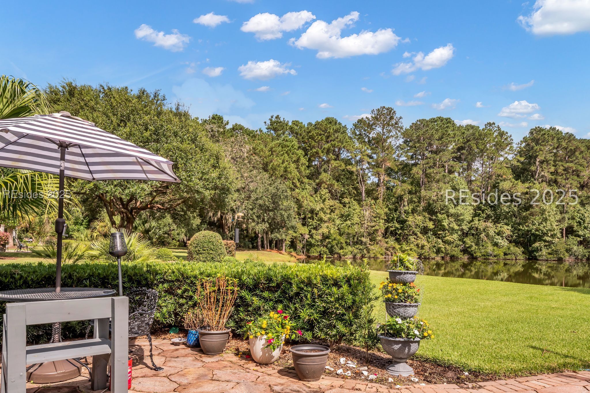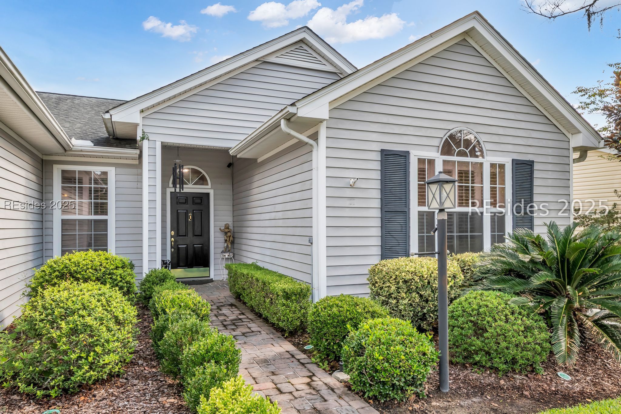 Enjoy one of the best lagoon-to-woods views in Sun City Hilton Head from this desirable 2-bedroom, 2-bath Hamilton/Jefferson home. The Carolina Room overlooks the brick paver patio and private backyard, creating a perfect spot to relax and take in the stunning scenery. Inside, the light-filled Great Room with built-ins and fireplace offers a comfortable gathering space, while the kitchen features refaced cabinets, a lowered bar with quartz countertops, stainless steel appliances, and a gas stove. A mini bonus room off the kitchen provides flexible space for an office, storage, craft area, or laundry room. Both bathrooms have been updated with quartz countertops for a fresh, modern touch. Additional highlights include wood floors in the main living areas, bay windows, plantation shutters and blinds, smooth ceilings, ceiling fans, vinyl siding, and a paver-lined driveway for added curb appeal. The home's convenient location near the front gate and Town Center amenities makes this must-see. Don't miss this opportunity to enjoy stunning lagoon views and Lowcountry living. Schedule your tour today!