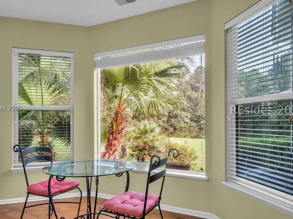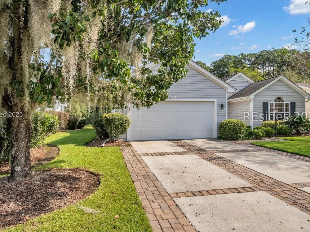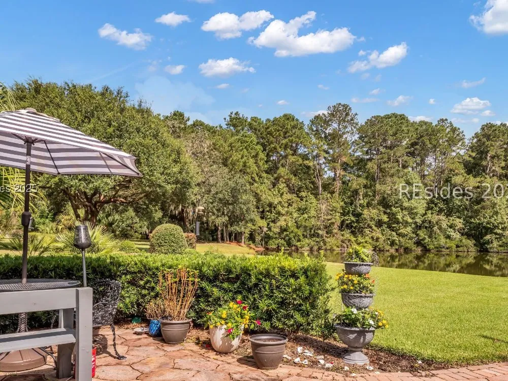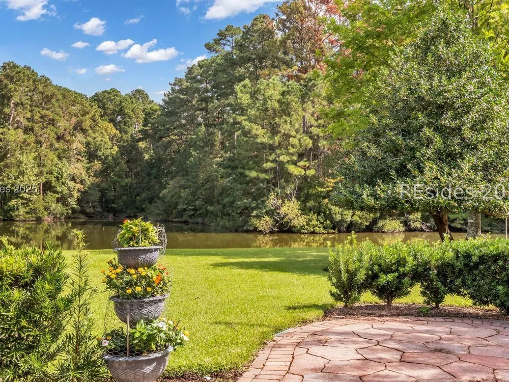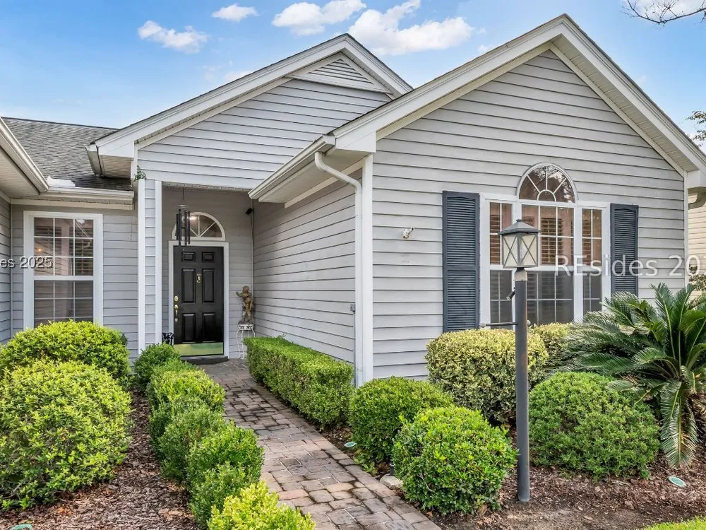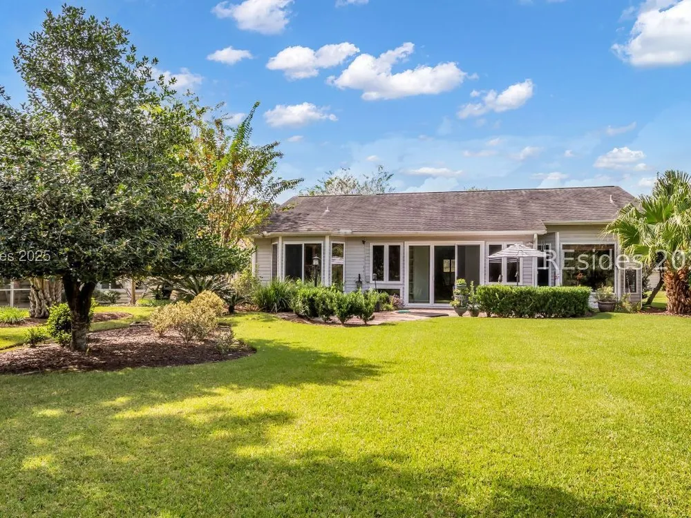 Enjoy one of the best lagoon-to-woods views in Sun City Hilton Head from this desirable 2-bedroom, 2-bath Hamilton/Jefferson home. The Carolina Room overlooks the brick paver patio and private backyard, creating a perfect spot to relax and take in the stunning scenery. Inside, the light-filled Great Room with built-ins and gas fireplace offers a comfortable gathering space, while the kitchen features refaced cabinets, a lowered bar with quartz countertops, stainless steel appliances, and a gas stove. A mini bonus room off the kitchen provides flexible space for an office, storage, craft area, or laundry room. Both bathrooms have been updated with quartz countertops for a fresh, modern touch. Additional highlights include wood floors in the main living areas, bay windows, plantation shutters and blinds, smooth ceilings, ceiling fans, vinyl siding, and a paver-lined driveway for added curb appeal. The home's convenient location near the front gate and Town Center amenities makes this must-see. Don't miss this opportunity to enjoy stunning lagoon views and Lowcountry living. Schedule your tour today!