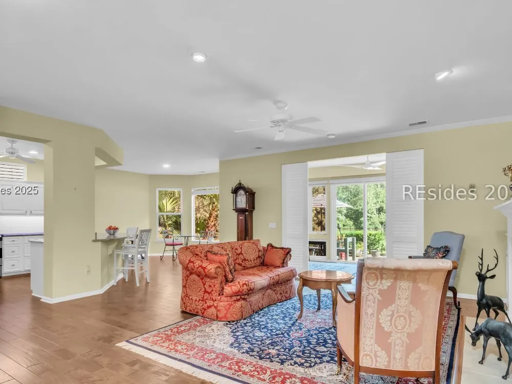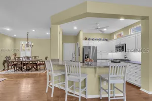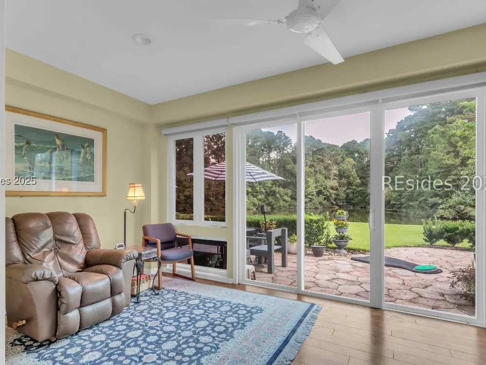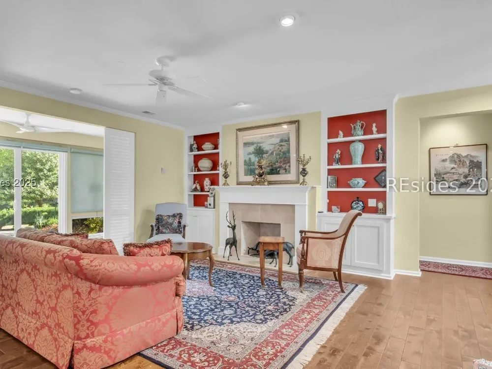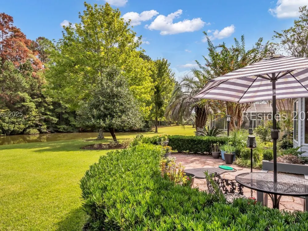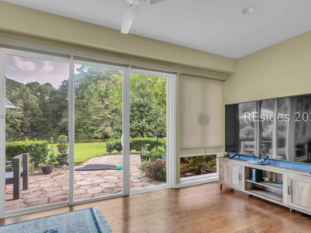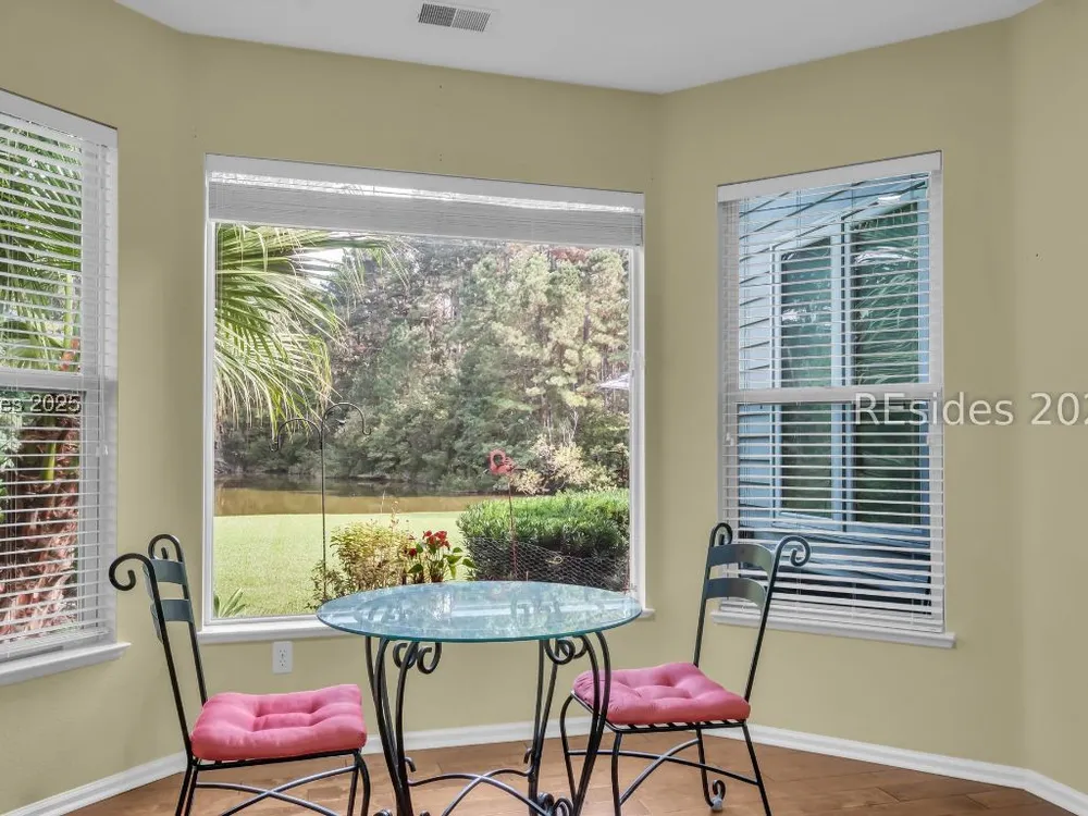 Enjoy one of the best lagoon-to-woods views in Sun City Hilton Head from this desirable 2-bedroom, 2-bath Hamilton/Jefferson home. The Carolina Room overlooks the brick paver patio and private backyard, creating a perfect spot to relax and take in the stunning scenery. Inside, the light-filled Great Room with built-ins and gas fireplace offers a comfortable gathering space, while the kitchen features refaced cabinets, a lowered bar with quartz countertops, stainless steel appliances, and a gas stove. A mini bonus room off the kitchen provides flexible space for an office, storage, craft area, or laundry room. Both bathrooms have been updated with quartz countertops for a fresh, modern touch. Additional highlights include wood floors in the main living areas, bay windows, plantation shutters and blinds, smooth ceilings, ceiling fans, vinyl siding, and a paver-lined driveway for added curb appeal. The home's convenient location near the front gate and Town Center amenities makes this must-see. Don't miss this opportunity to enjoy stunning lagoon views and Lowcountry living. Schedule your tour today!