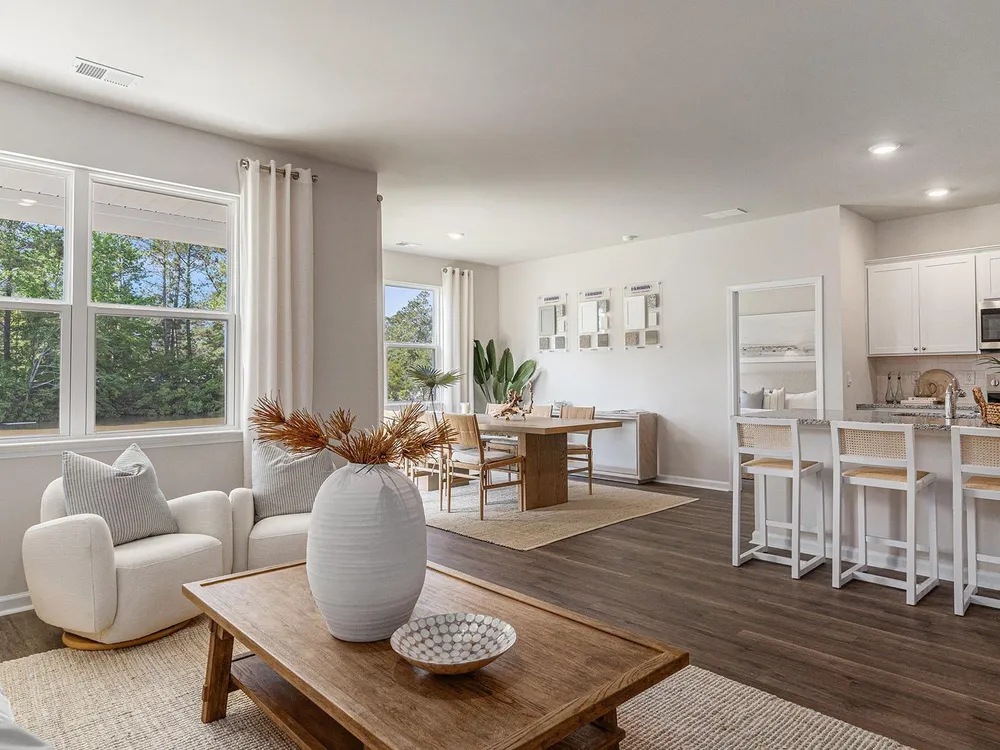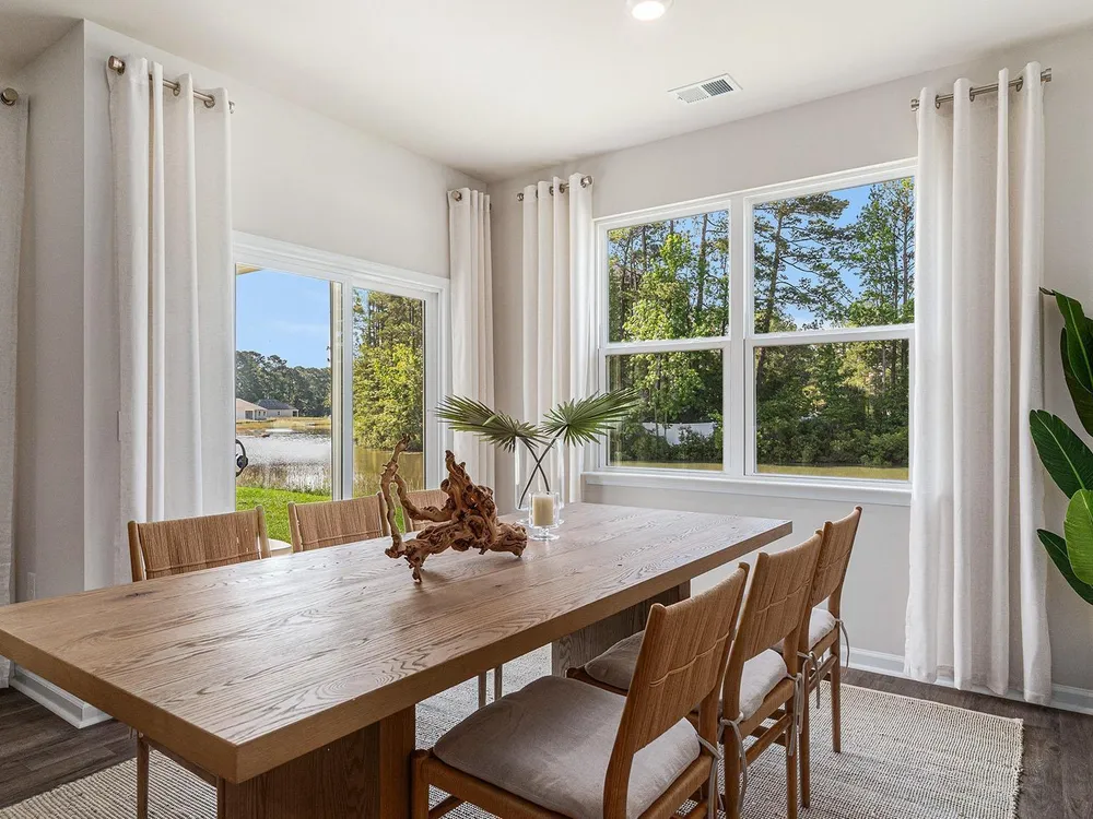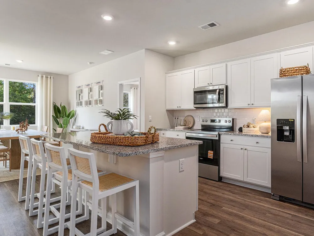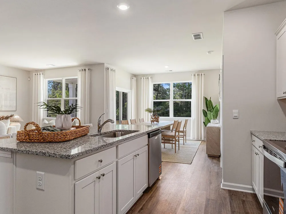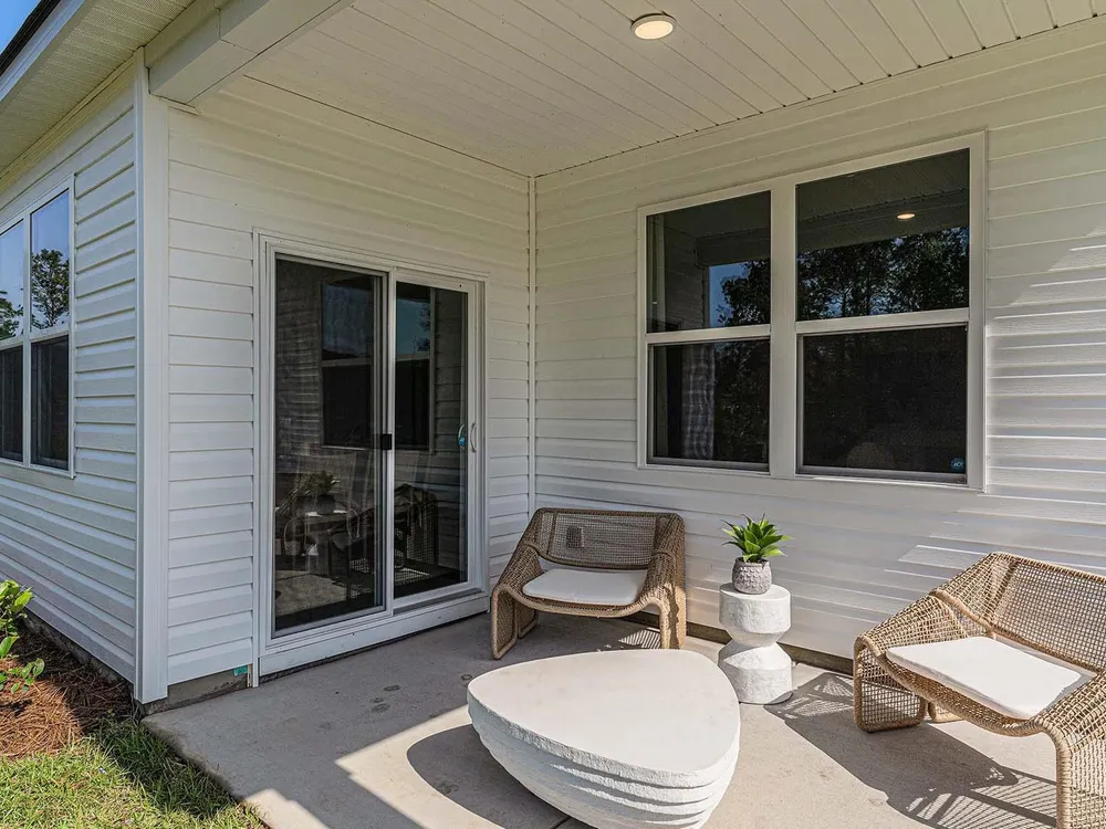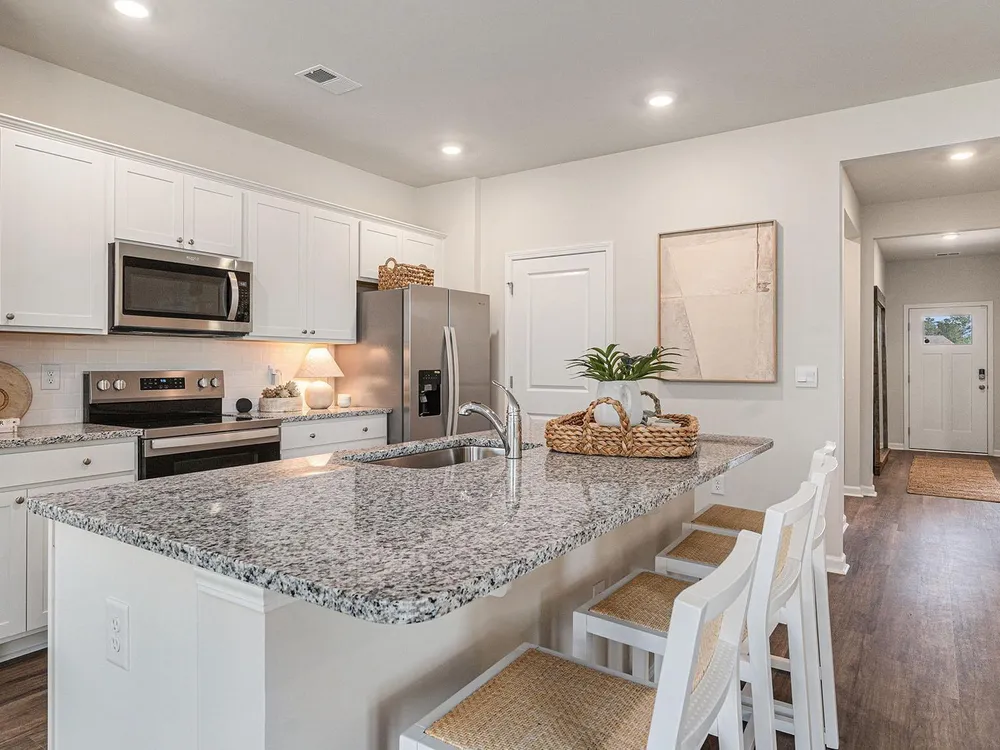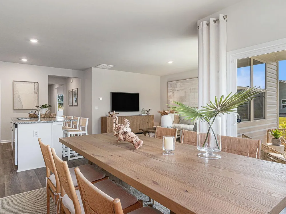 This thoughtfully designed one level home is one of our most popular floor plans! With an open concept living room, dining room and kitchen, this home is bright, spacious, and designed for entertaining guest or comfortably interacting with family. The kitchen features granite countertops, a tile backsplash, 36" cabinets, a spacious pantry, stainless steel appliances including a refrigerator, and island with breakfast bar! Your primary suite awaits off the back of the home with a spacious walk-in closet and master bath with double sinks, a linen closet and 5' shower. Two secondary bedrooms are at the front of the home providing separation from the primary suite. Enjoy the coastal air from the back porch as you wind down in the evening! This is America's Smart Home! Each of our homes comes with an industry leading smart home technology package that will allow you to control the thermostat, front door light and lock, and video doorbell from your smartphone. *Photos are of a similar Aria home. Pictures, photographs, colors, features, and sizes are for illustration purposes only and will vary from the homes as built. Home and community information, including pricing, included features, terms, availability and amenities, are subject to change and prior sale at any time without notice or obligation. Square footage dimensions are approximate. Equal housing opportunity​​‌​​​​‌​​‌‌​‌‌​​​‌‌​‌​‌​​‌‌​​​‌ builder.