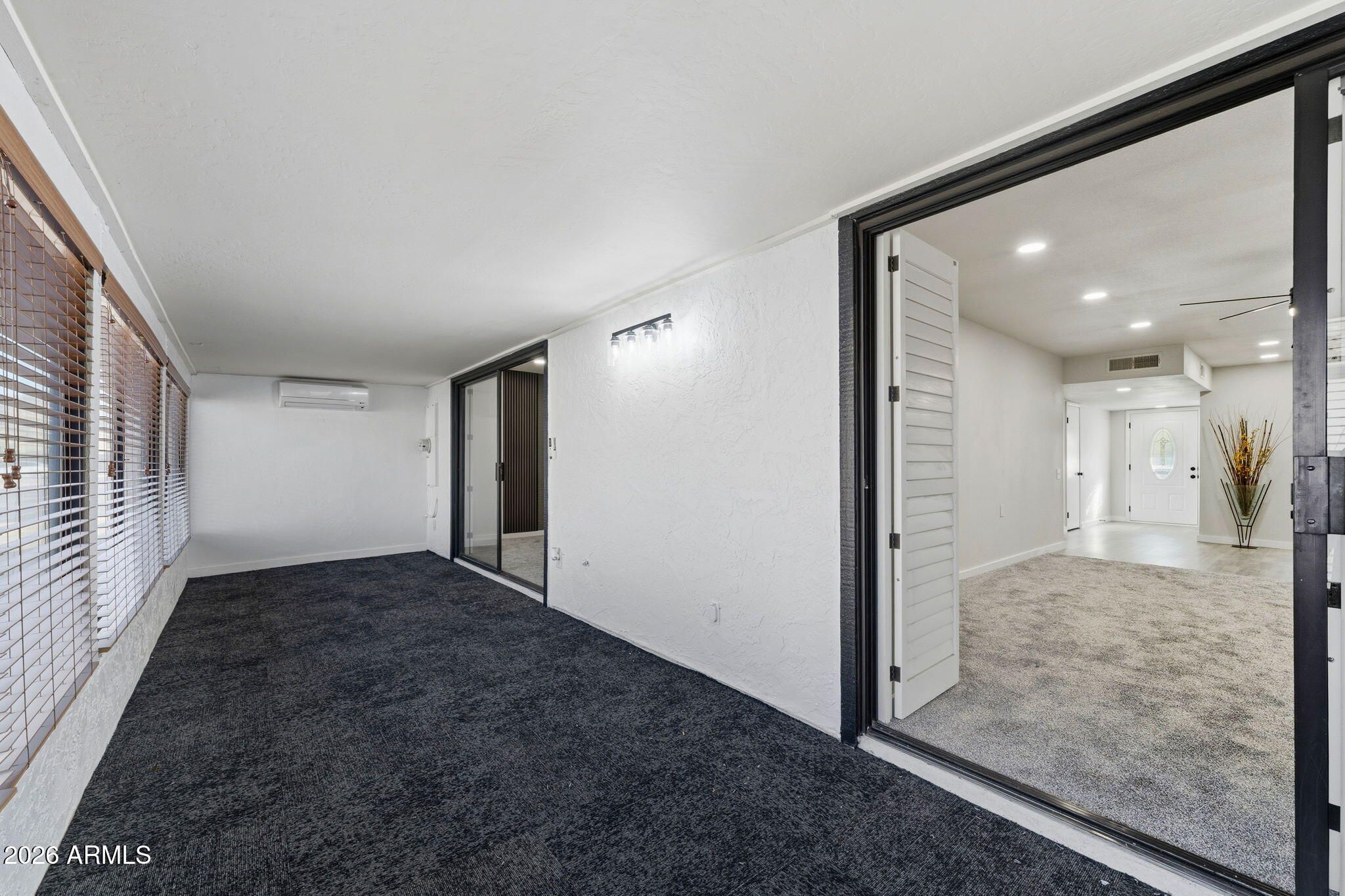 Ideally situated on a corner lot, this stunning home has undergone an approximate $50,000 renovation and is truly move-in ready. Thoughtful upgrades shine throughout, including LVP flooring and carpet, plantation shutters, and beautifully upgraded bathrooms. The primary suite is a standout, featuring a double vanity, two closets with built-in shelving, a stylish accent wall, and direct access to the Arizona room. The Arizona room, complete with its own AC unit, is filled with windows and blinds, creating a bright and versatile space to relax or entertain year-round. The kitchen offers stainless steel appliances and a large window that floods the space with natural light, while the living room includes built-in shelving for both style and function. Additional highlights include a one-car oversized garage and charming citrus trees in the front yard, adding to the home's curb appeal. Located within the gated Leisure World community, residents enjoy an exceptional array of amenities, including heated spa and pools, golf, tennis courts, fitness center, clubhouse and media room, biking and walking paths, lakes, and convenient access to public transportation. This home offers the perfect blend of modern upgrades and resort-style living.