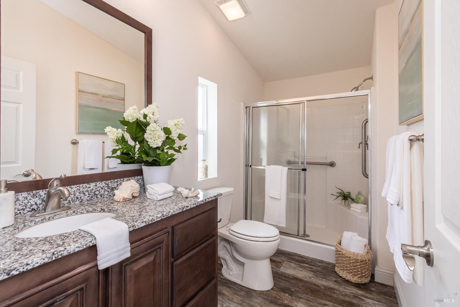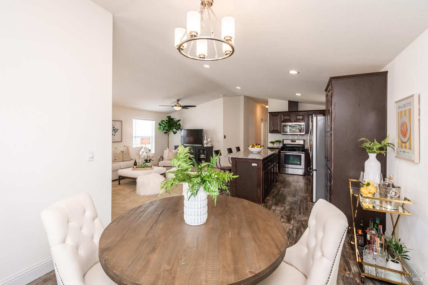 Yountville Hideaway with Vineyard Views & Sunset Vibes - Welcome to the heart of wine country where the best locations are already spoken for, & this rare opportunity offers more than just a home. Nestled in a quiet cul-de-sac within a private, gated park in coveted Yountville, this 2017-built 3-bedroom, 2-bathroom 1,494 sq ft residence is a tranquil retreat with front-row vineyard views & dramatic sunset-facing deck. Step inside to be greeted by vaulted open-beam ceilings, a formal living & dining area, & a generous chef's kitchen featuring a large center island, granite counters, & cozy breakfast nook. The spacious primary suite is thoughtfully positioned for privacy & relaxation. Outside, enjoy the serene setting surrounded by Stags Leap, Mt. Veeder, & iconic Napa Valley vineyards & forests. The community offers resort-style amenities including a pool, pet-friendly policy, and beautifully maintained grounds. Whether you're unwinding with a glass of wine on your deck or exploring Yountville's renowned parks, golf, restaurants, Bocce & shops, this home places you at the center of it allwhile feeling miles away from the rush. Where comfort meets convenience, and every sunset is a reminder you've arrived.