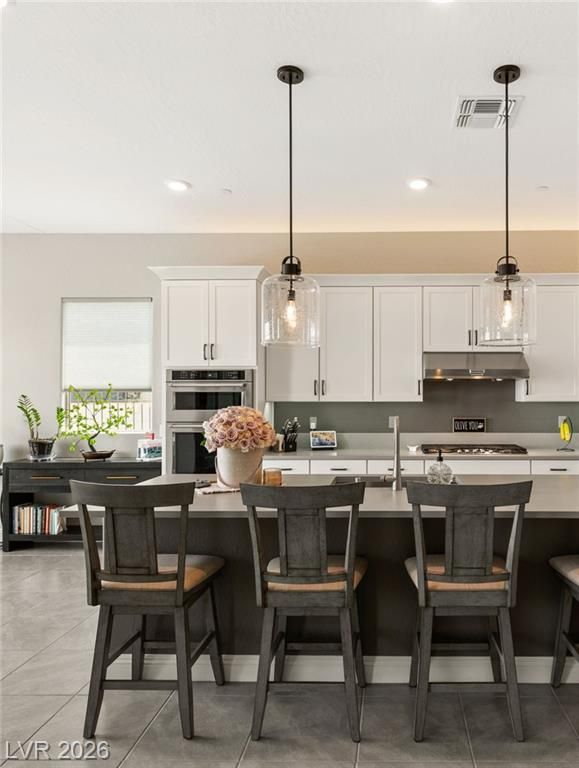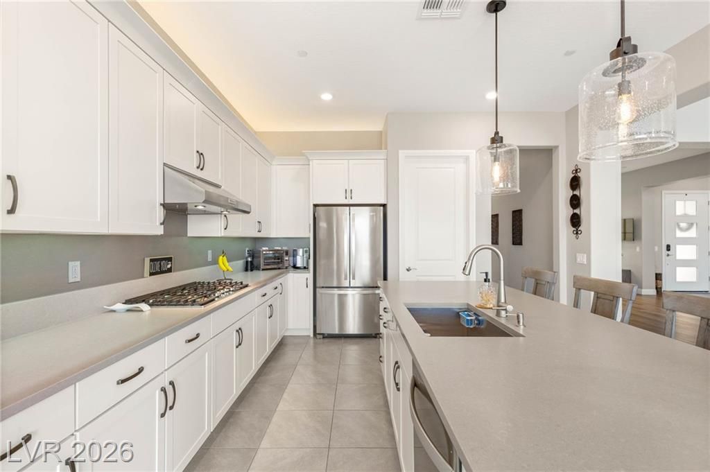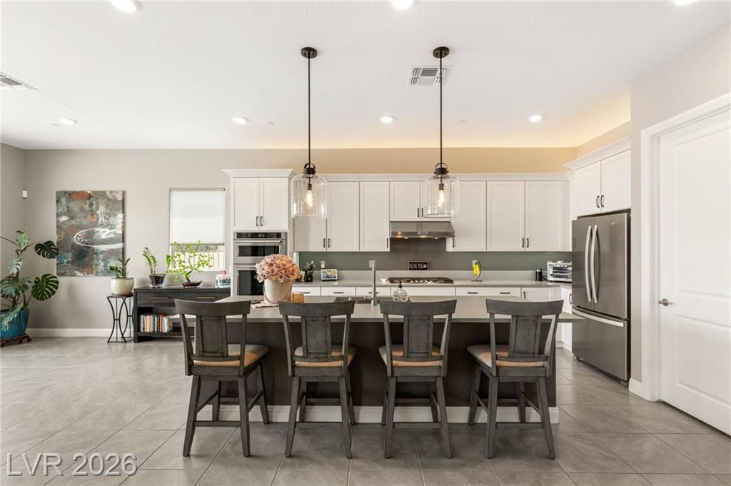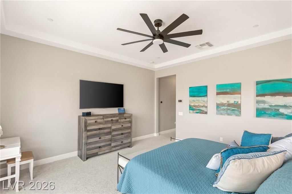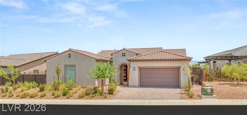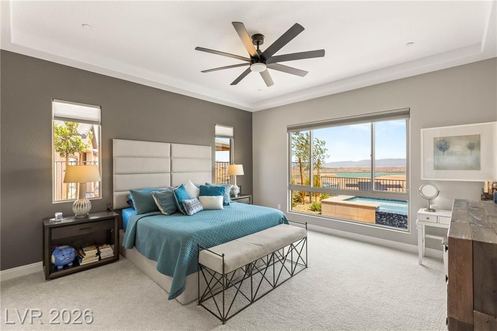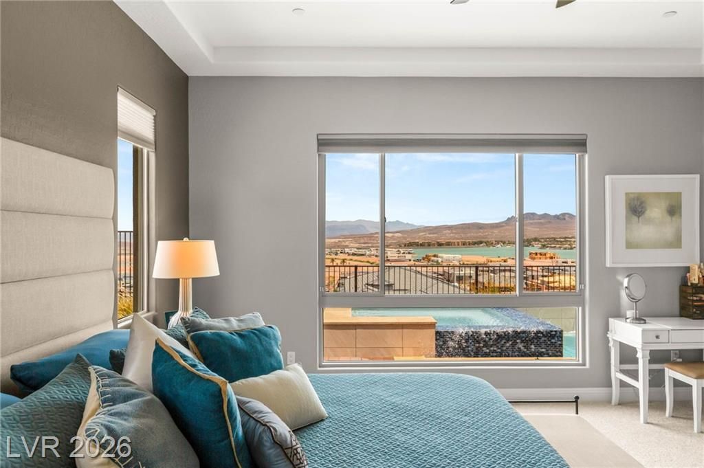 This property sits on an oversized homesite w/180 degree views of Lake Las Vegas. Step through your front door into a massive open concept living area flooded with natural light. You will love the tray ceilings, A/V built-in w/surround sound, luxury plank floors, stacked center slider w/transom windows and custom light fixtures. Well appointed kitchen w/slab quartz counters, white cabinets, stainless steel Kitchen Aid hood, oven, 5 burner cooktop and oversized pantry. Primary bedroom has an enormous spa shower, separate vanities and spacious walk-in closet.Relax under your covered patio and enjoy a STUNNING custom pool, spa, built in BBQ with wet bar, and griddle. Home has window shades throughout, epoxied garage, tankless WH, high SEER A/C w/cathedralized cellulose insulation. State of the art clubhouse with social calendar, 2 pools, hot tub, pickleball, and more.