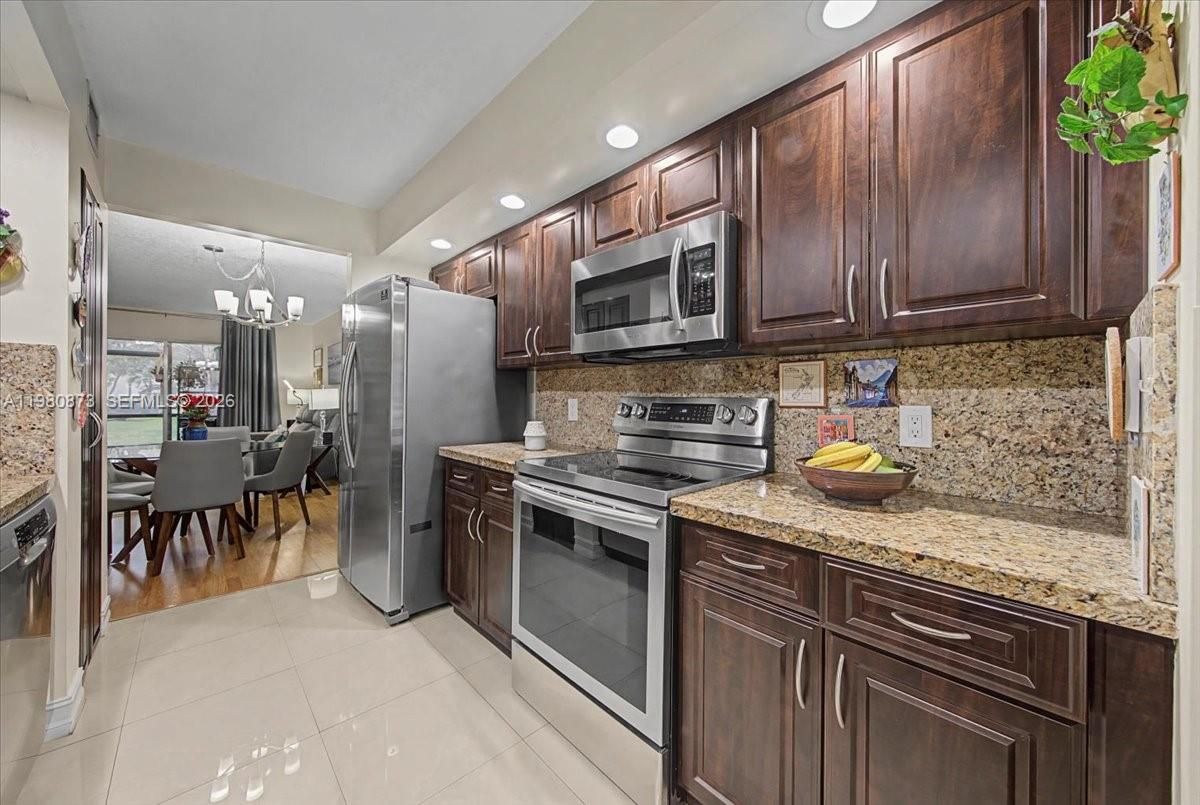 Welcome to comfortable 2Bed/2bath residence located in one of Pembroke Pines’ most desirable 55+ communities. The home features neutral wall and ceiling tones that create a bright, inviting atmosphere ready for your personal touch. The spacious layout includes walk-in closet and a screened porch that faces garden area, perfect for enjoying your morning coffee or unwinding in the evening. The kitchen offers granite countertops and ample cabinetry, providing plenty of storage and workspace for everyday cooking. The primary bathroom is thoughtfully updated with a modern vanity and LED mirror, adding a touch of contemporary comfort. Accordion shutters on the windows offer added peace of mind and protection. Major systems have been recently updated, including a new A/C in 2025 and a water heater installed in 2023. Assigned parking is conveniently located just steps from the front door, with plenty of guest parking available. The mailbox is located near the building’s central elevator, along with a convenient trash drop-off area. Residents enjoy a vibrant, resort-style lifestyle with amenities that include golf, clubhouse, multiple pools, fitness center, pickleball courts, and transportation services. Ideally located near Memorial Hospital, Pembroke Lakes Mall, Publix, and CB Smith Park, with easy access to dining, shopping, and entertainment, this home offers the perfect opportunity for those looking to retire, downsize, and enjoy the best of active adult living in South Florida.