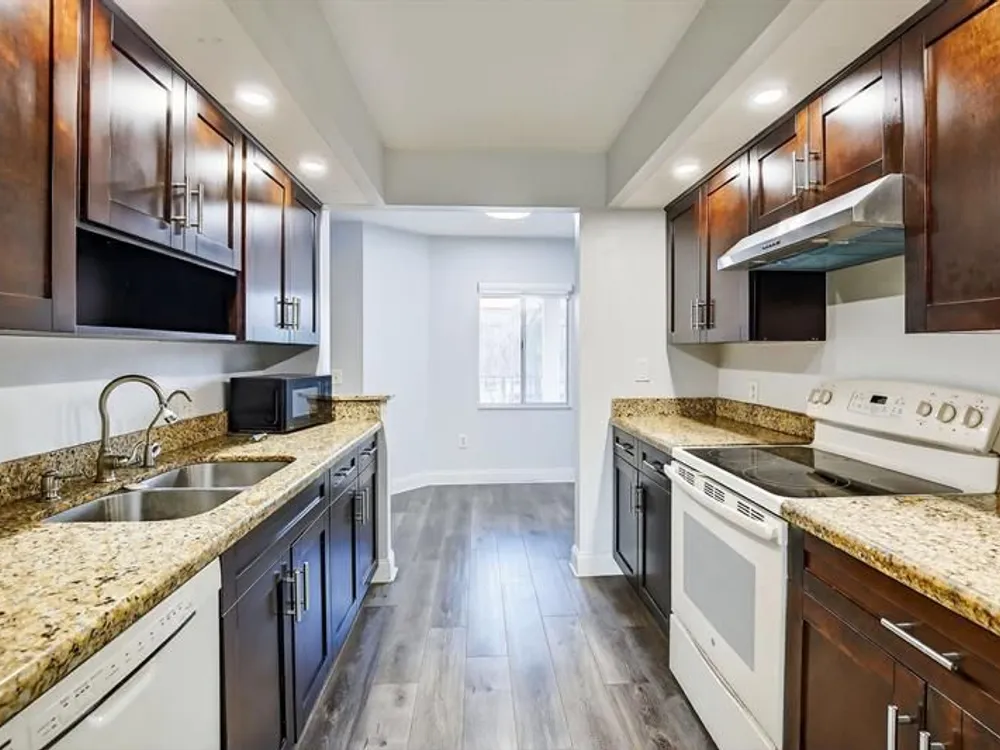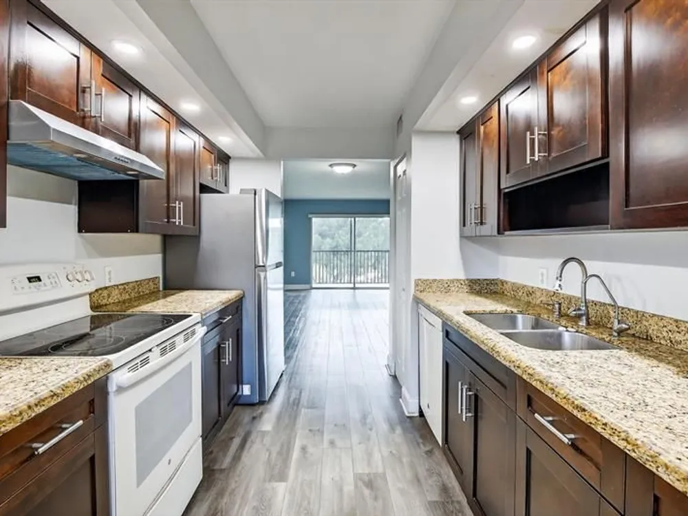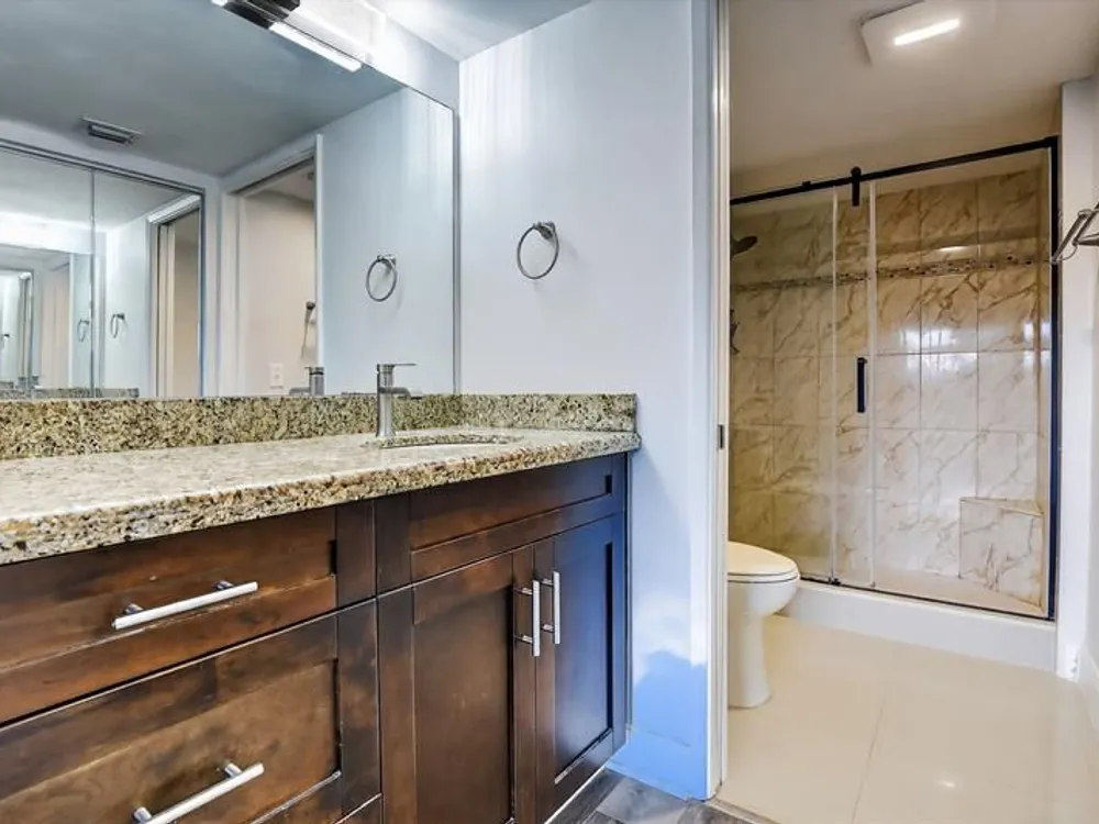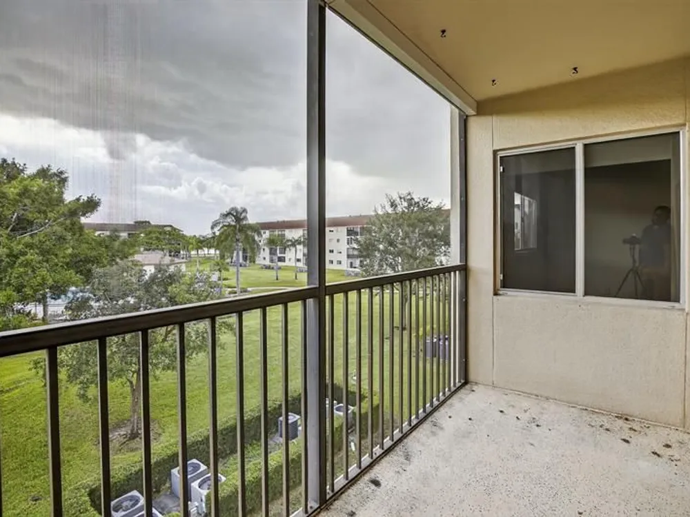 Beautifully Renovated, Spacious 2-Bed/2-Bath, Garden/pool area Views! Newest Bldgs in Century Village 55+ community. Abundance of natural light, serene lifestyle with resort-style amenities just steps away. Updated kitchen, S/S appliances & granite countertops. Private screened balcony. Updated bathrooms. Walk-in closet and ensuite bathroom in Master bed. Move-in ready, tile and laminate flooring throughout. Elevator in the bldg, laundry facilities inside. Assigned parking, plenty of guest spots available. 24/7 security, clubhouse, movie theater, sauna, live shows, indoor/outdoor pools, fitness center, tennis courts, golf, shuttle service, endless social activities, Water, internet, cable included in the monthly maintenance. Great area for shopping, dining, hospitals, and major highways.
