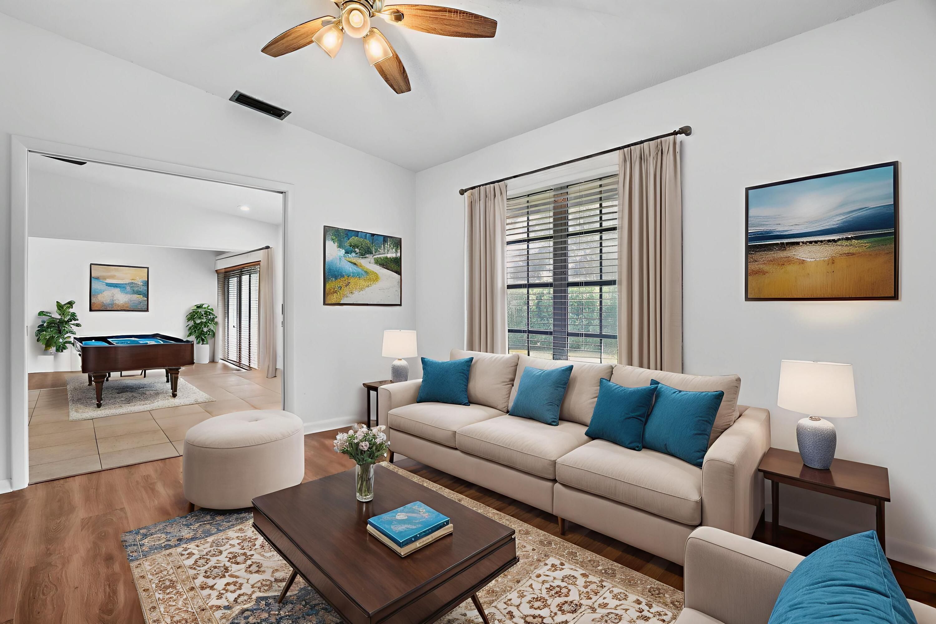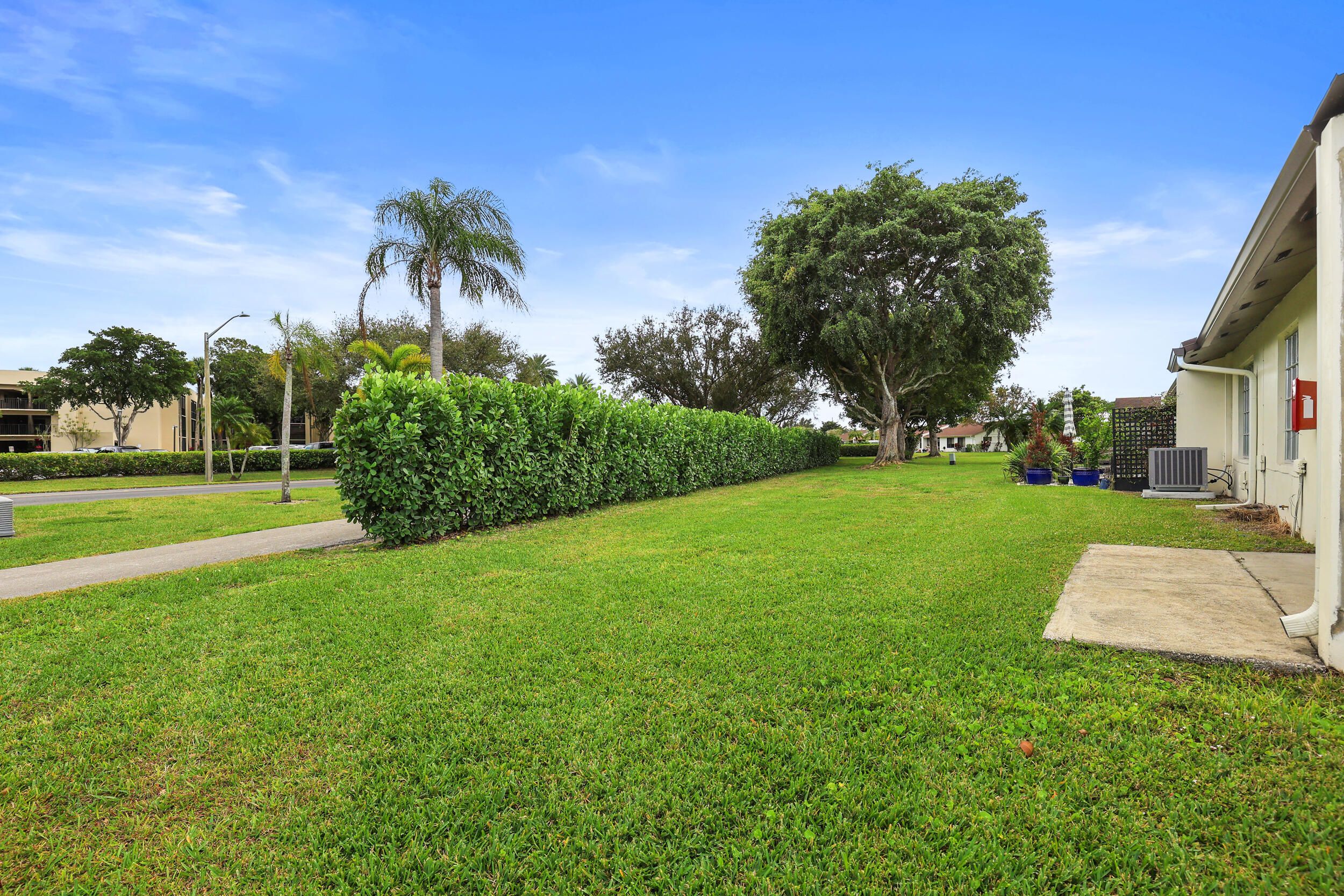 Welcome to this beautifully maintained 2-bedroom, 2-bath villa nestled in the highly desirable 55+ section of Las Verdes in Delray Beach—perfectly positioned just steps from one of the community pool. Enjoy the rare luxury of having what feels like your own private pool just outside your door, with all the convenience and none of the cost or maintenance. Filled with natural light, this bright and open home features a spacious living area with tile flooring, high-hat lighting, and a flexible layout ideal for both everyday living and entertaining. The kitchen offers warm wood cabinetry and stainless steel appliances, while both the primary and guest suites include updated ensuite baths for comfort and privacy. A charming den with sliding glass doors opens to the patio, creating a seamless indoor-outdoor flow perfect for enjoying the South Florida lifestyle. The garage includes a washer and dryer, and major updates such as a brand-new A/C (2024) and water heater (2025) provide peace of mind. Las Verdes offers an exceptional resort-style lifestyle with three pools and Jacuzzis, pickleball and tennis courts, a fitness center, clubhouse, spa, library, bocce, shuffleboard, scenic walking trails, and a full calendar of social and fitness activities. All of this is just minutes from Delray's beautiful beaches, Atlantic Avenue, renowned dining, shopping, and everyday conveniences. With a prime corner location and low HOA fees that include cable, and exterior maintenance, this move-in-ready villa is ideal for full-time living or a seasonal retreat. Come experience the lifestyle and value that make Las Verdes one of Delray Beach's most sought-after 55+ communitiesschedule your private showing today!