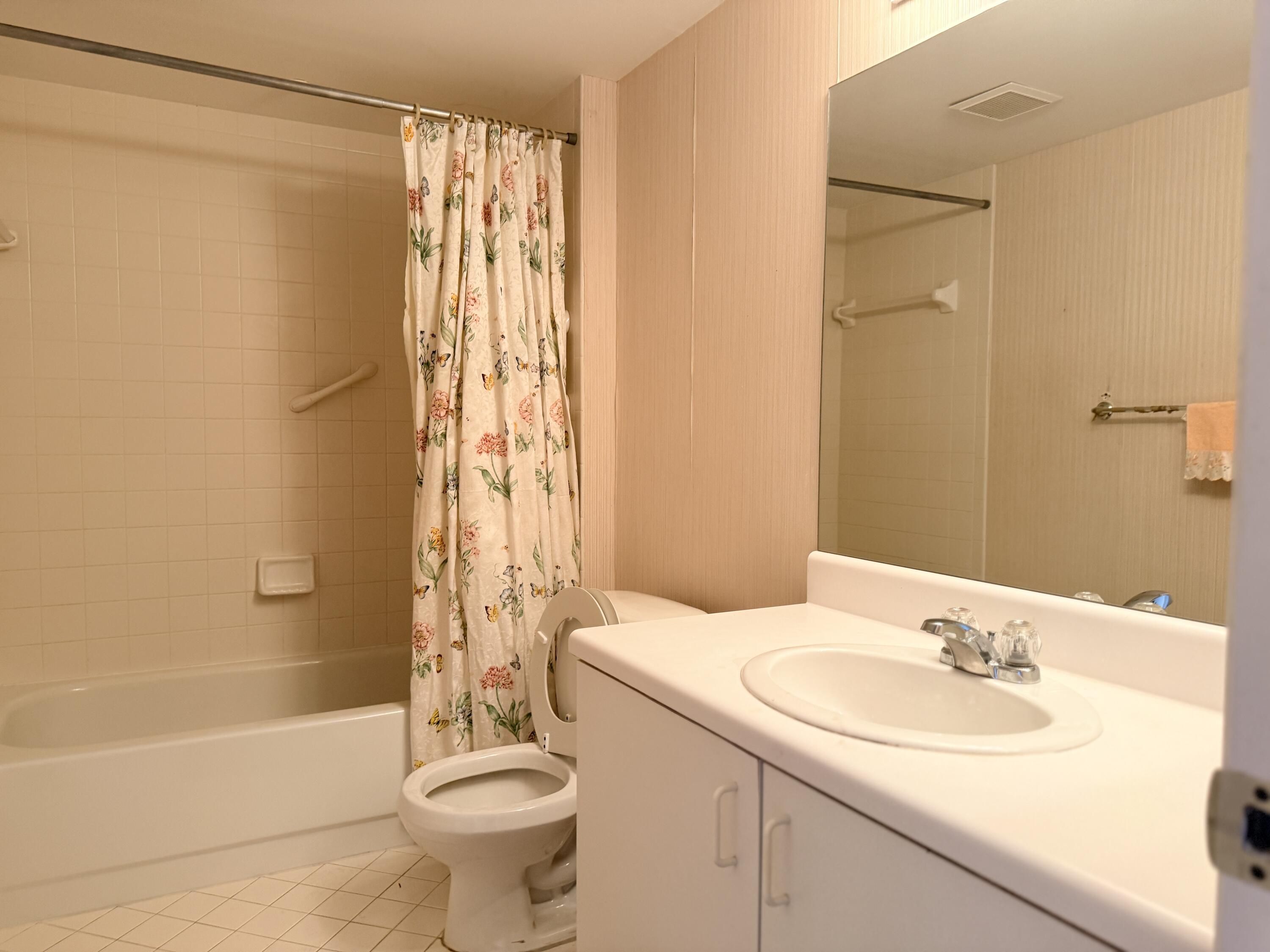 Spacious 2 bedroom/2 bath corner unit in desirable Century Village. New A/C and Roof. This property is a blank canvas waiting for your personal touches! 55+ guard-gated community with AMAZING amenities including a 1,030-seat theater with live entertainment & movies, Soluna walking park, Club Health with gym, indoor & outdoor pools, activities, clubs, golf course (membership optional) and cafe. Century Village offers an active lifestyle in beautiful surroundings. Reserve your showing through Showing Time.