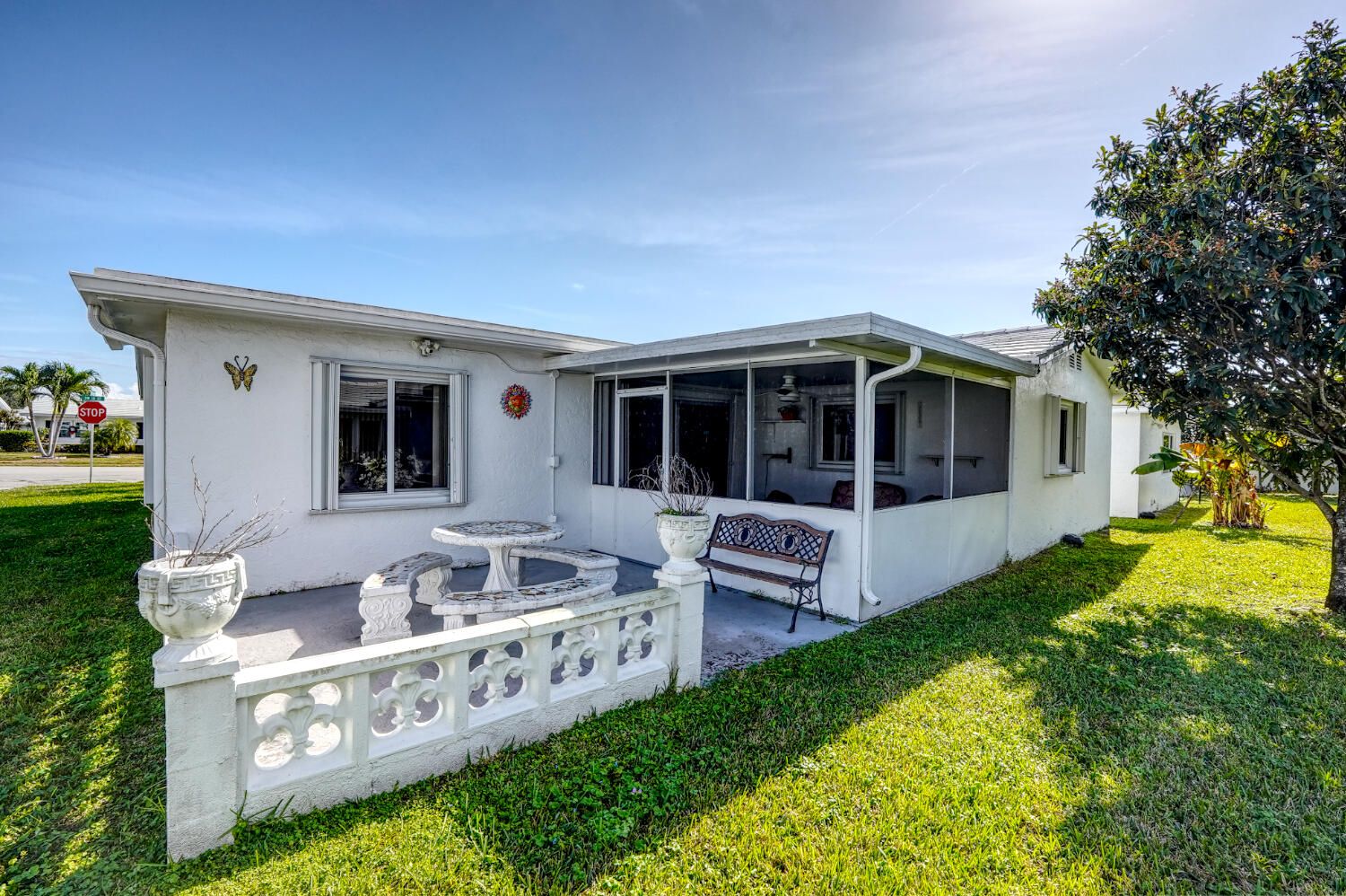 Welcome home to this well-maintained 2-bedroom, 2 bath CBS home featuring a one car garage and inviting outdoor spaces. Enjoy a front patio for relaxing mornings and a screened in back patio ideal for entertaining or unwinding year-round. The home offers a spacious dining room and family room Perfect for full time or seasonal living, the property can be sold fully furnished - just bring your personal belongings. Located in an active community with heated pools, clubhouse, and a golf course, offering a wide variety of social activities. Conveniently situated minutes to major highways, restaurants, shopping, and airports. Easy to show