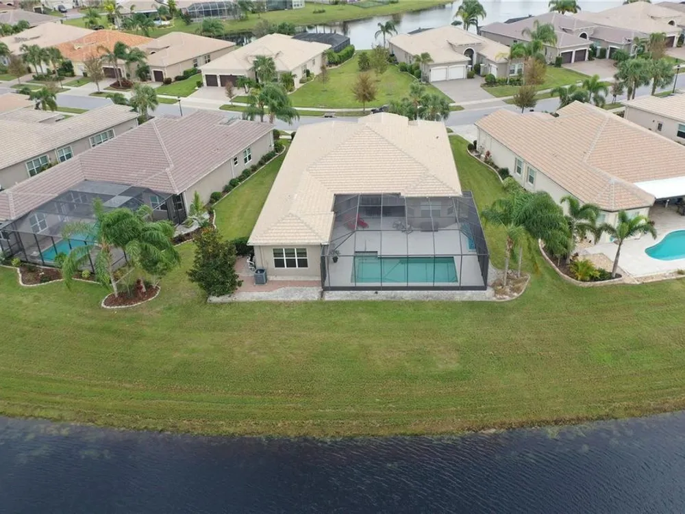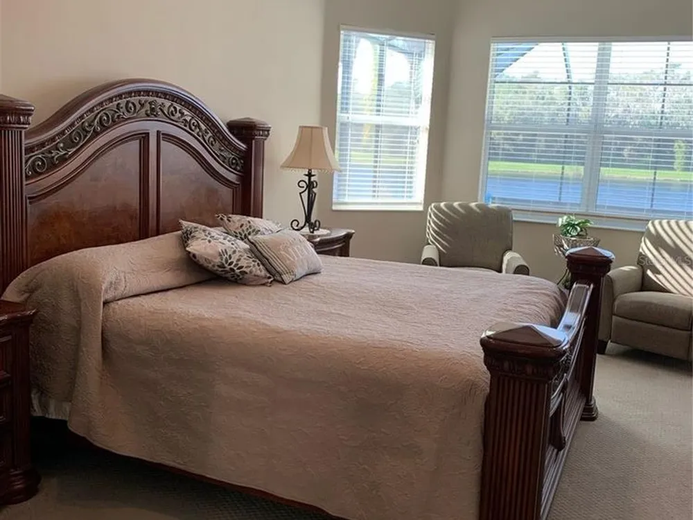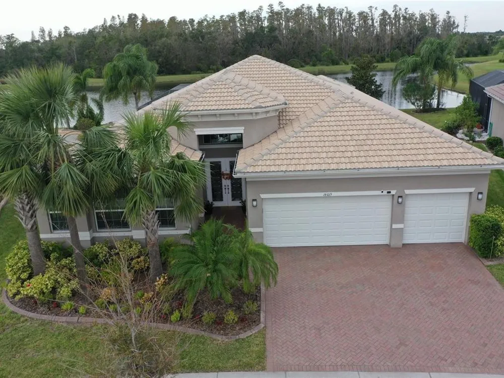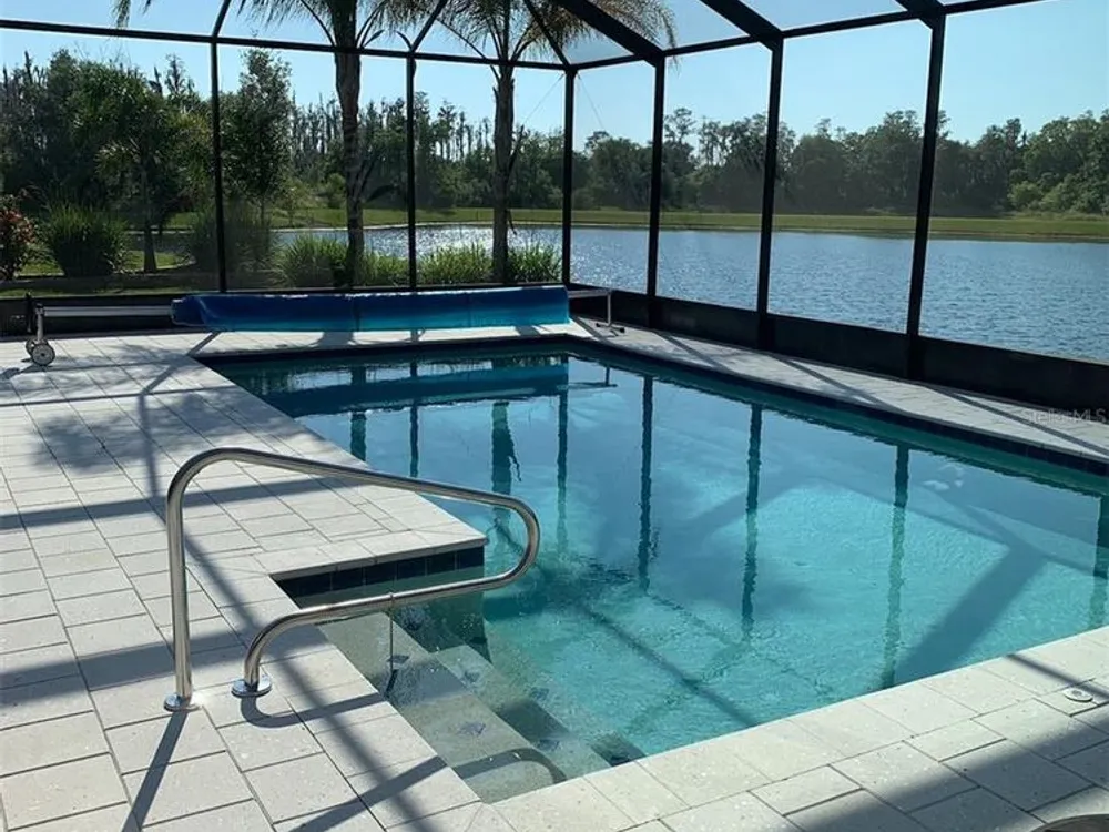 Luxury awaits at Valencia Lakes, one of Florida's best 55+ Resort Style living in the Tampa area, located south of Tampa on I-75. Rarely on the market, this large Charleston Grande model home with oversized Pool and Patio, offers over 3300 square feet of luxury living on a premium lot. Home is available immediately. Bright sun-filled rooms and a GREAT floor plan include three bedrooms, three bath, 3 car garage, a living room, dining room, eat in kitchen, family room, office, (which could be used as 4th bedroom), laundry room, and bonus room for storage or crafts. Many upgrades, including crown molding and tray ceilings, make this home perfect for year-round entertainment. This gently occupied home is available immediately and is move-in ready. As you enter the home, you have the 15’ grand foyer. The living room and dining room areas are nice for holiday gatherings with friends and family. Dual sliding doors open to the patio for further entertaining. The family room and kitchen with a large walk-in pantry, complete the cozy living areas. The master retreat has dual closets with built-ins and a LARGE master en-suite bathroom. Duo sink areas, a nice soaking tub, walk-in shower with bench seating and separate toilet room complete the spa feel of this master bathroom. The second bedroom has a large storage closet and the guest bathroom includes a walk-in shower. The third bedroom can accommodate more overnight guests if needed. The large room at the back of the house can have many uses, including a forth bedroom or office, along with beautiful views of the lake. For convenience, there is a third full bath next to the pool area. The roomy laundry room can accommodate a freezer or extra refrigerator if needed, and the connected bonus store room has many possible uses for storage or crafts. A deep 3 car garage with overhead storage and pull down stairs completes this Grande home. The 14’ x 28’ Salt Water Heated Pool area, offering another 997 square foot of entertainment space, is the bonus for this property. The beautiful sunsets and lake with the preserve across the water, make for amazing views! The lake is stocked with bass for some casual fishing out the back of the house. Retirement resort living at its finest with all the amenities and facilities offered at Valencia Lakes, which includes an amazing 40,000 sq. ft. clubhouse, offering entertainment show, dances, parties, and numerous clubs. This golf cart community also includes storage for your RV/Boats, a dog park and possible onsite Bistro. A large walking trail will keep you fit along with several pool areas. See the attachment for all Valencia Lakes has available to you. Make your appointment to see this spectacular home today.