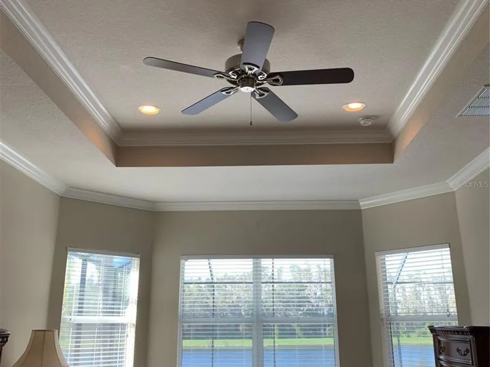 - Ceiling Fan(s), Coffered Ceiling(s), Crown Molding, Eat-in Kitchen, High Ceilings, Kitchen/Family Room Combo, Open Floorplan, Main Level Primary, Solid-Wood Cabinets, Stone Counters, Thermostat, Tray Ceiling(s), Vaulted Ceiling(s), Walk-In Closet(s), Window Treatments