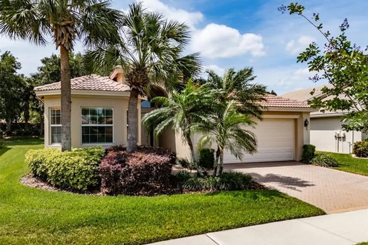 This beautifully maintained 1880 SF GL Homes FLORENCE model is Turn-Key and offering the perfect blend of spacious, thoughtfully designed living and the carefree lifestyle Valencia Lakes is celebrated for. A 2022 Carrier HVAC system, water softener, and meticulous upkeep throughout-this home is move-in ready — just unpack your personal items and start living your idyllic life today. From the moment you step through the impressive 13'4" soaring foyer, you'll feel the difference. The heart of the home is a well-appointed kitchen featuring granite countertops, classic tile backsplash, GE stainless steel appliances, dove white solid maple cabinetry, with custom sliding shelves, a large pantry, and a bar-height counter for casual dining. A 5-panel bay window basks the dinette in natural light and creates a delightful room for your morning routine while the kitchen island overlooks the expansive great room — allowing the Chef to stay engaged in the conversation. The great room stretches a generous 15'10" x 17'6" and opens through 12' sliders to a screened and covered lanai spanning nearly 27 feet. The lanai is the perfect space for relaxing outside, entertaining, or simply bringing the outdoors, indoors. The adjacent 13'4" x 11'10" dining room seats eight comfortably, making it a natural gathering place for friends and family. Located at the southern end of the house, the primary suite is a true retreat. Measuring 13' x 17'6" and featuring an octagonal tray ceiling and 8 ‘sliders leading to the lanai, the primary bedroom will be your oasis. With two large, customized walk-in closets and a spa-inspired ensuite bathroom featuring a large walk-in tiled shower with bench, a garden tub, dual separated vanities with granite counters, a linen closet, and a private water closet for the commode. At the northern end of the home, the guest bedroom is a standout, bathed in natural light from a 3-panel bay window beneath a10' ceiling, offering your guests a space that will make them feel special. The adjacent guest bath includes a tub/shower combination, granite banjo countertop, and two linen closets just outside the door for ample storage. The 3rd bedroom features double French-doors, a ceiling fan and walk-in closet - currently fashioned as den; how might you use this space? The laundry room features a GE washer & dryer, utility sink, and overhead storage. The best part: the HOA takes care of it all! Lawn maintenance, irrigation, cable with premium channels, high-speed internet, ADT security, countless amenities — all included. Add 24/7 gated entry and you have true lock-and-leave freedom. The community of Valencia Lakes elevates your lifestyle with a 40,000SF Clubhouse offering social events, dances, and activities. Amenities include 7 pickleball courts, 6 lighted USTA Har-Tru tennis courts, the area’s best softball field, half-court basketball, bocce, shuffleboard, card & poker rooms, billiards, & an extensive arts and crafts studio with kilns. The 24/7-5,000SF State of the Heart Fitness center offers a wide variety of instructor led classes. Residents also enjoy a resort-style beach entry pool, resistance & lap pools, hot tub, saunas, & steam rooms. Enjoy on-site dining at Mattison’s Café or indulge in the on-site spa services, including an Esthetician and Massage Therapists. This is more than just a home—it’s a move-in ready opportunity to enjoy a vibrant, maintenance-friendly lifestyle where everything you desire is already in place.SEIZE THE DAY