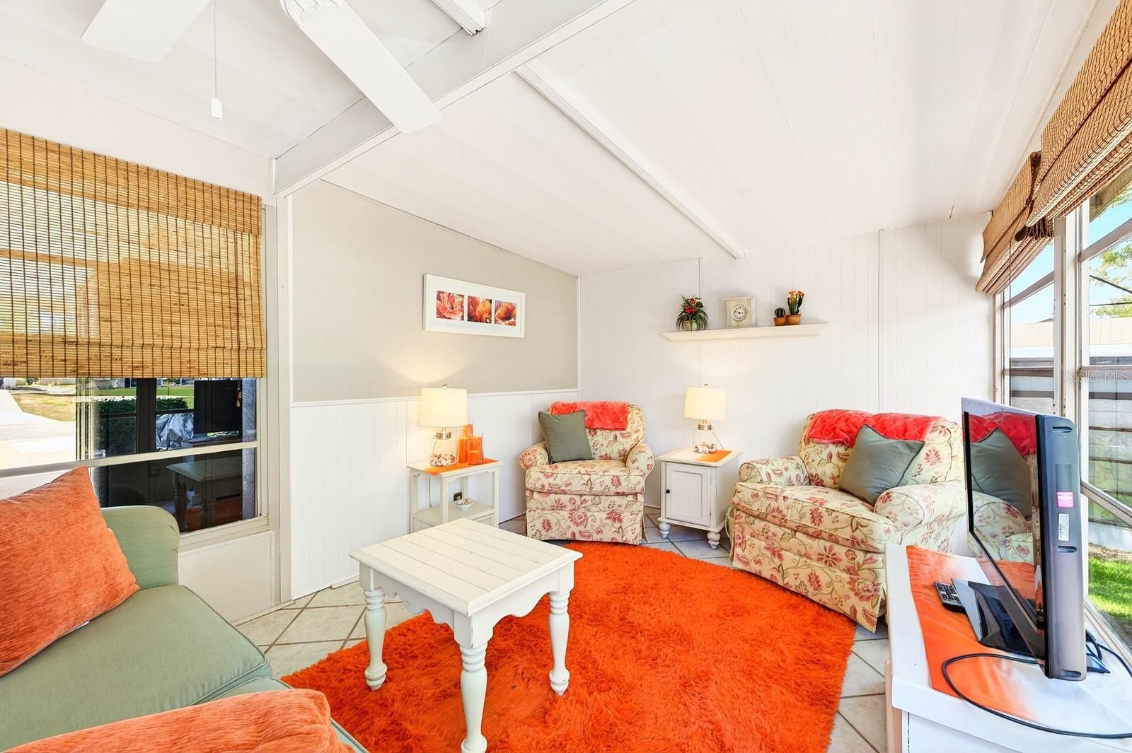 One or more photo(s) has been virtually staged. Welcome to easy Florida living with GOLF COURSE VIEWS you will enjoy every single day! Perfectly positioned on the 14th green in the desirable Orange Blossom Gardens section of The Villages, this adorable 2-bedroom, 2-bath + Florida Room home delivers a seamless layout, convenience, and a lifestyle that’s hard to beat. Recent UPDATES are already in place – starting with the EXTERIOR POST & SOLAR LAMP LIGHT (2026) to welcome you home, followed by a full home RE-PIPE (2022) for added peace of mind. In (2020), the home saw major improvements including a NEW A/C and a beautifully upgraded kitchen featuring smudge-proof LG STAINLESS STEEL APPLIANCES. Double-pane windows were installed in (2018), enhancing energy efficiency and natural light throughout. Inside, you will be delighted to find a bright, open flow from the living and dining areas into the kitchen, ideal for everyday living or entertaining family and friends. The kitchen stands out with a vaulted ceiling, solid wood cabinetry, tiled backsplash, pantry storage, a built-in desk, and a cozy breakfast nook. UPDATED LIGHTING and ceiling fans, along with CUSTOM DOUBLE-HUNG BLINDS, add a polished touch throughout the home. The FLORIDA ROOM (under air!) provides valuable flexible space – perfect for a home office, hobby room, or additional lounge area. The PRIMARY SUITE offers a WALK-IN CLOSET and private en-suite bath, while the second bedroom is conveniently located near a full guest bath – ideal for visitors. Step outside and take in the GOLF COURSE FRONTAGE with peaceful views of the 14th GREEN, creating a relaxing backdrop for your morning coffee or evening unwind. ****Some furnishings may be included, and a ****2014 Yamaha electric golf cart is available to convey, making it even easier to start enjoying The Villages lifestyle right away! Located just around the corner from the Hilltop Pool & Recreation Center, and close to shopping, dining, UF Health, BJ’s Wholesale, and nearby resorts and hotels, this home puts everything you need within easy reach. Residents of The Villages enjoy access to an unmatched array of amenities including golf, pools, recreation centers, entertainment, and social activities. Orange Blossom Gardens is ready to welcome you home – schedule your tour today and come see what makes this one so special!
