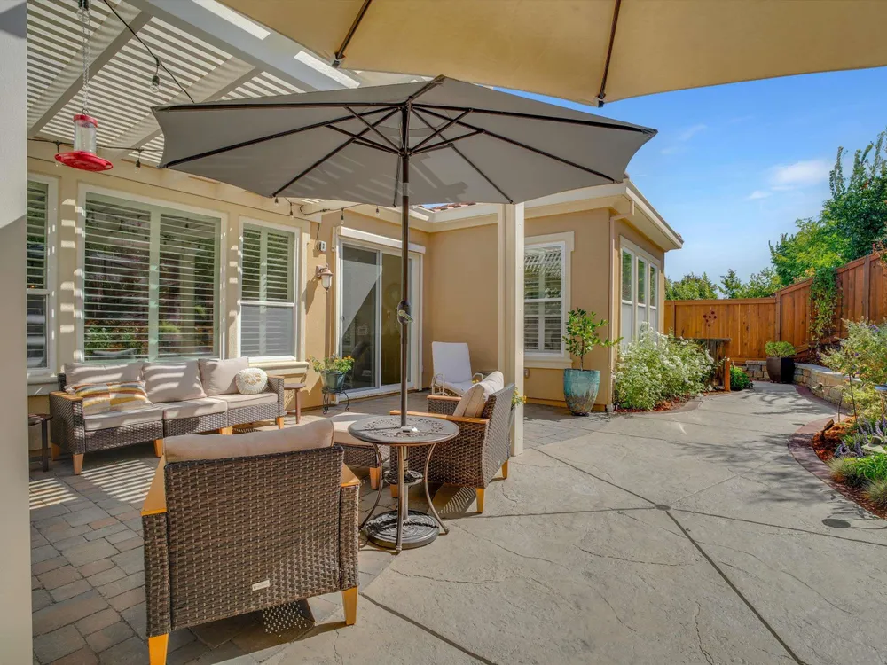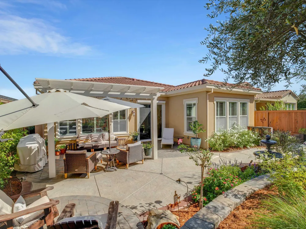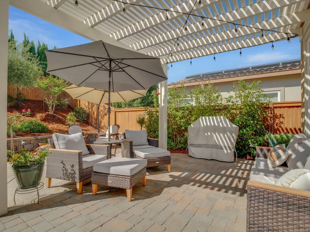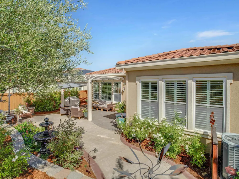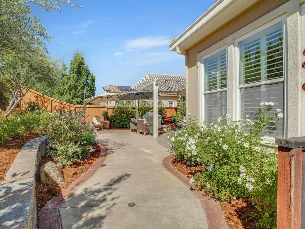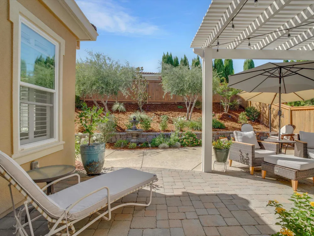 Enjoy the lifestyle you deserve in this beautifully maintained home located in Trilogy of the Vineyards, a 55+ community in charming Brentwood. This home features elegant plantation shutters, an updated kitchen with a custom hood, under cabinet lighting, beautiful granite counters, stainless steel appliances and stylish gold-tone hardware. Step outside to a private backyard designed for relaxation and entertaining - complete with new hardscape, a pergola with lighting and a serene water fountain. This peaceful outdoor setting makes it an ideal space for morning coffee. The garage offers added convenience with custom overhead shelving and a 220V outlet ready for your EV charger. Solar is included, providing energy efficiency and savings year round. This amazing community has top tier amenities including an amazing pool, fitness center, clubhouse activities, pickleball/tennis courts, spa and a restaurant. All of this designed for the ultimate resort living experience.