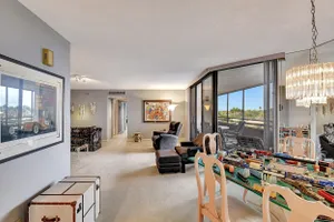 EXCEPTIONAL AND BEAUTIFUL light bright 2 bedroom 2 bath condo with gorgeous views on the 6th floor. Only a few steps to elevator and covered parking under bldg. Walking distance to main clubhouse or to the satellite club house and pool. furniture available.