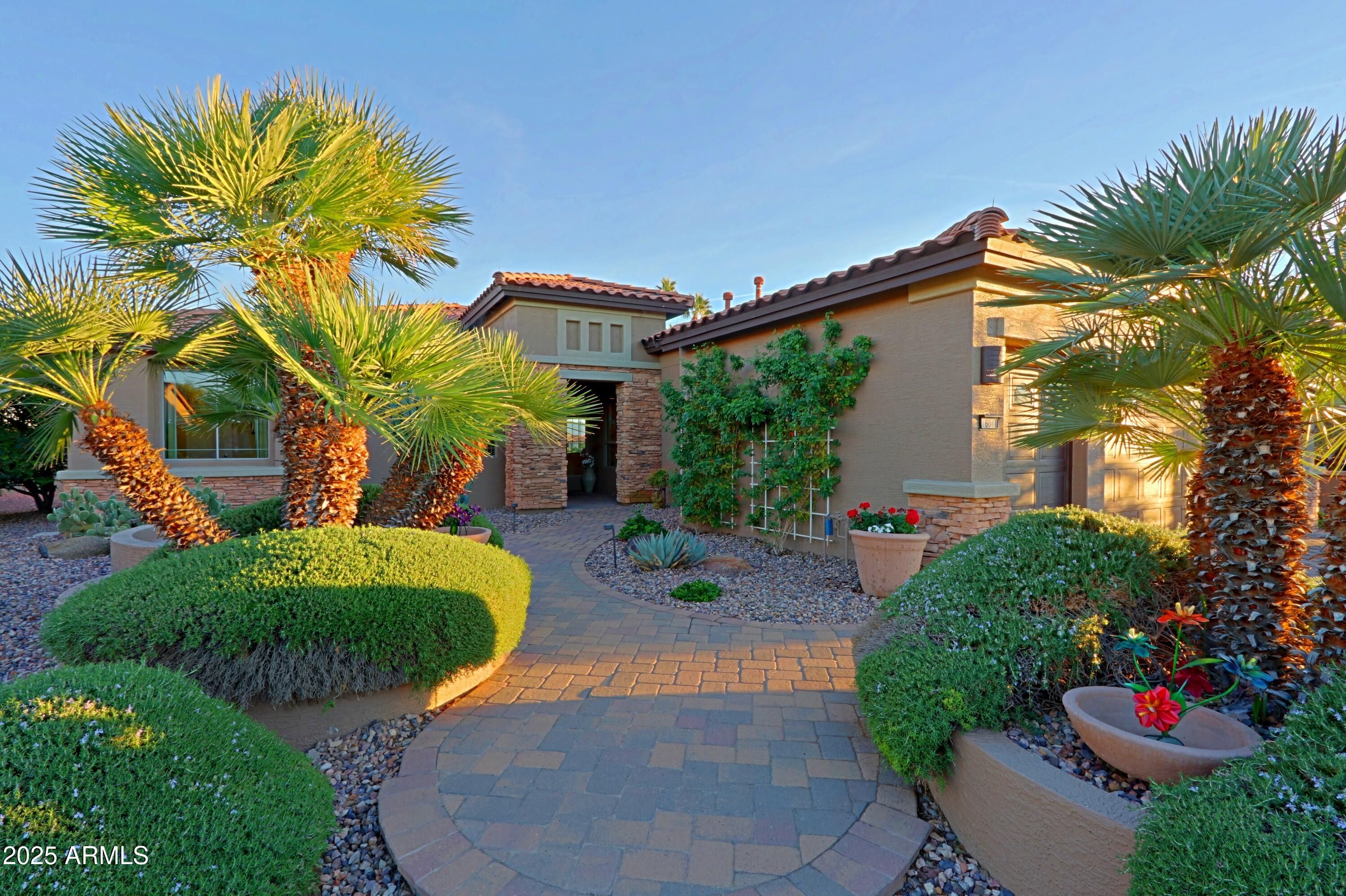 EXCEPTIONAL GOLF COURSE PANORAMA! The OUTDOOR Living Space will make you want to own this home! Extended Patio with Built-in BBQ Island, Expansive South Facing Golf & Mountain Views!!! This STUNNING Sienna Model has what you're looking for .... GREAT ROOM with perfect room sizes. Many Designer Upgrades. Great Room includes a Media Wall, High End Kitchen with Island, Beverage Cooler, R/O Water System, NEW Dishwasher, & Eating nook add to the versatility of this home. Den/3rd Bdrm w/Built-ins, Master Bedroom has Spacious Master Bath with large separate sinks, Stunning Custom Tiled Walk-in Shower, You will be Astonished by the HUGE Walk-in Custom Closet. A Golf Cart Garage, Beautiful Paver Driveway, Rear Patio Posts Removed. FURNISHINGS are gorgeous and available on a separate Bill of Sale.