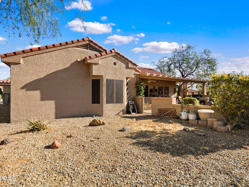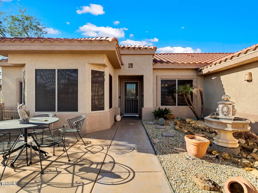 Beautiful Sun City Grand home with room to enjoy. This 3 bedroom , 2 bath home is on a large lot with a welcoming front courtyard and a spacious back patio to enjoy a lovely Arizona evening with your favorite beverage in hand. There is a 2 car garage and an additional 3rd bay for a golf cart. Features of this home also include a great room, formal dining area as well as a large eat in kitchen. Sun City is known for it's great golf courses, walkable paths around lakes and community centers with various activities to enjoy.