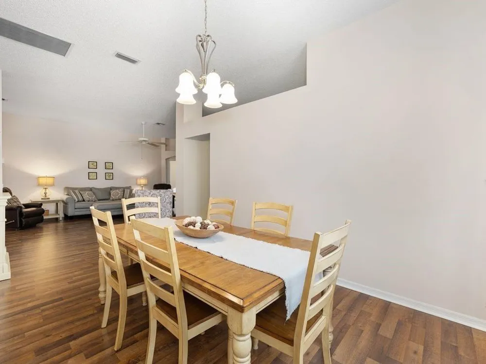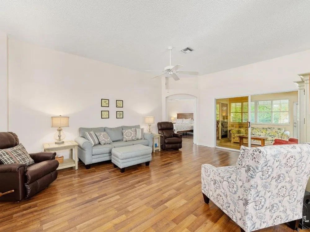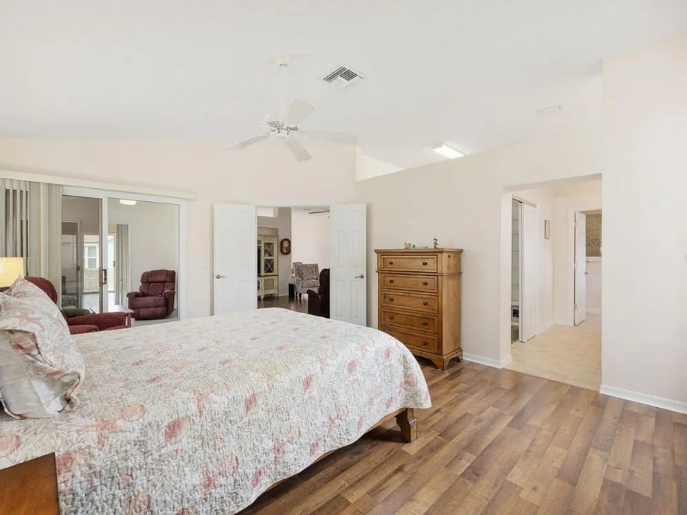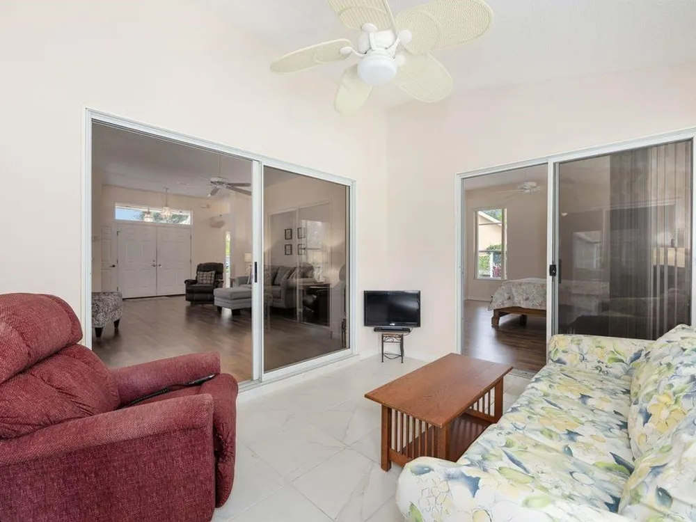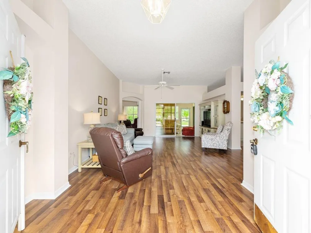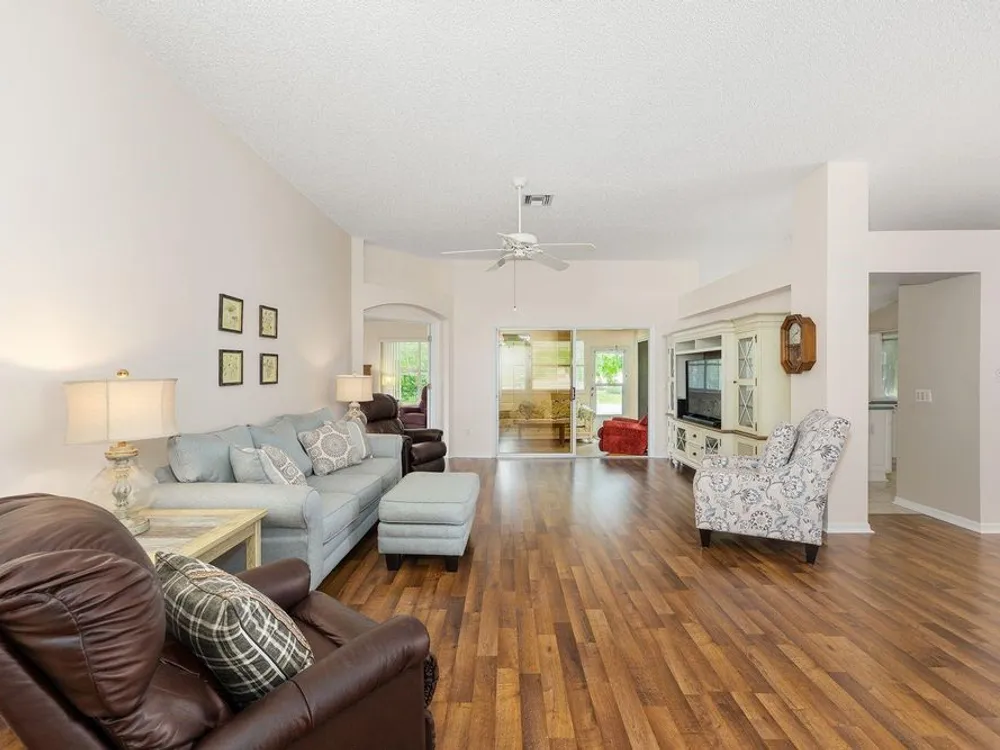 Just bring your suitcase! This home is nicely Furnished and comes with a Golf Cart. 2 Spacious Bedrooms. Primary has a huge walk-in Closet and a newer Tile Shower with Double Vanity. Large Eat-in Kitchen and a separate Dining Room with Table and 6 Chairs for entertaining. Beautiful Landscaping with huge covered screened Lanai and no neighbors in back. All cookware, dishes and linens are in place to get you started in this adventure! So much to do and see from this location by golf cart! Enjoy retirement in this 2 bedroom / 2 bath home with spacious covered lanai off the eat-in kitchen. So much at your fingertips from golfing, nightly entertainment in Spanish Springs Town Center and Lake Sumter Landing. Both with restaurants and shopping. Regional recreation centers, activity pools, family pool, multi-purpose trails for golf carts - bike - exercising, etc.