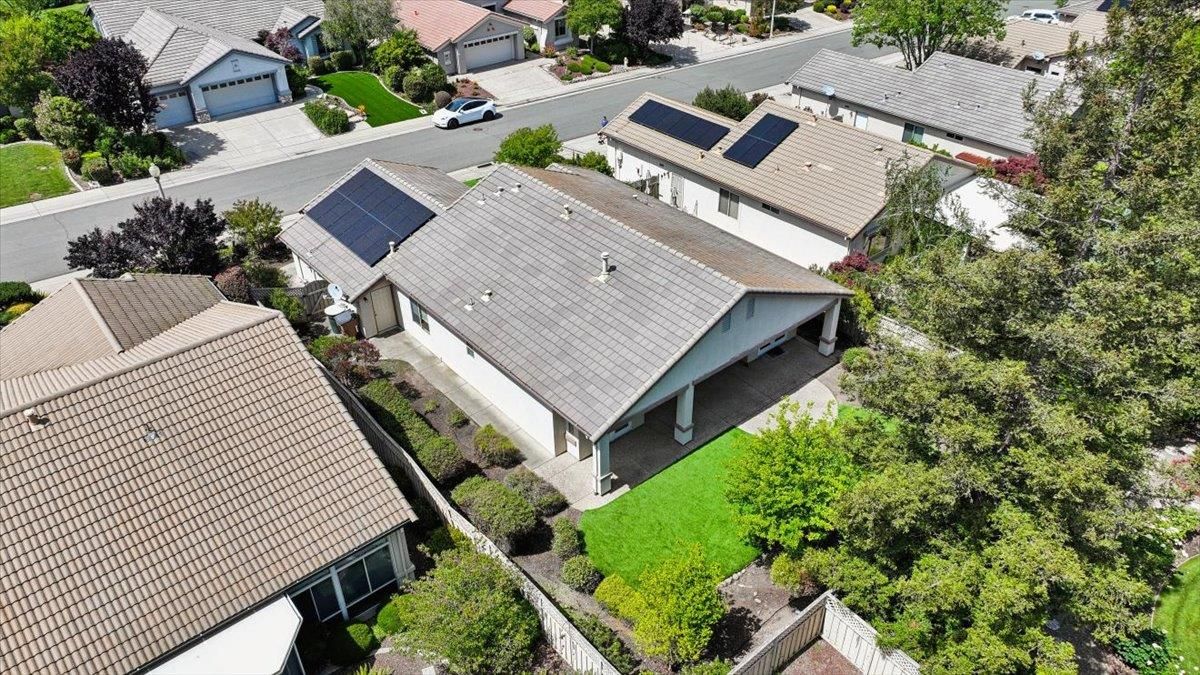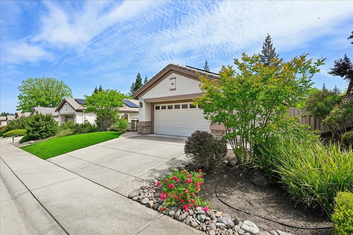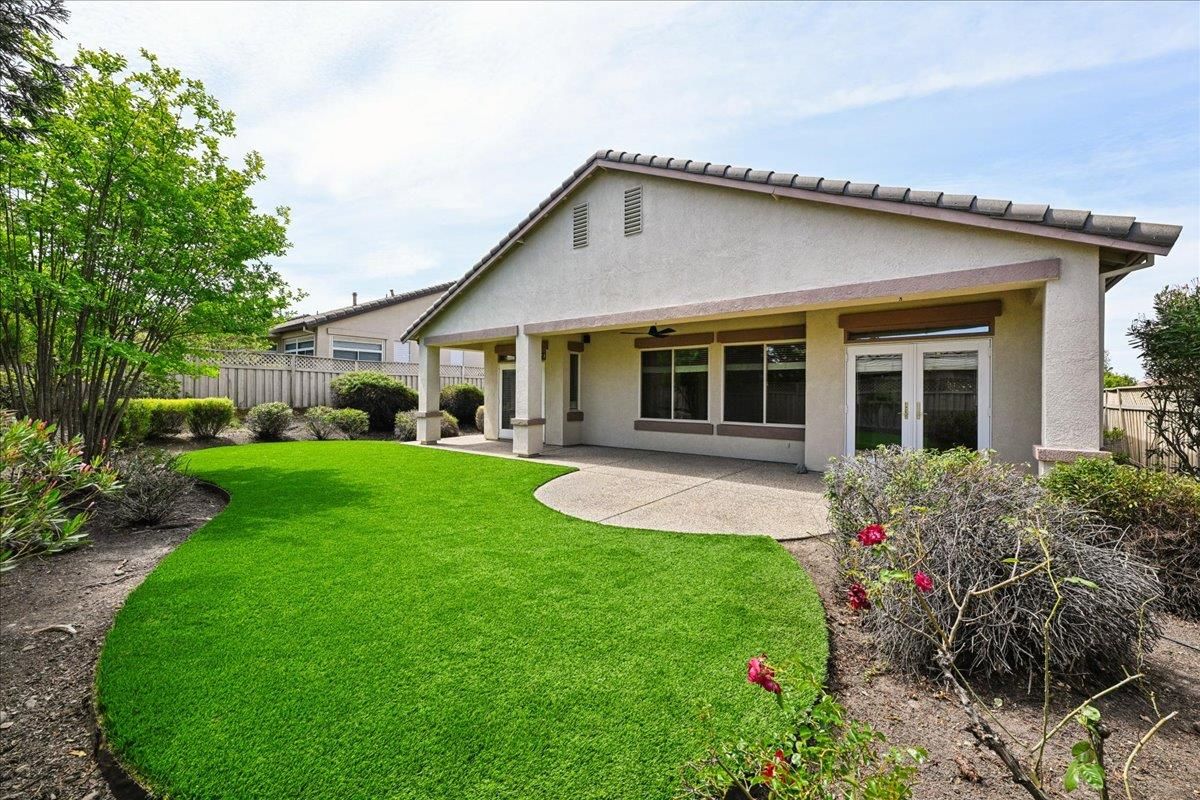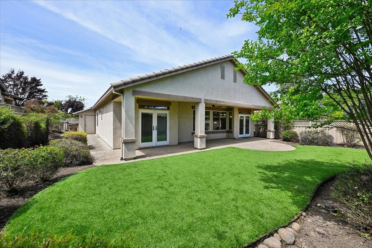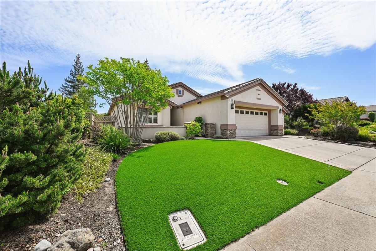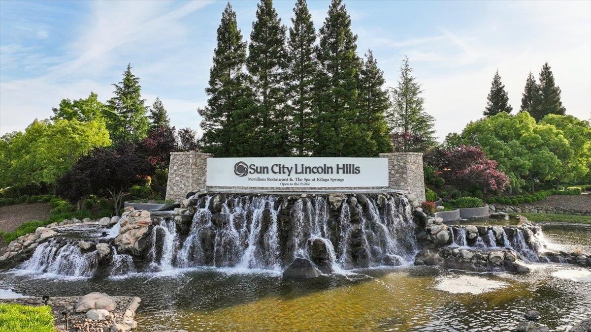 Located in Sun City Lincoln Hills, this well-maintained Pine Hill floorplan home offers a great layout, lots of natural light, and access to all the amenities this sought-after Del Webb 55+ community is known for. Out front, you'll find a lovely courtyard that creates a welcoming entry and is the perfect spot to enjoy your morning coffee and newspaper. Inside, you're welcomed by a large tiled entry that opens to a bright, open living space with 9-foot ceilings throughout. The living room features a beautiful fireplace with built-in cabinets and plenty of room to relax or gather. The kitchen is open to both the dining area and living room, with an breakfast counter that works well for everyday living or entertaining. French doors from both the dining room and the primary bedroom lead out to the backyard. The outdoor space is nicely set up with artificial turf for easy maintenance and a large covered patio that's perfect for enjoying the outdoors year-round. The oversized 2.5-car garage includes a golf cart space with plug-in. You will love the 4.2 kW DC Solar array with 12 solar panels to help offset your energy utility costs! Pest inspection has already been completed, repaired, and cleared. All this with association golf course, community activity/classes/clubs calendar, restaurant, TWO fitness centers with indoor and outdoor pools, hot tubs, exercise areas, group exercise rooms, an upstairs walking track, pilates studio and more! Don't wait!