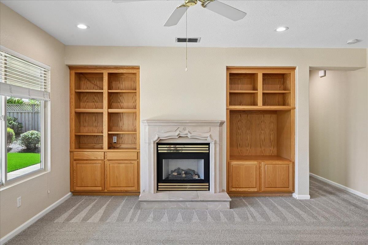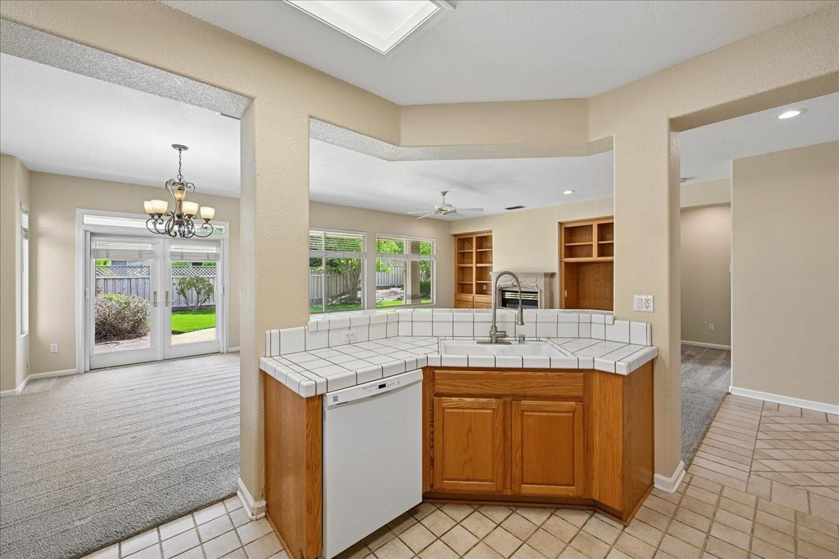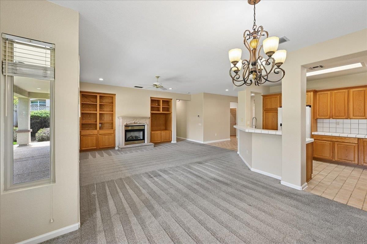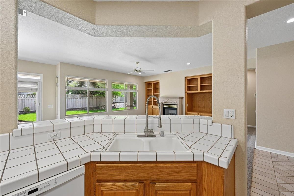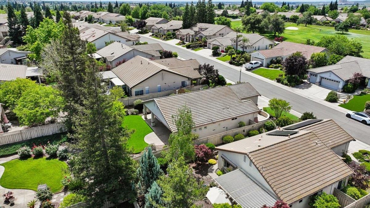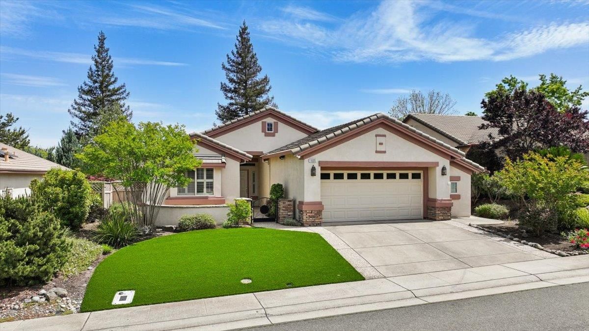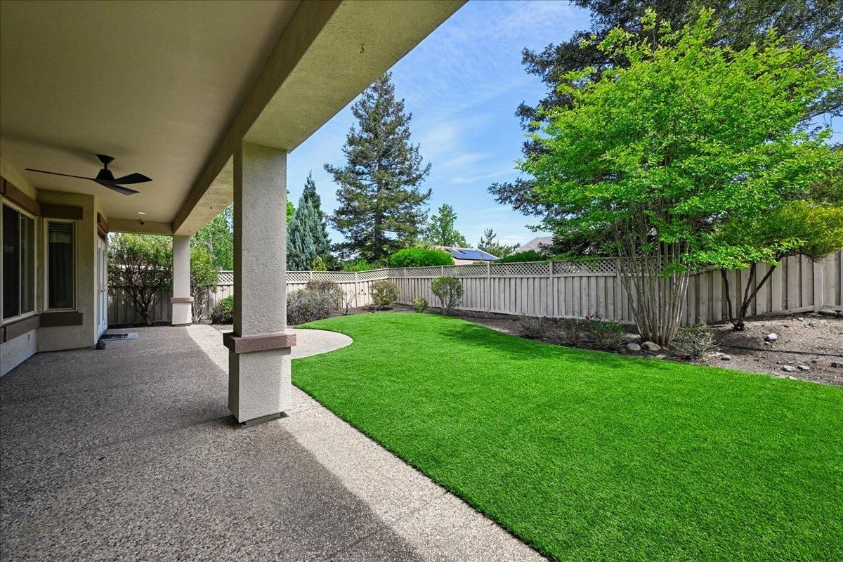 Located in Sun City Lincoln Hills, this well-maintained Pine Hill floorplan home offers a great layout, lots of natural light, and access to all the amenities this sought-after Del Webb 55+ community is known for. Out front, you'll find a lovely courtyard that creates a welcoming entry and is the perfect spot to enjoy your morning coffee and newspaper. Inside, you're welcomed by a large tiled entry that opens to a bright, open living space with 9-foot ceilings throughout. The living room features a beautiful fireplace with built-in cabinets and plenty of room to relax or gather. The kitchen is open to both the dining area and living room, with an breakfast counter that works well for everyday living or entertaining. French doors from both the dining room and the primary bedroom lead out to the backyard. The outdoor space is nicely set up with artificial turf for easy maintenance and a large covered patio that's perfect for enjoying the outdoors year-round. The oversized 2.5-car garage includes a golf cart space with plug-in. You will love the 4.2 kW DC Solar array with 12 solar panels to help offset your energy utility costs! Pest inspection has already been completed, repaired, and cleared. All this with association golf course, community activity/classes/clubs calendar, restaurant, TWO fitness centers with indoor and outdoor pools, hot tubs, exercise areas, group exercise rooms, an upstairs walking track, pilates studio and more! Don't wait!