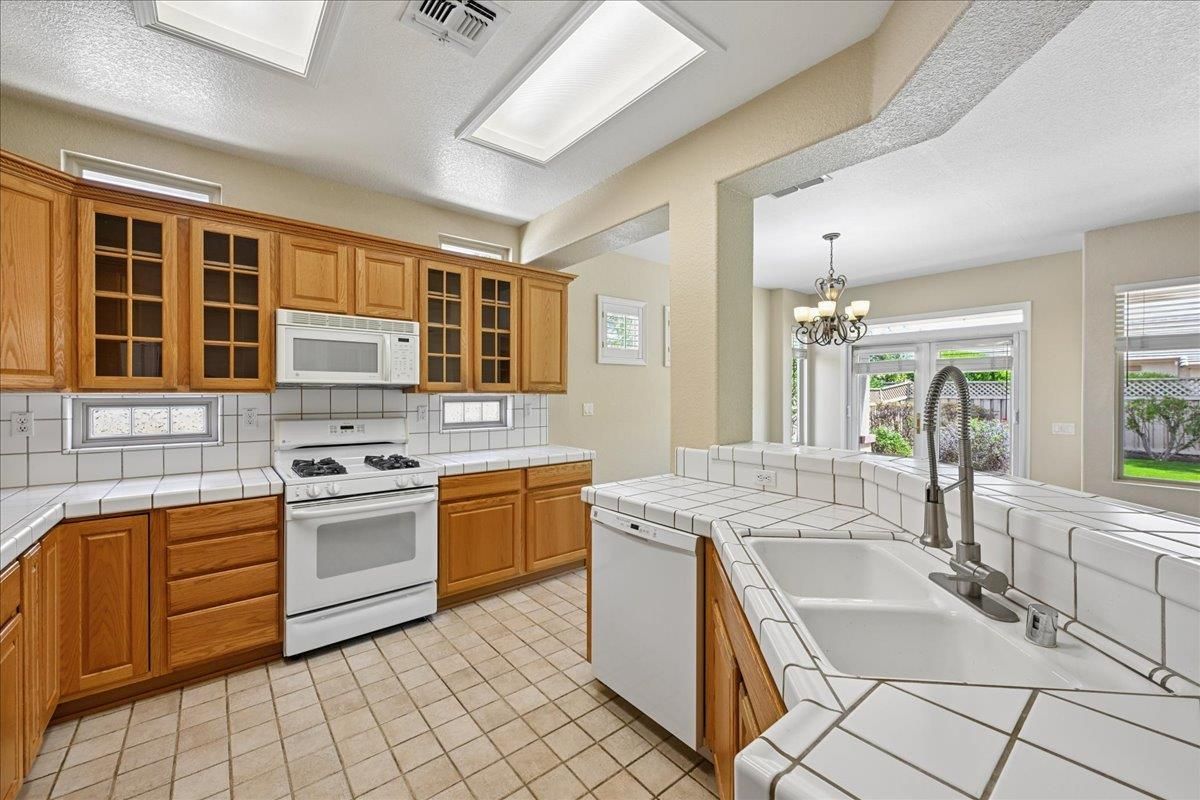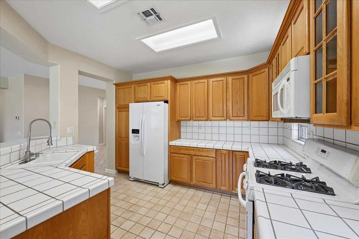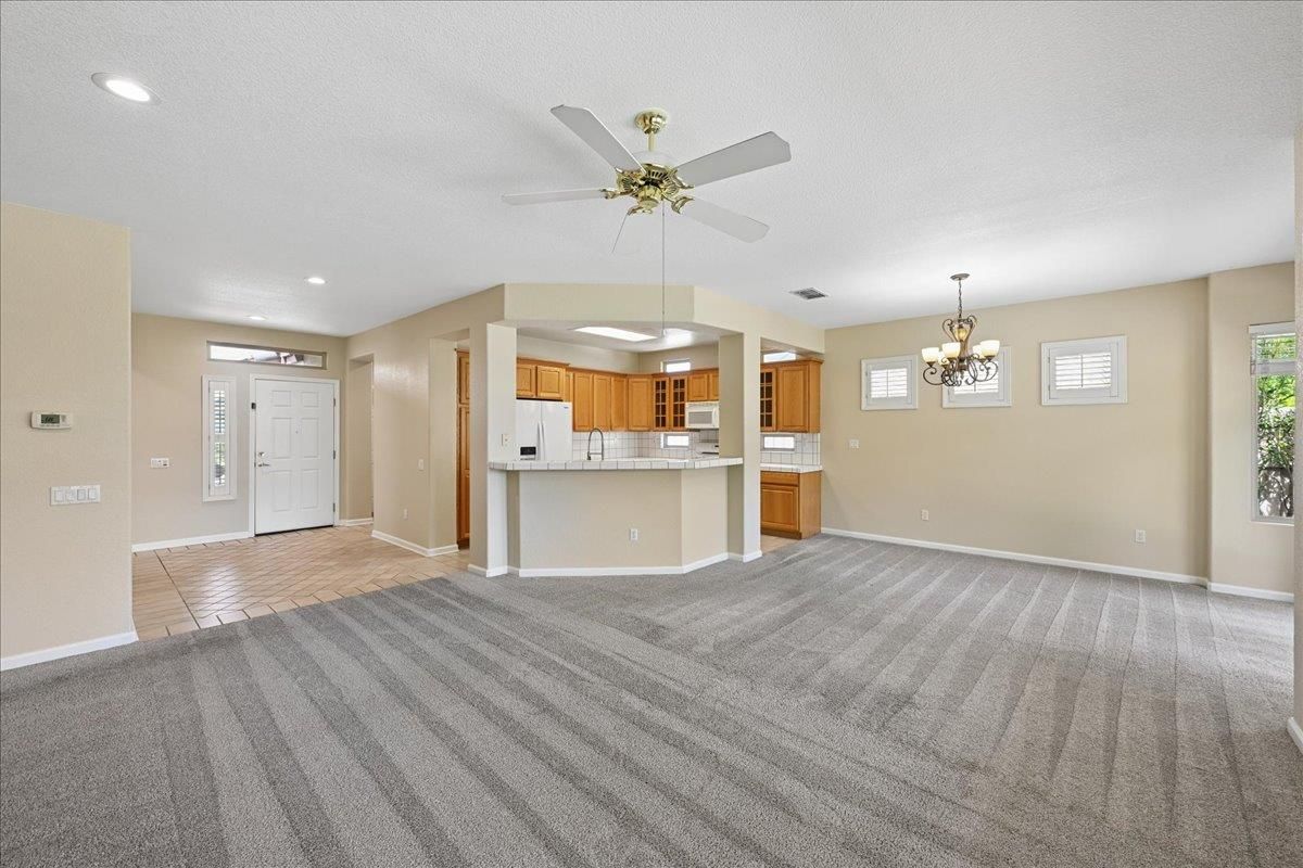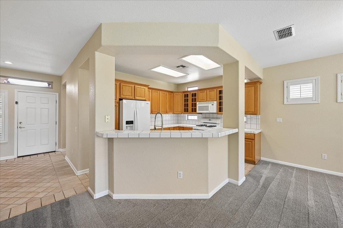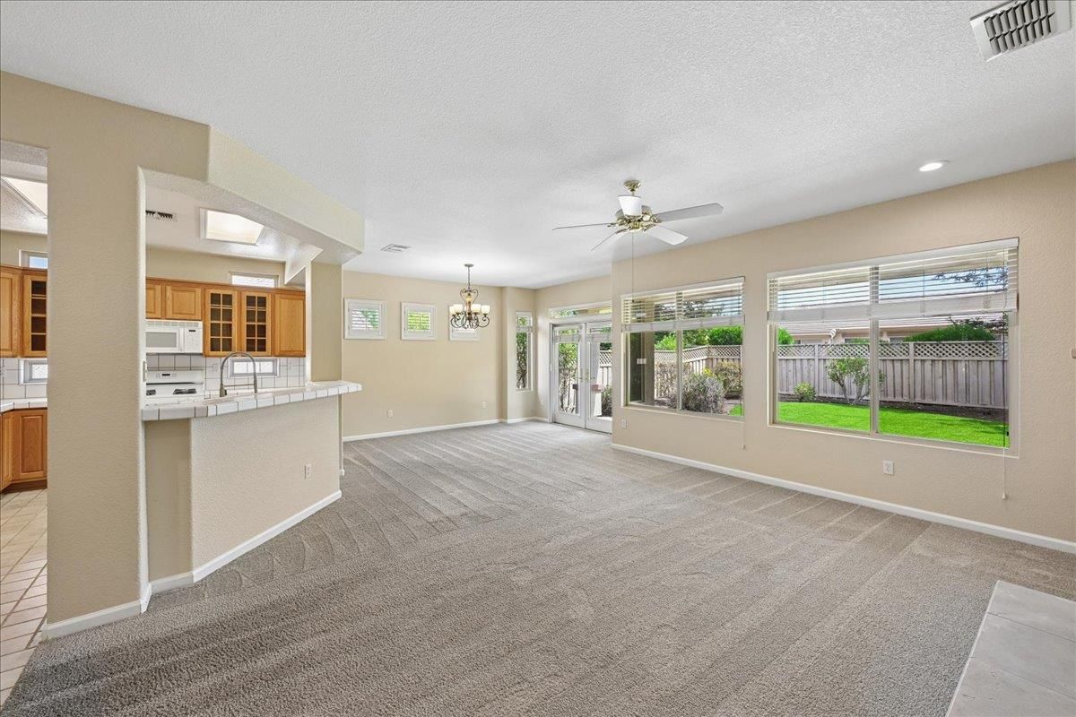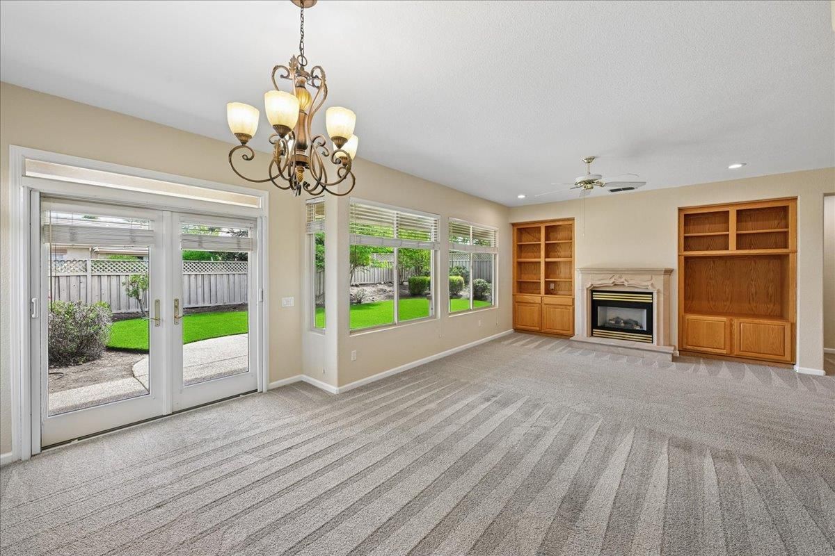Located in Sun City Lincoln Hills, this well-maintained Pine Hill floorplan home offers a great layout, lots of natural light, and access to all the amenities this sought-after Del Webb 55+ community is known for. Out front, you'll find a lovely courtyard that creates a welcoming entry and is the perfect spot to enjoy your morning coffee and newspaper. Inside, you're welcomed by a large tiled entry that opens to a bright, open living space with 9-foot ceilings throughout. The living room features a beautiful fireplace with built-in cabinets and plenty of room to relax or gather. The kitchen is open to both the dining area and living room, with an breakfast counter that works well for everyday living or entertaining. French doors from both the dining room and the primary bedroom lead out to the backyard. The outdoor space is nicely set up with artificial turf for easy maintenance and a large covered patio that's perfect for enjoying the outdoors year-round. The oversized 2.5-car garage includes a golf cart space with plug-in. You will love the 4.2 kW DC Solar array with 12 solar panels to help offset your energy utility costs! Pest inspection has already been completed, repaired, and cleared. All this with association golf course, community activity/classes/clubs calendar, restaurant, TWO fitness centers with indoor and outdoor pools, hot tubs, exercise areas, group exercise rooms, an upstairs walking track, pilates studio and more! Don't wait!