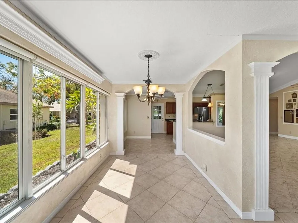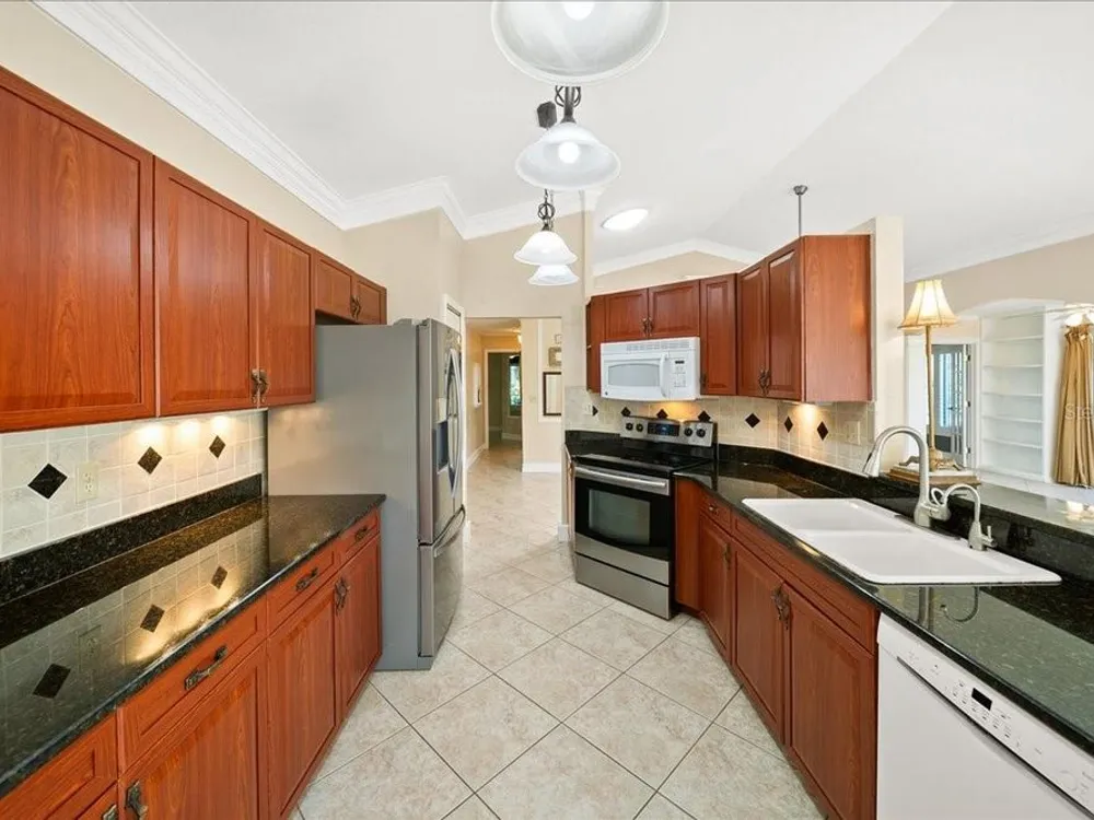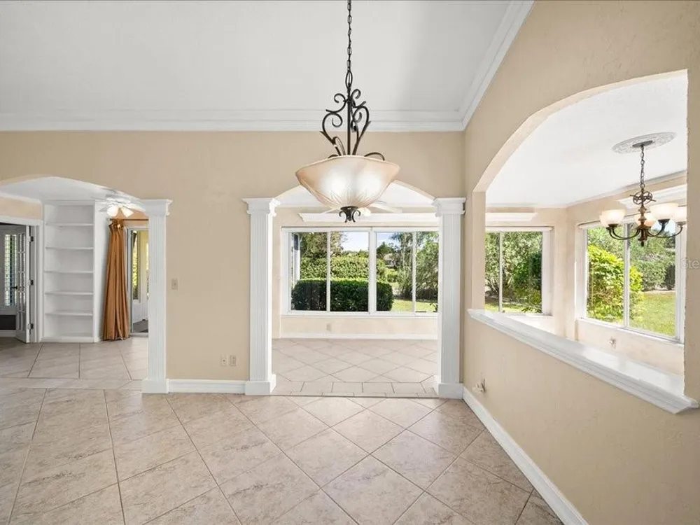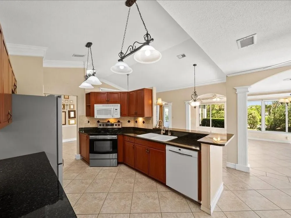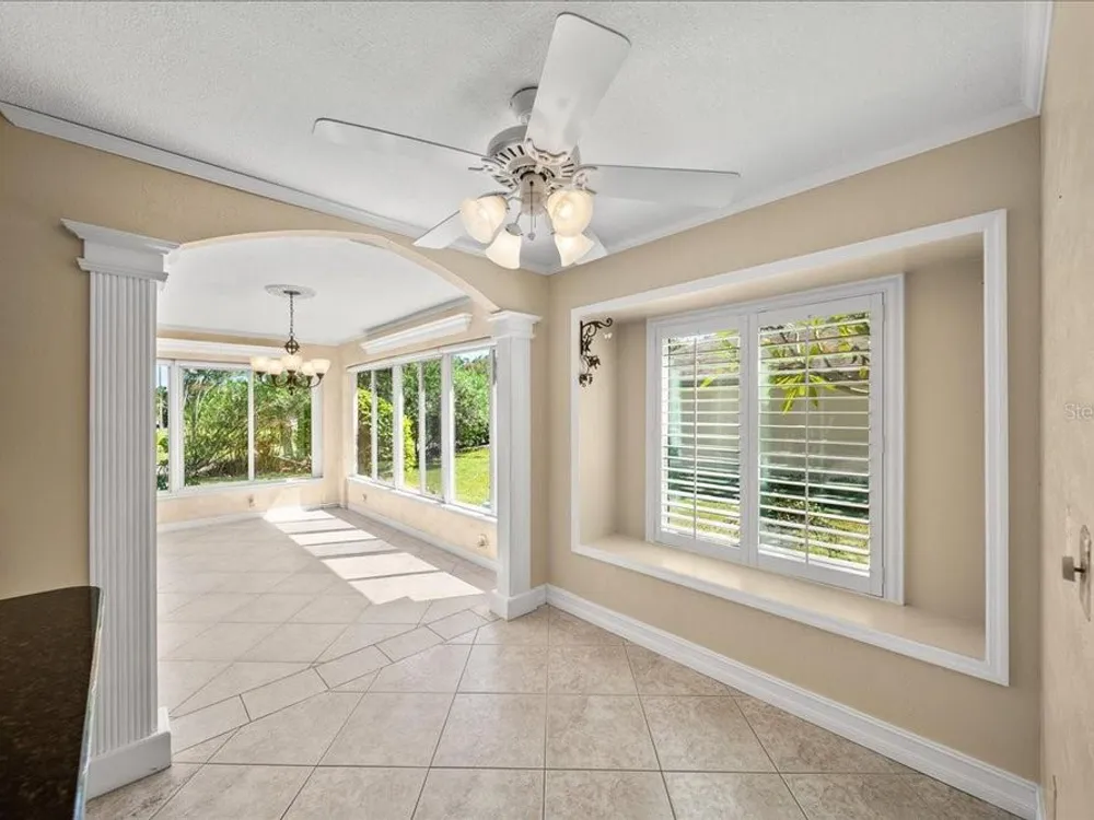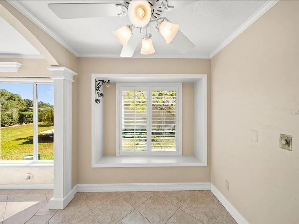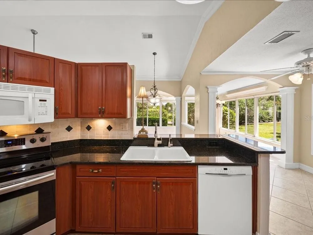 Welcome to 1605 Laughton Place, a beautifully maintained home nestled in the highly sought-after gated community of Kings Point at Sun City Center! This vibrant home combines classic Florida style with modern comfort, offering open living spaces, rich architectural detail, and a bright, welcoming atmosphere throughout. Step inside to find crown molding, tray ceilings, and ceramic tile flooring that flows seamlessly through the main living areas. Plantation shutters and ample natural light enhance the home’s airy elegance. The open-concept design features French doors, arched entryways, and a thoughtful split-bedroom layout that ensures privacy and versatility. The kitchen is beautifully appointed with granite countertops, warm wood cabinetry, stainless steel appliances, and a convenient breakfast bar overlooking the dining and living areas. Whether you’re hosting friends or enjoying a quiet evening at home, this layout is perfect for both entertaining and everyday living. The spacious primary suite offers a peaceful retreat with high ceilings, a walk-in closet, and a luxurious ensuite bath featuring dual glass vessel sinks, granite counters, and custom cabinetry. A versatile den with French doors provides the perfect space for a home office, media room, or cozy reading nook. Outside, you’ll find a quiet cul-de-sac setting surrounded by lush landscaping and tropical charm, the perfect backdrop for morning coffee or evening relaxation. Living in Kings Point Sun City Center means access to one of Florida’s premier 55+ active lifestyle communities. Residents enjoy two beautiful clubhouses with heated indoor and outdoor pools, fitness centers, golf courses, tennis and pickleball courts, restaurants, a theater, and more than 200 clubs and social groups. Golf carts are the preferred mode of travel here, making it easy to visit friends, attend classes, or explore the community’s resort-style amenities.