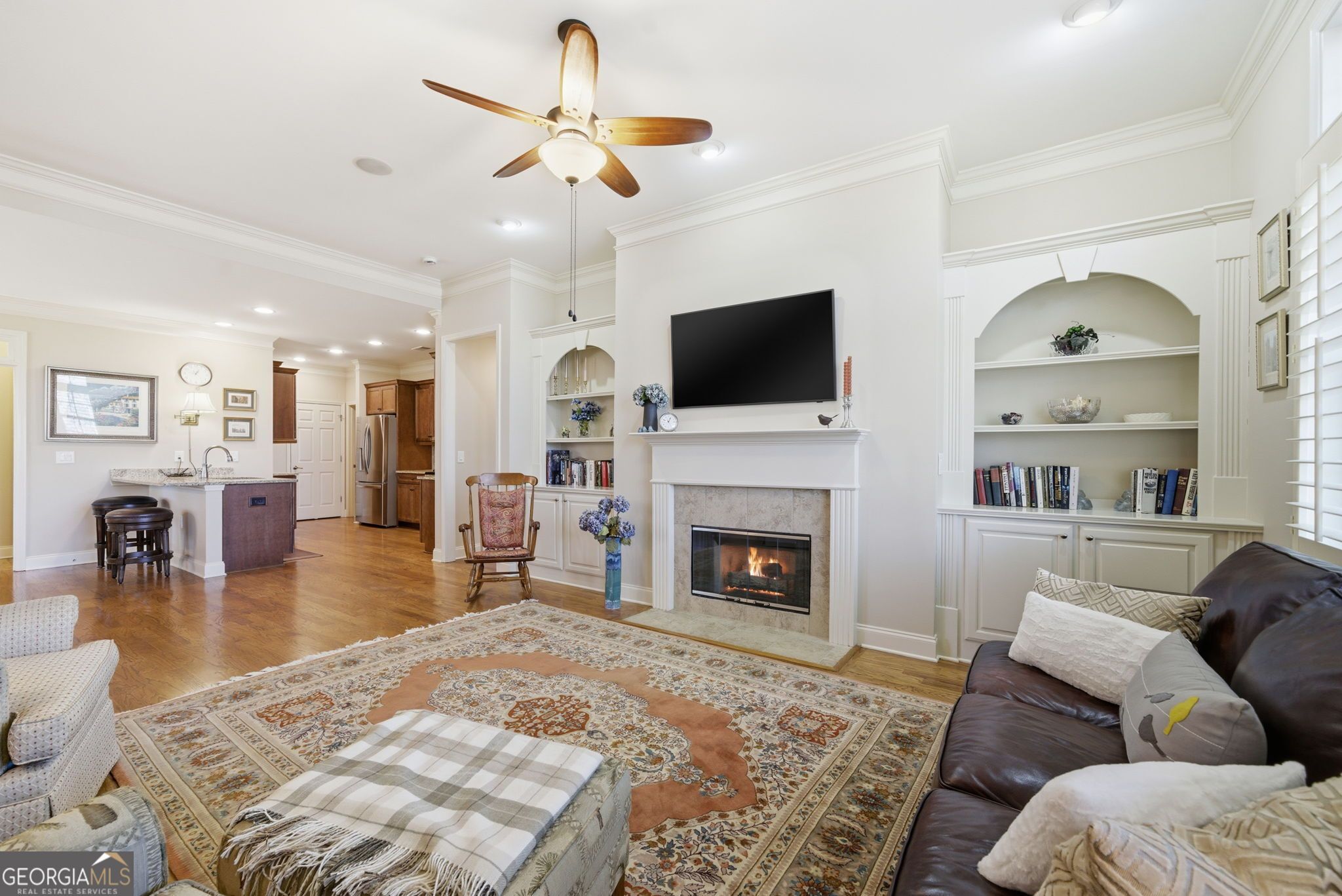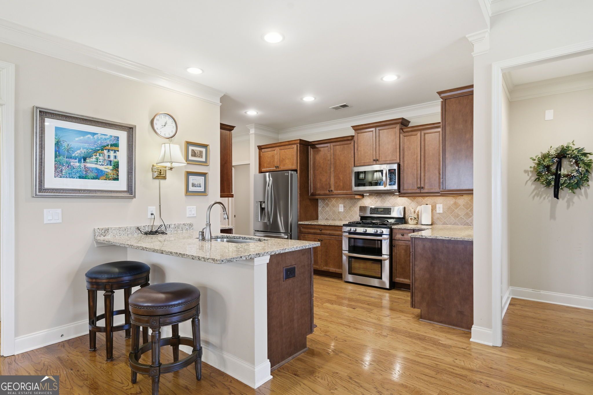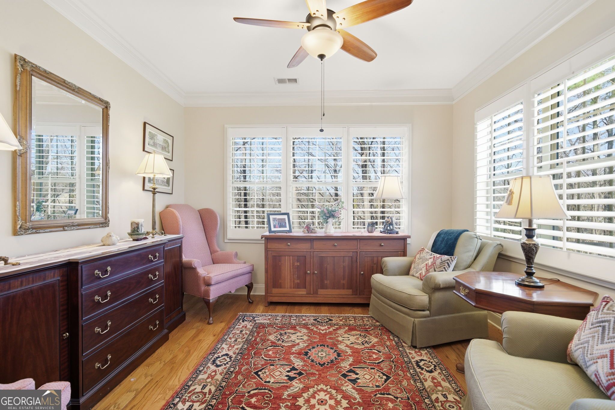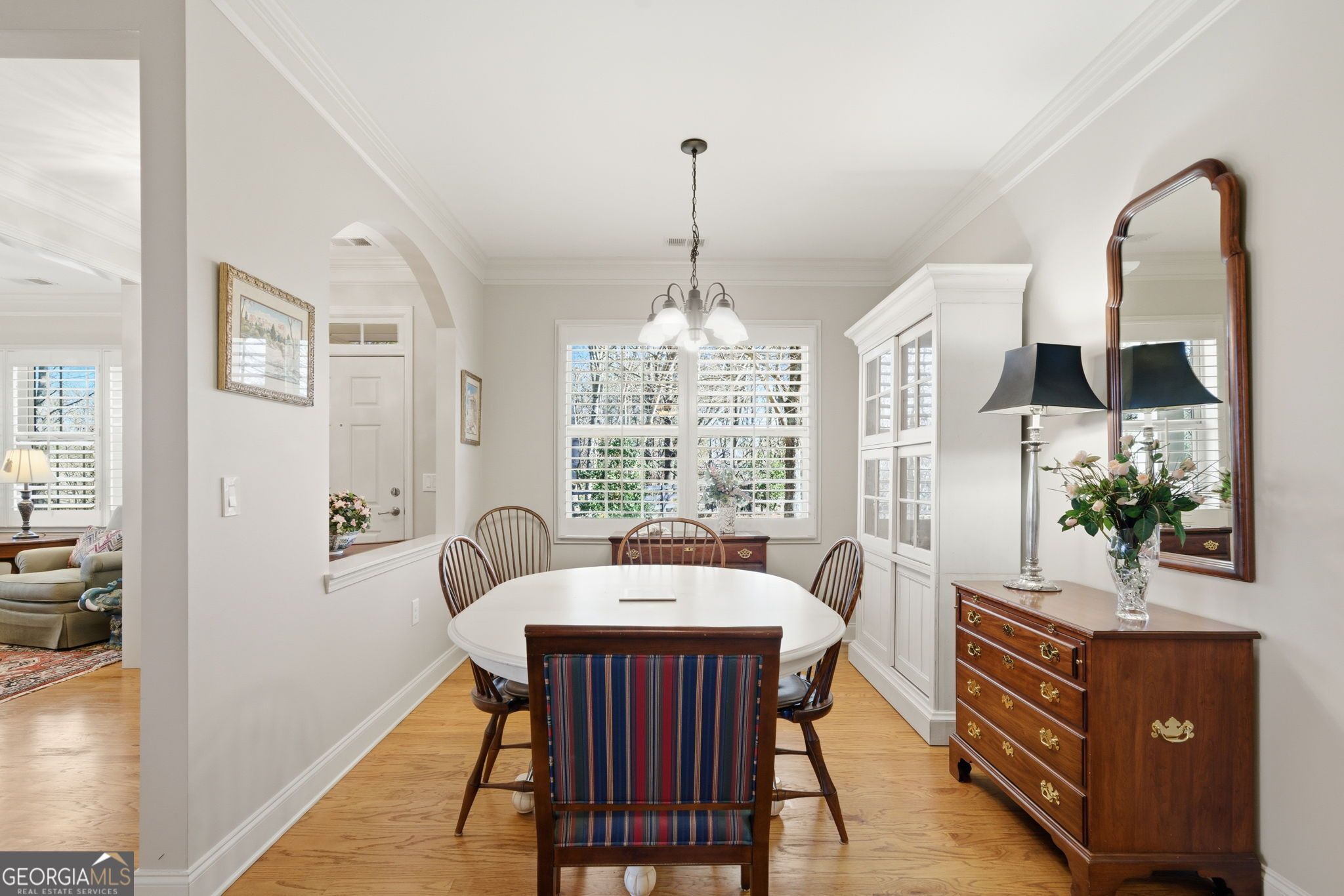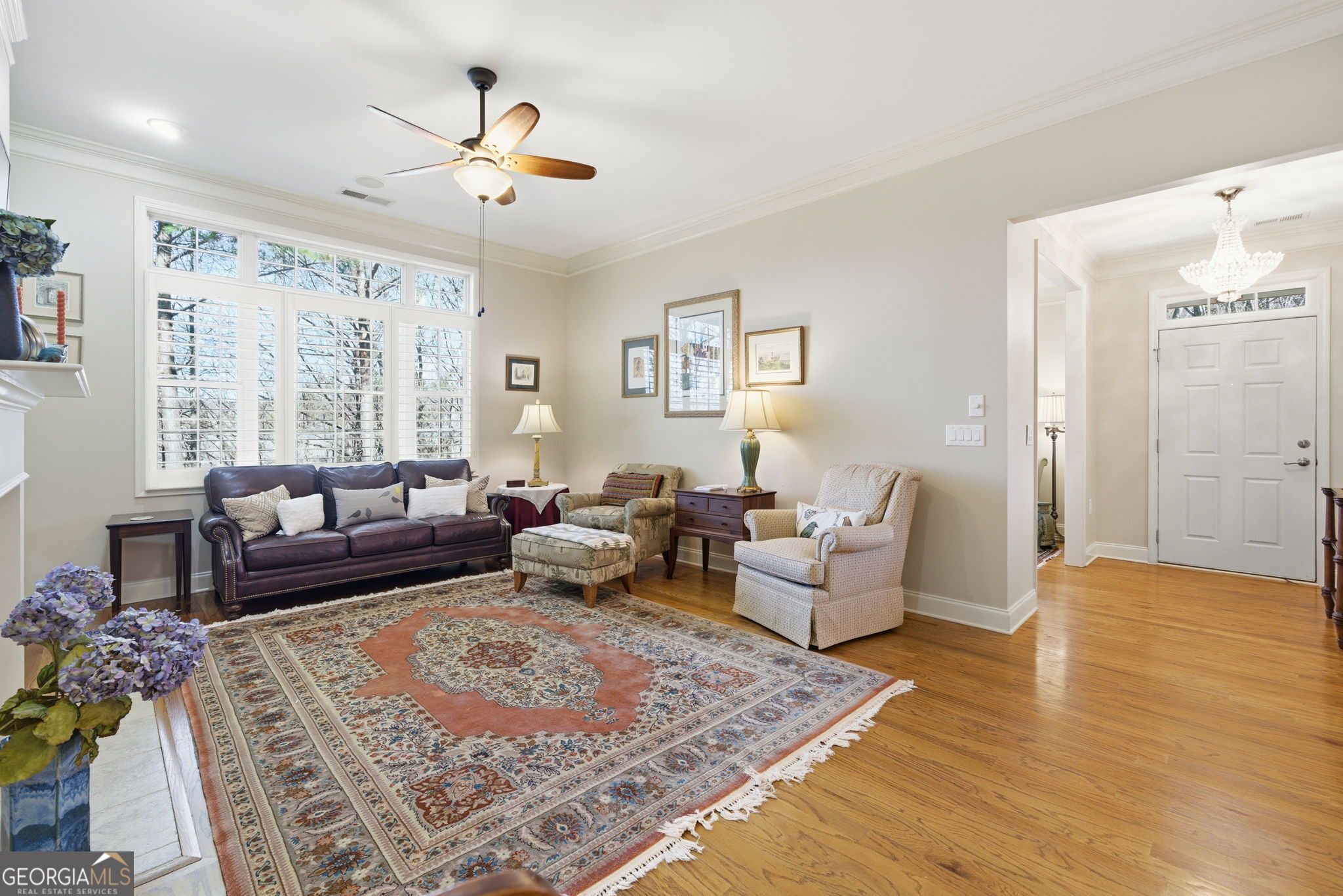 55+ community new on the market. Forsyth County taxes, and a great buy below $500,000. 2 bedrooms 2 baths on the main ,plus a bonus room with full bath on second level. Upgraded kitchen appliances, gas stove, hardwood floor, plantation shutters throughout, separate living room or study, granite countertops, bookshelves on each side of fireplace, gas logs with auto ignite, separate dining room, stacked washer and dryer with sink in cabinet in laundry area, walk in pantry, upgraded wooden cabinets. Large attic space with easy access, front porch with expanded area for your patio furniture, community pool,& clubhouse, THE best private location in the neighborhood. Quiet! Close to the "Collection", grocery stores, restaurants, everything you need or want!! Plenty of room for guests parking with 2 spaces in front of the 2 car garage, and easy off street parking at the curb.