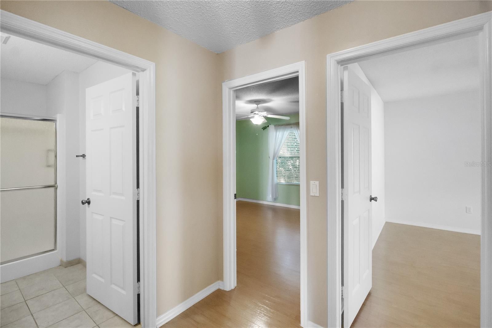 - Ceiling Fan(s), Eat-in Kitchen, Living/Dining Room, Open Floorplan, Main Level Primary, Solid Surface Counters, Walk-In Closet(s), Window Treatments