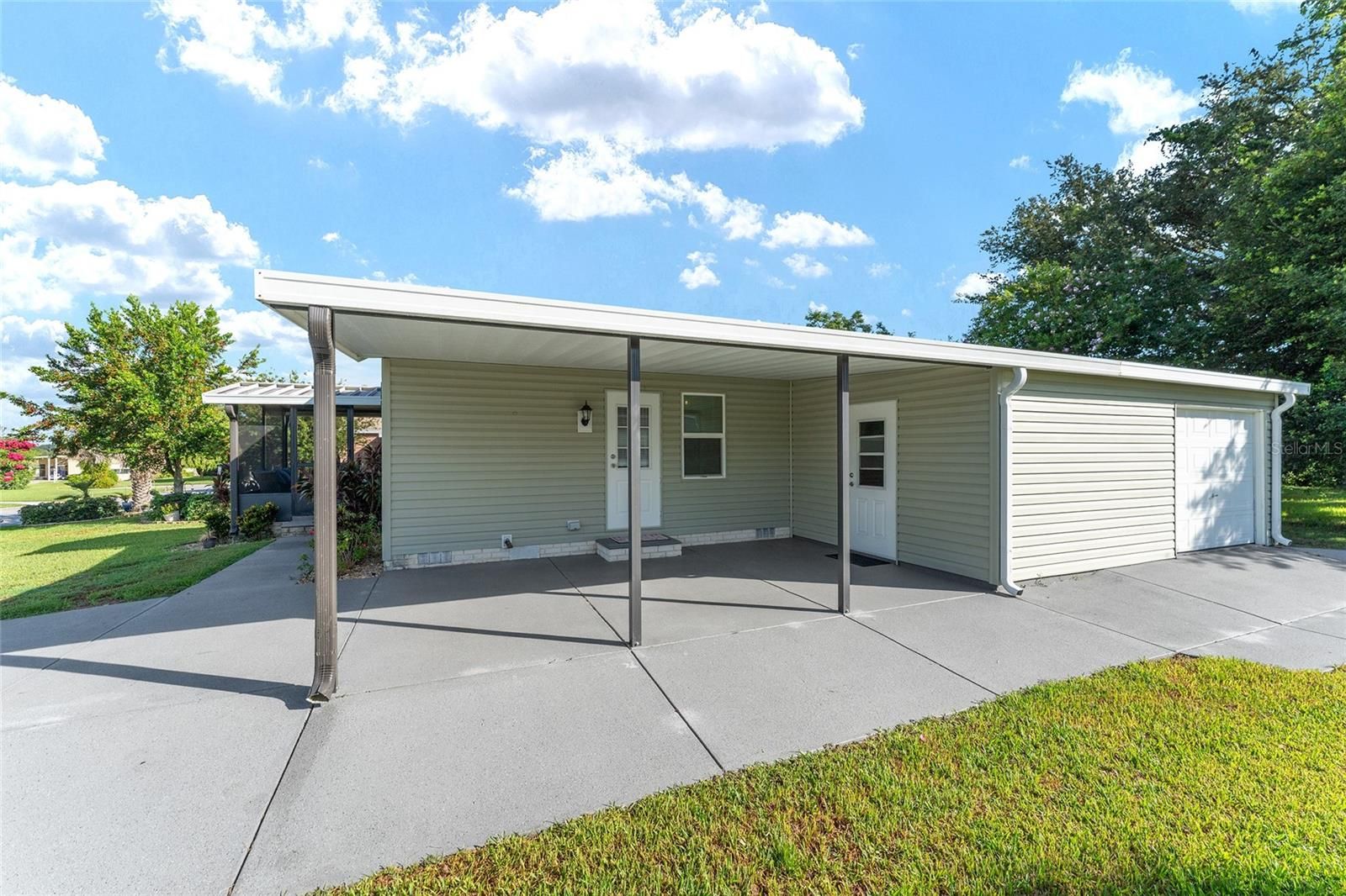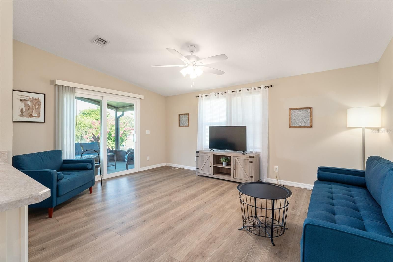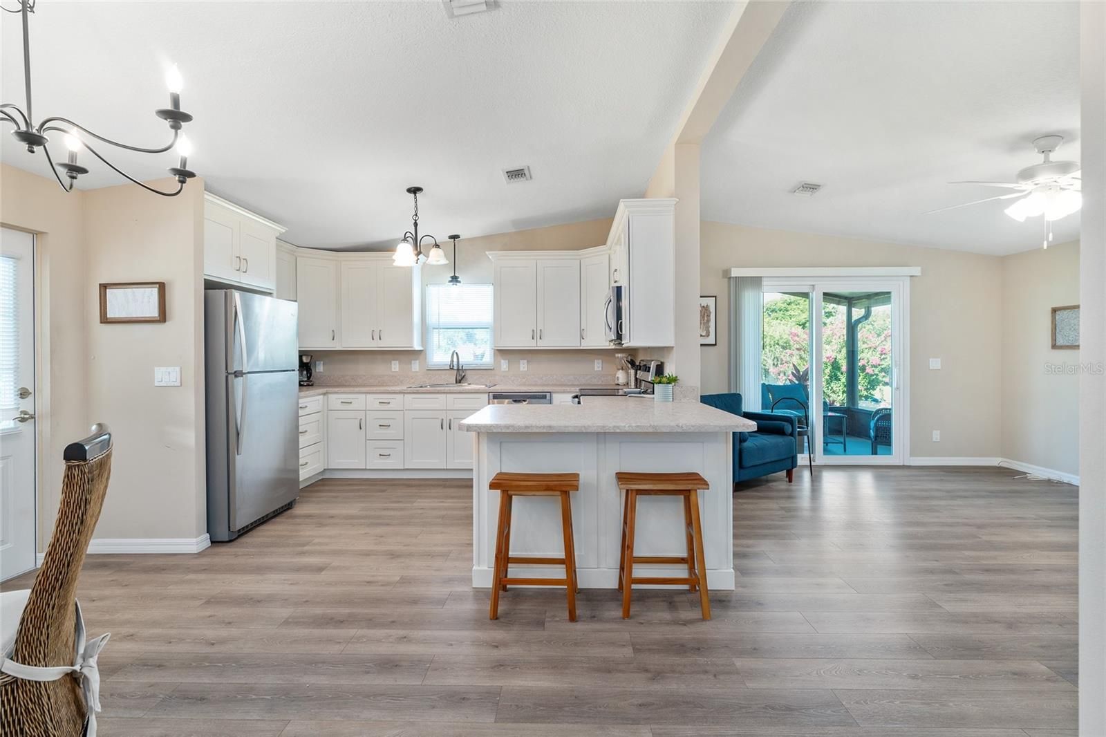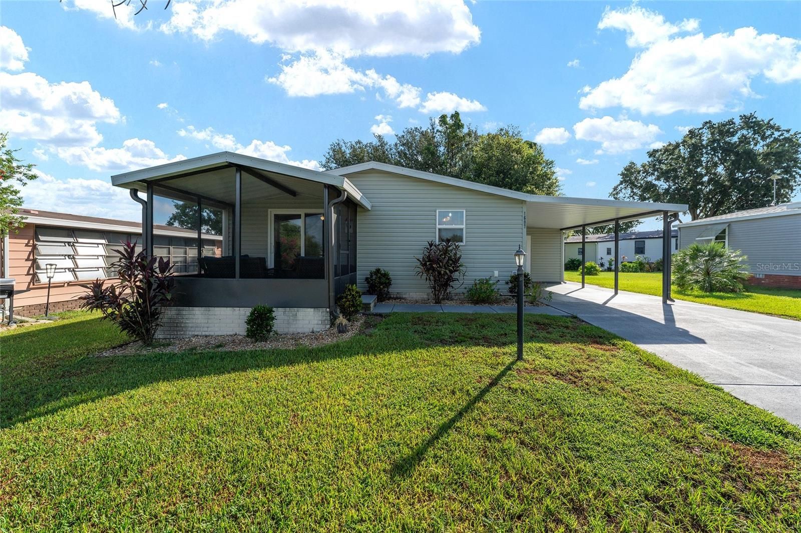Beautifully Remodeled Turn-Key Home in The Village of Country Club Hills. Welcome to this immaculate, fully remodeled home, ideally located in the heart of The Villages—just steps from the Hill Top Pool and Postal Station. Situated on a beautifully manicured lot, this move-in-ready gem offers over 1,040 square feet of thoughtfully designed living space with a highly sought-after open floor plan.Step inside and you’ll immediately notice the bright, airy feel created by vaulted knockdown ceilings and an abundance of natural light. The updated kitchen is a true highlight, featuring 36" soft-close upper cabinets, sleek newer stainless steel appliances, and an inviting layout perfect for entertaining.This charming home features 2 spacious bedrooms and 2 updated bathrooms, both boasting adult-height vanities and toilets for added comfort. The generous primary suite includes a walk-in closet to keep your space organized and clutter-free. Additional features include: 2021 Roof for peace of mind, 2016 A/C and Heating System, Oversized utility/laundry room with ample storage, Attached golf cart garage, Beautifully screened-in lanai—perfect for morning coffee or evening relaxation. Whether you're looking for a seasonal getaway, a full-time residence, or a low-maintenance second home, this property checks all the boxes. Located just a golf cart ride away from Spanish Springs Town Square, shopping, dining, and world-class golf, this home offers the ultimate in Villages living. Best of all, No Bond and it's being sold completely turn-key—just bring your suitcase, Don’t miss this opportunity—schedule your private showing today and start living the lifestyle you’ve been dreaming of!
