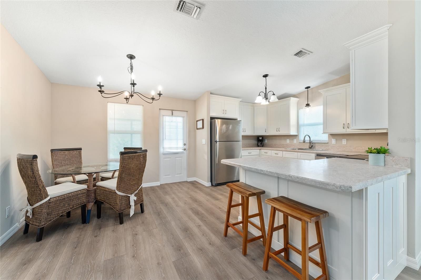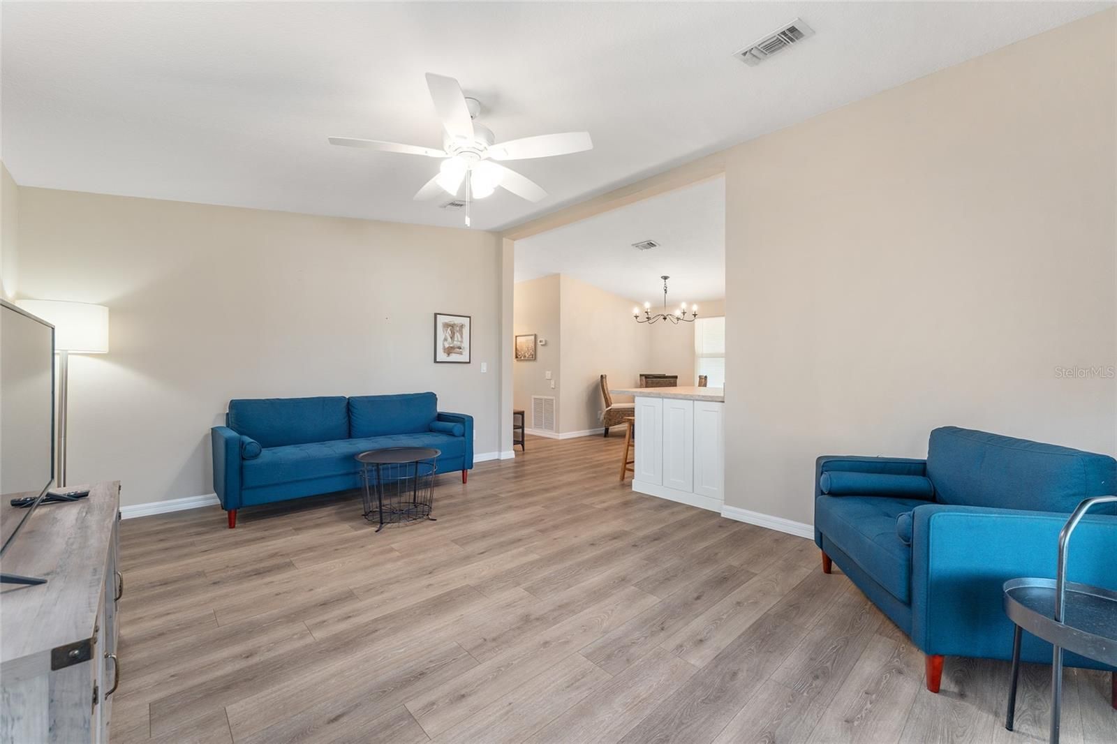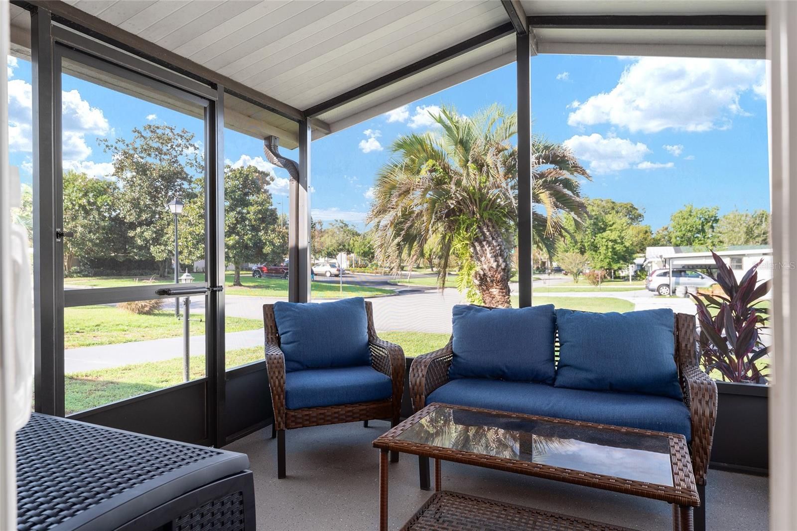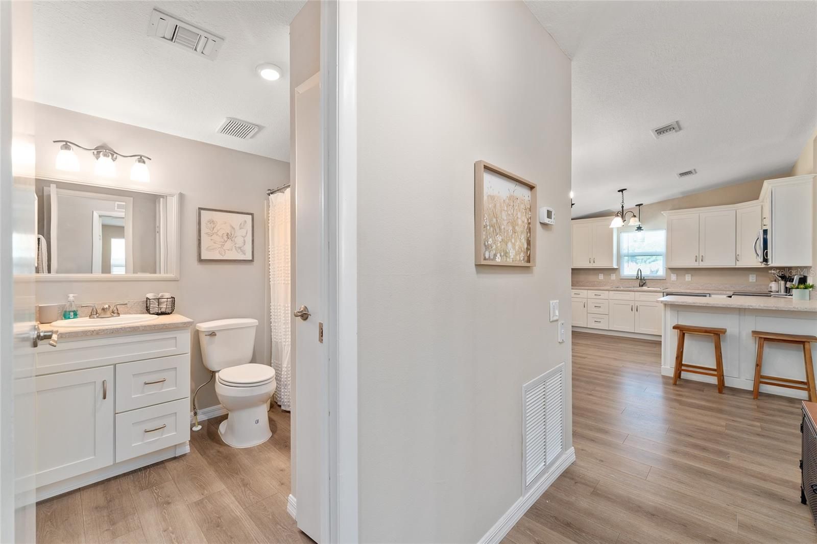 Beautifully Remodeled Turn-Key Home in The Village of Country Club Hills. Welcome to this immaculate, fully remodeled home, ideally located in the heart of The Villages—just steps from the Hill Top Pool and Postal Station. Situated on a beautifully manicured lot, this move-in-ready gem offers over 1,040 square feet of thoughtfully designed living space with a highly sought-after open floor plan.Step inside and you’ll immediately notice the bright, airy feel created by vaulted knockdown ceilings and an abundance of natural light. The updated kitchen is a true highlight, featuring 36" soft-close upper cabinets, sleek newer stainless steel appliances, and an inviting layout perfect for entertaining.This charming home features 2 spacious bedrooms and 2 updated bathrooms, both boasting adult-height vanities and toilets for added comfort. The generous primary suite includes a walk-in closet to keep your space organized and clutter-free. Additional features include: 2021 Roof for peace of mind, 2016 A/C and Heating System, Oversized utility/laundry room with ample storage, Attached golf cart garage, Beautifully screened-in lanai—perfect for morning coffee or evening relaxation. Whether you're looking for a seasonal getaway, a full-time residence, or a low-maintenance second home, this property checks all the boxes. Located just a golf cart ride away from Spanish Springs Town Square, shopping, dining, and world-class golf, this home offers the ultimate in Villages living. Best of all, No Bond and it's being sold completely turn-key—just bring your suitcase, Don’t miss this opportunity—schedule your private showing today and start living the lifestyle you’ve been dreaming of!