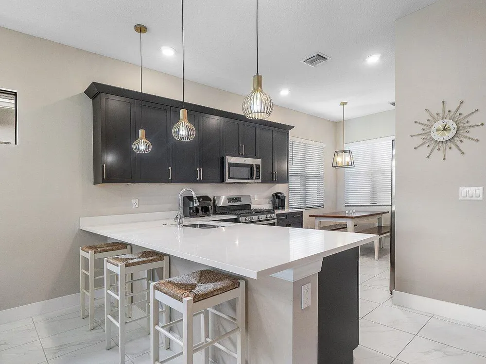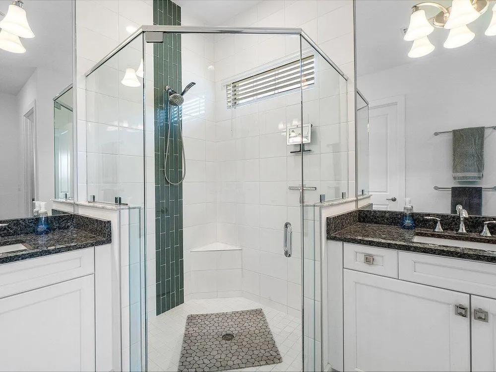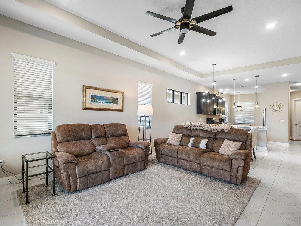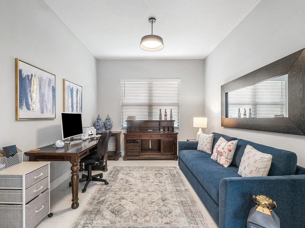 - Entrance Foyer, Split Bedrooms, High Ceilings, Walk-In Closet(s), Home Office, Family Room, Living/Dining Room, Kitchen/Dining Combo, Eat-in Kitchen, Snack Bar, Blinds, Impact Glass, Dual Sinks, Separate Shower