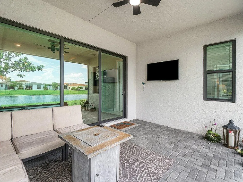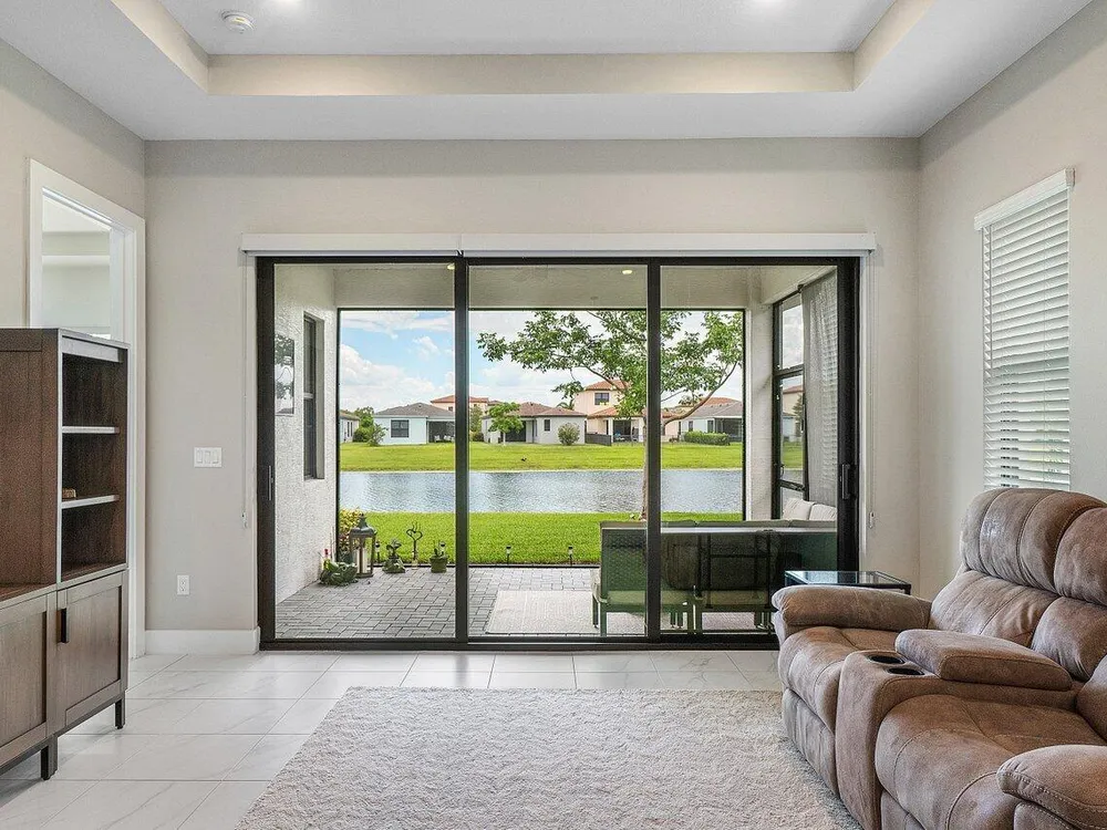 Don't miss out on this luxuriously appointed home in the highly sought-after Cresswind of Palm Beach +55 community. This 2 Bedroom, 2 Bathroom plus Den Lido model will not disappoint. Positioned on the perfect lot, this home boasts breathtaking and unobstructed water views which can be clearly seen from the comfort of the patio while peering through the picturesque, panoramic view panel screen. Inside you will find an upgraded, modern decor throughout. The kitchen is highly functional as well as beautiful, including soft-close cabinets, double ovens, a gas stove, large pantry and an eat-in table with great natural light exposure. This home has plenty of storage with double walk in closets in the primary suite and a 2 car garage. Cresswind offers wonderful amenities to lead an active
