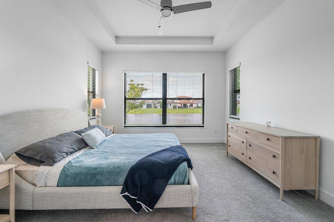 Don't miss out on this luxuriously appointed home in the highly sought-after Cresswind of Palm Beach +55 community. This 2 Bedroom, 2 Bathroom plus Den Lido model will not disappoint. Positioned on the perfect lot, this home boasts breathtaking and unobstructed water views which can be clearly seen from the comfort of the patio while peering through the picturesque, panoramic view panel screen. Inside you will find an upgraded, modern decor throughout. The kitchen is highly functional as well as beautiful, including soft-close cabinets, double ovens, a gas stove, large pantry and an eat-in table with great natural light exposure. This home has plenty of storage with double walk in closets in the primary suite and a 2 car garage. Cresswind offers wonderful amenities to lead an active and vibrant lifestyle, including a resort-style pool and spa, SmartFIT training center, Pickleball/Tennis, arts and crafts, dog park, and events room. The Full time Lifestyle Director ensures that the Calendar is full of events that match all areas of interest. Come take a look at this piece of paradise today.