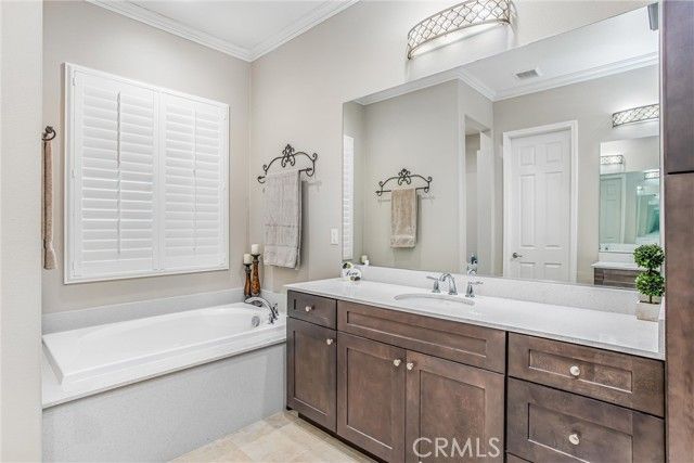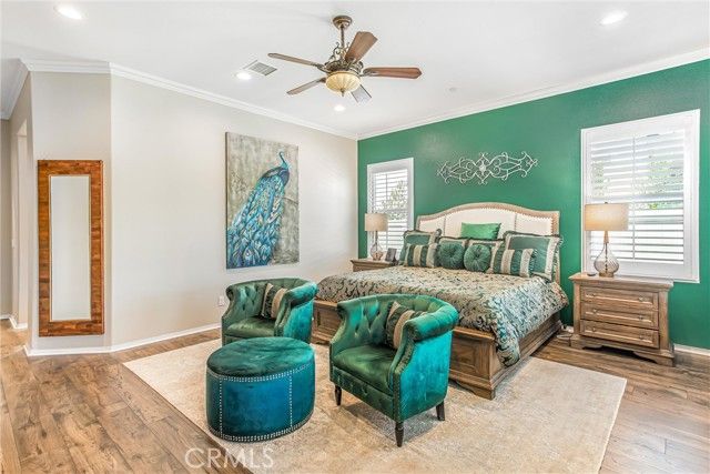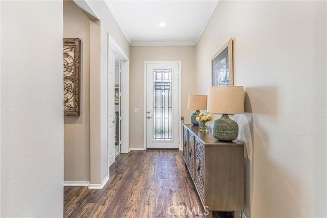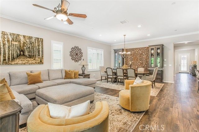 PRICE REDUCTION, BRING AN OFFER!! Welcome to 1608 Sams Canyon, your oasis and calming space in an ever increasingly chaotic world. Located in the resort style 55+ community of Four Seasons in Beaumont, this stunning home has been beautifully upgraded from top to bottom, and you'll be sure to appreciate every detail. Spread out over 2700 sqft, it features 3 bedrooms, 3 full baths, vinyl flooring throughout, elegant crown molding and shutters in every room. The gorgeous kitchen overlooks a spacious great room/dining room with a custom built in entertainment center. Step through the double wide slider doors to a beautifully landscaped backyard with extended alumawood patio cover that spans the entire width of the home. With no neighbors in the back, enjoy the sounds of nature, wooded views and privacy it allows. Back inside, the secondary bedrooms are generously sized and very welcoming. The primary also features custom built-ins that provide ample storage. Some notable features of the community that you can enjoy are multiple club houses, an indoor heated as well as outdoor pools, a bistro, theater, pickleball, tennis, ping-pong, bocce ball, basketball, gyms, hair salon, and so much more. With miles of wooded walking trails and sidewalks, and an assortment of social clubs and activities, you are sure to find something that suits you to become a part of. Call today!
