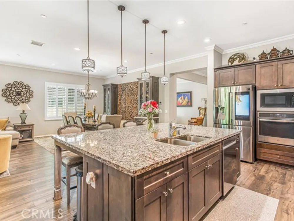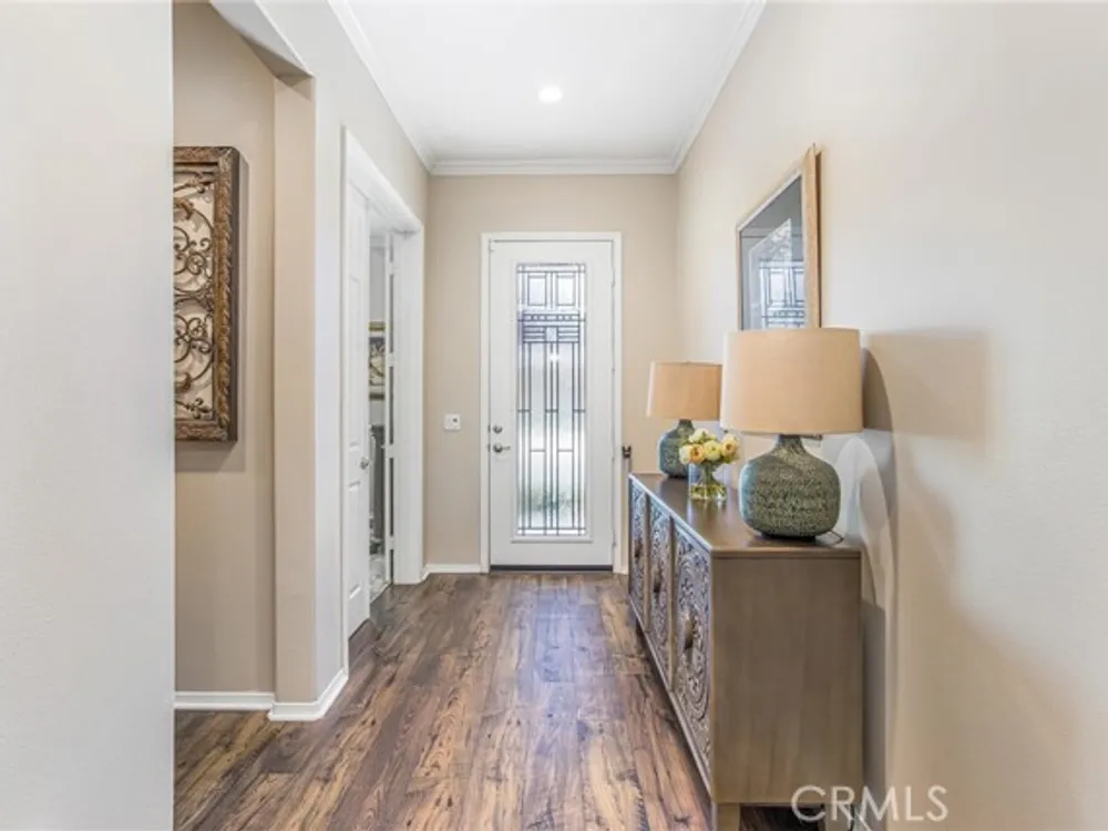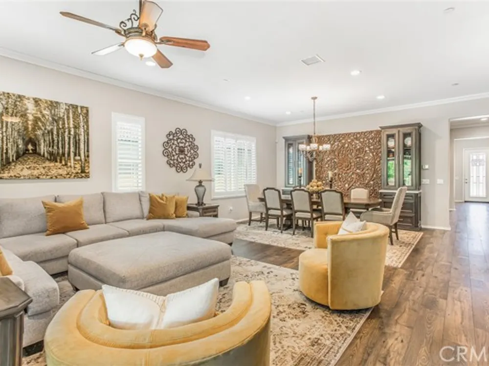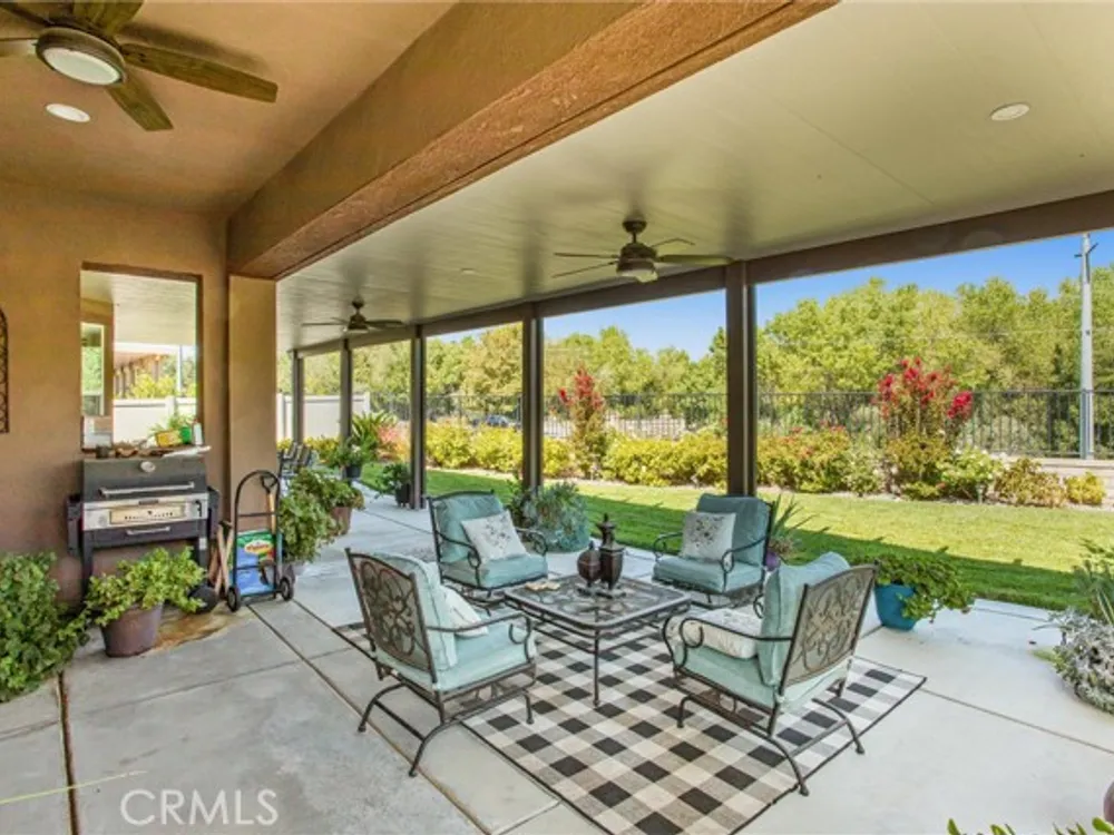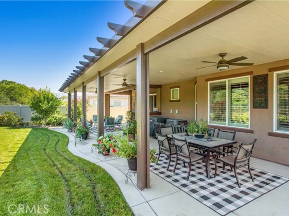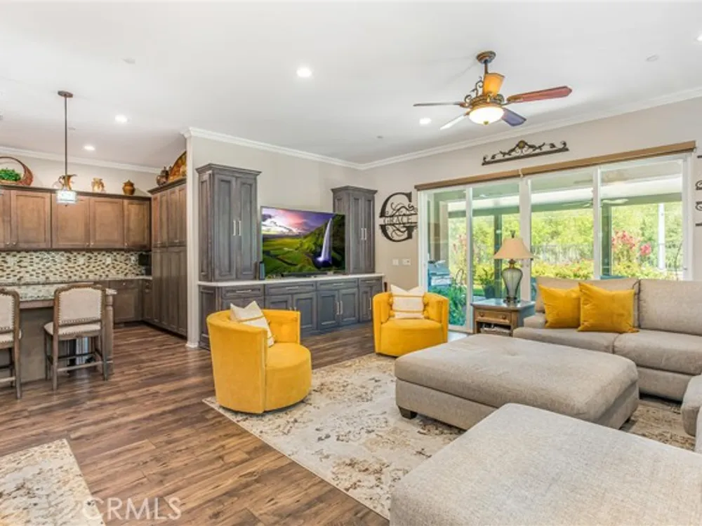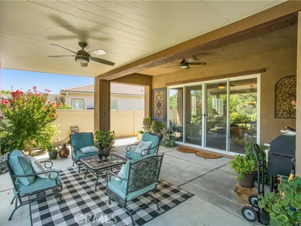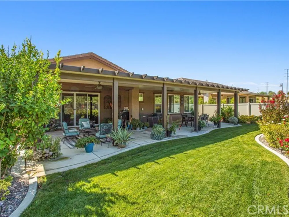 My oh my oh my, what a beauty you are!! Welcome to 1608 Sams Canyon, your oasis and calming space in an ever increasingly chaotic world. Located in the resort style 55+ community of Four Seasons in Beaumont, this stunning home has been beautifully upgraded from top to bottom, and you'll be sure to appreciate every detail. Spread out over 2700 sqft, it features 3 bedrooms, 3 full baths, vinyl flooring throughout, elegant crown molding and shutters in every room. The gorgeous kitchen overlooks a spacious great room/dining room with a custom built in entertainment center. Step through the double wide slider doors to a beautifully landscaped backyard with extended alumawood patio cover that spans the entire width of the home. With no neighbors in the back, enjoy the sounds of nature, wooded views and privacy it allows. Back inside, the secondary bedrooms are generously sized and very welcoming. The primary also features custom built-ins that provide ample storage. Some notable features of the community that you can enjoy are multiple club houses, an indoor heated as well as outdoor pools, a bistro, theater, pickleball, tennis, ping-pong, bocce ball, basketball, gyms, hair salon, and so much more. With miles of wooded walking trails and sidewalks, and an assortment of social clubs and