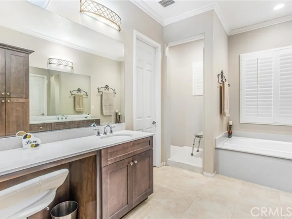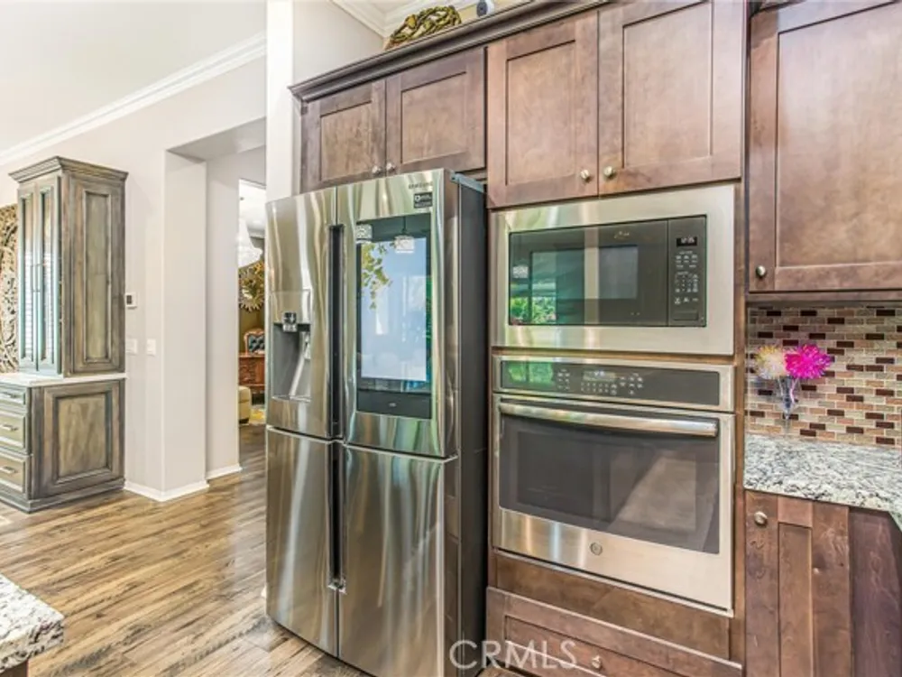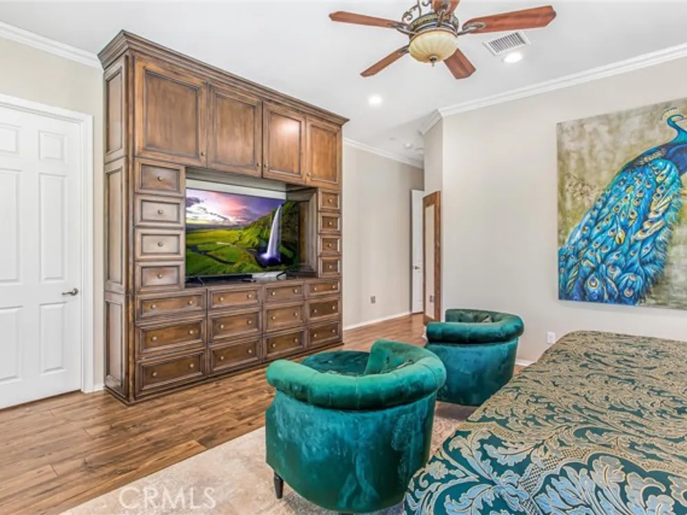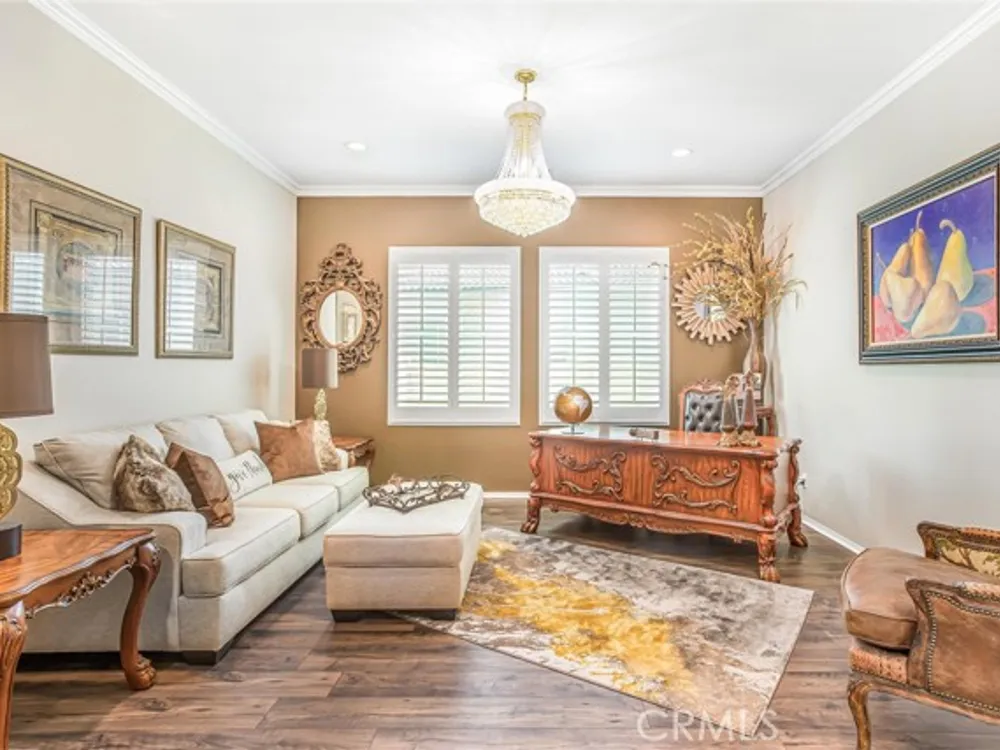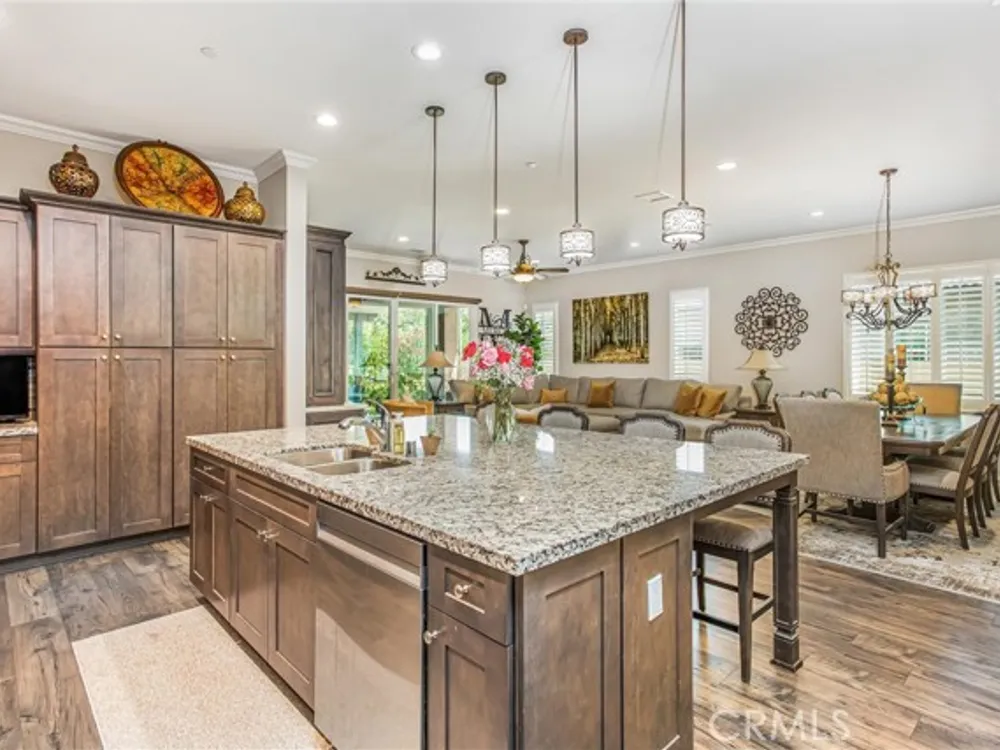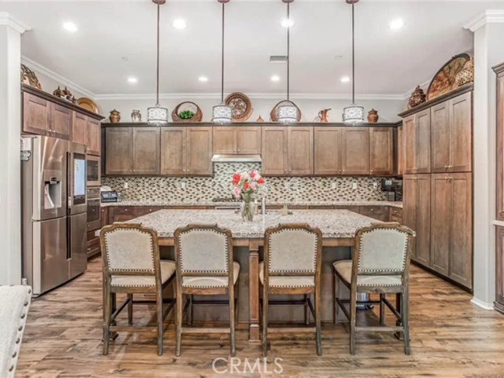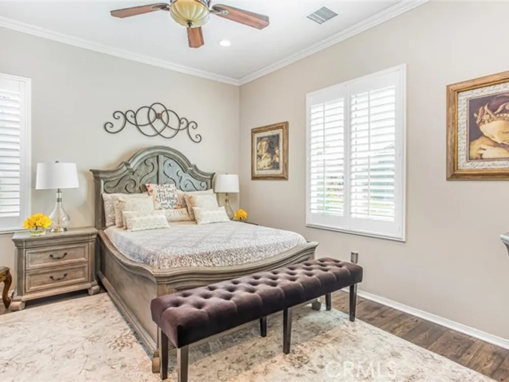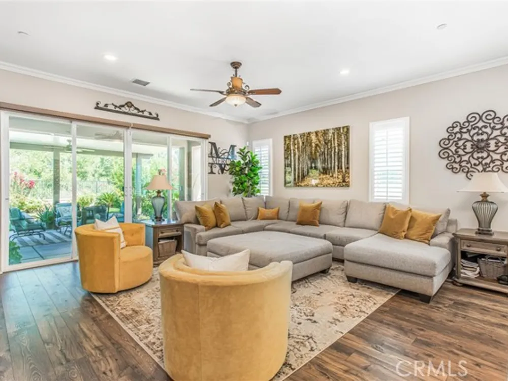 My oh my oh my, what a beauty you are!! Welcome to 1608 Sams Canyon, your oasis and calming space in an ever increasingly chaotic world. Located in the resort style 55+ community of Four Seasons in Beaumont, this stunning home has been beautifully upgraded from top to bottom, and you'll be sure to appreciate every detail. Spread out over 2700 sqft, it features 3 bedrooms, 3 full baths, vinyl flooring throughout, elegant crown molding and shutters in every room. The gorgeous kitchen overlooks a spacious great room/dining room with a custom built in entertainment center. Step through the double wide slider doors to a beautifully landscaped backyard with extended alumawood patio cover that spans the entire width of the home. With no neighbors in the back, enjoy the sounds of nature, wooded views and privacy it allows. Back inside, the secondary bedrooms are generously sized and very welcoming. The primary also features custom built-ins that provide ample storage. Some notable features of the community that you can enjoy are multiple club houses, an indoor heated as well as outdoor pools, a bistro, theater, pickleball, tennis, ping-pong, bocce ball, basketball, gyms, hair salon, and so much more. With miles of wooded walking trails and sidewalks, and an assortment of social clubs and