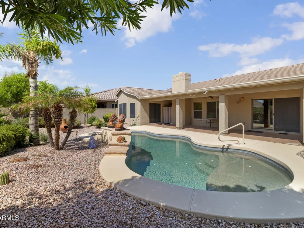 Beautiful home with a casita, courtyard & pool located in the desirable Pebble Creek community! Don't miss this spacious home featuring a private casita, sparkling pool, and no backyard neighbors for added privacy. The two-car garage includes a golf cart parking spot, and the home comes with a new AC installed in 2019 and a new water heater installed in 2025 for peace of mind. Inside, enjoy an open floor plan with wood-style flooring, a cozy fireplace, and a bright kitchen with stainless steel appliances and bar seating, perfect for entertaining. Seller is offering $12,000 to help buy down your interest rate or use toward closing costs This home has everything you need with space, privacy, and value.